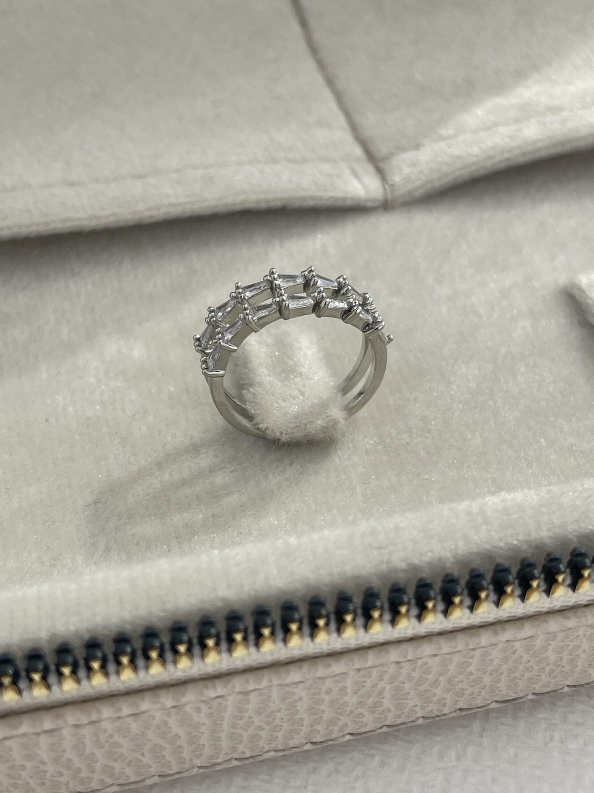 Özel Seri Baget Taşlı İkili Gümüş Ayarlanabilir Yüzük