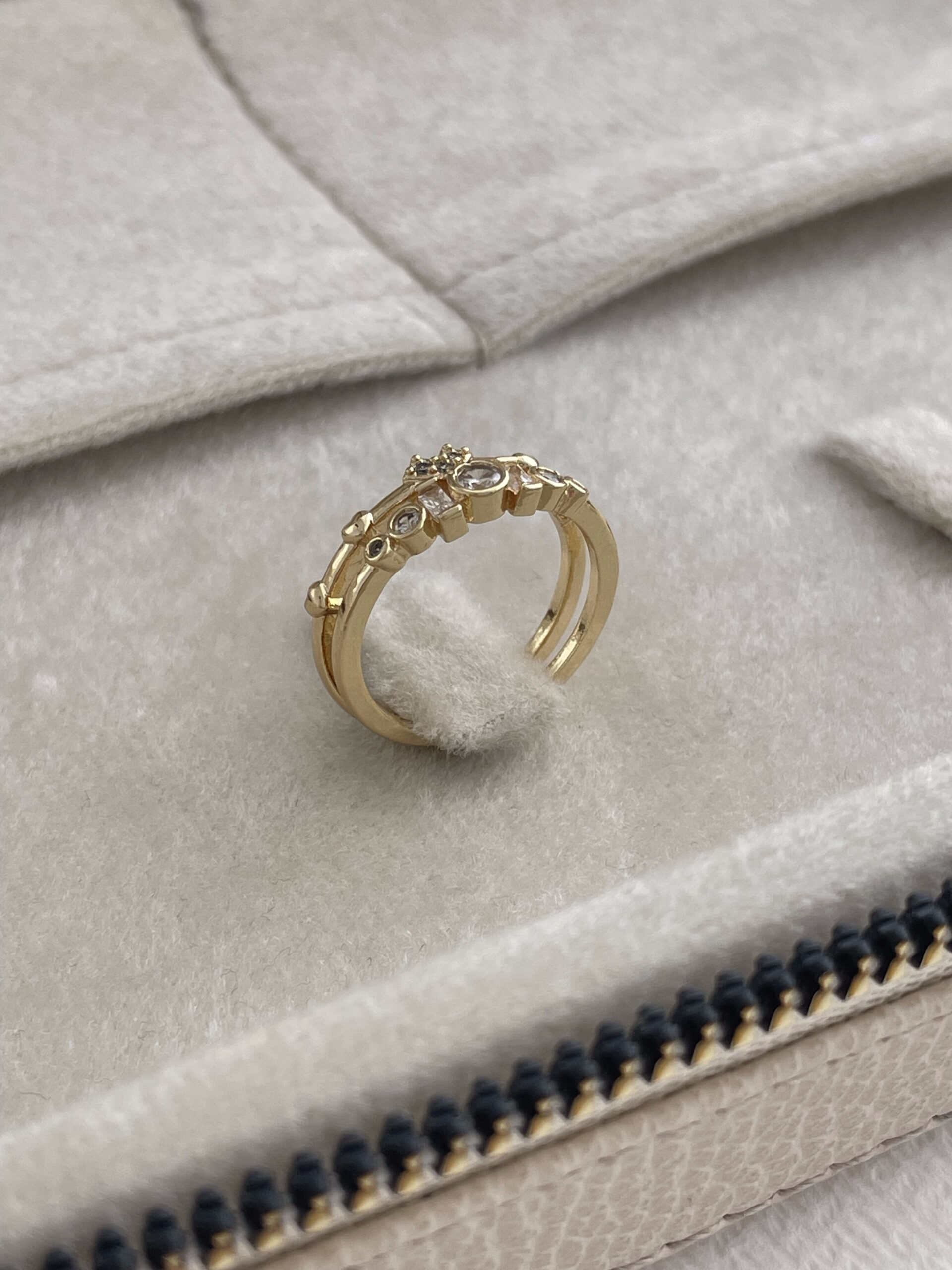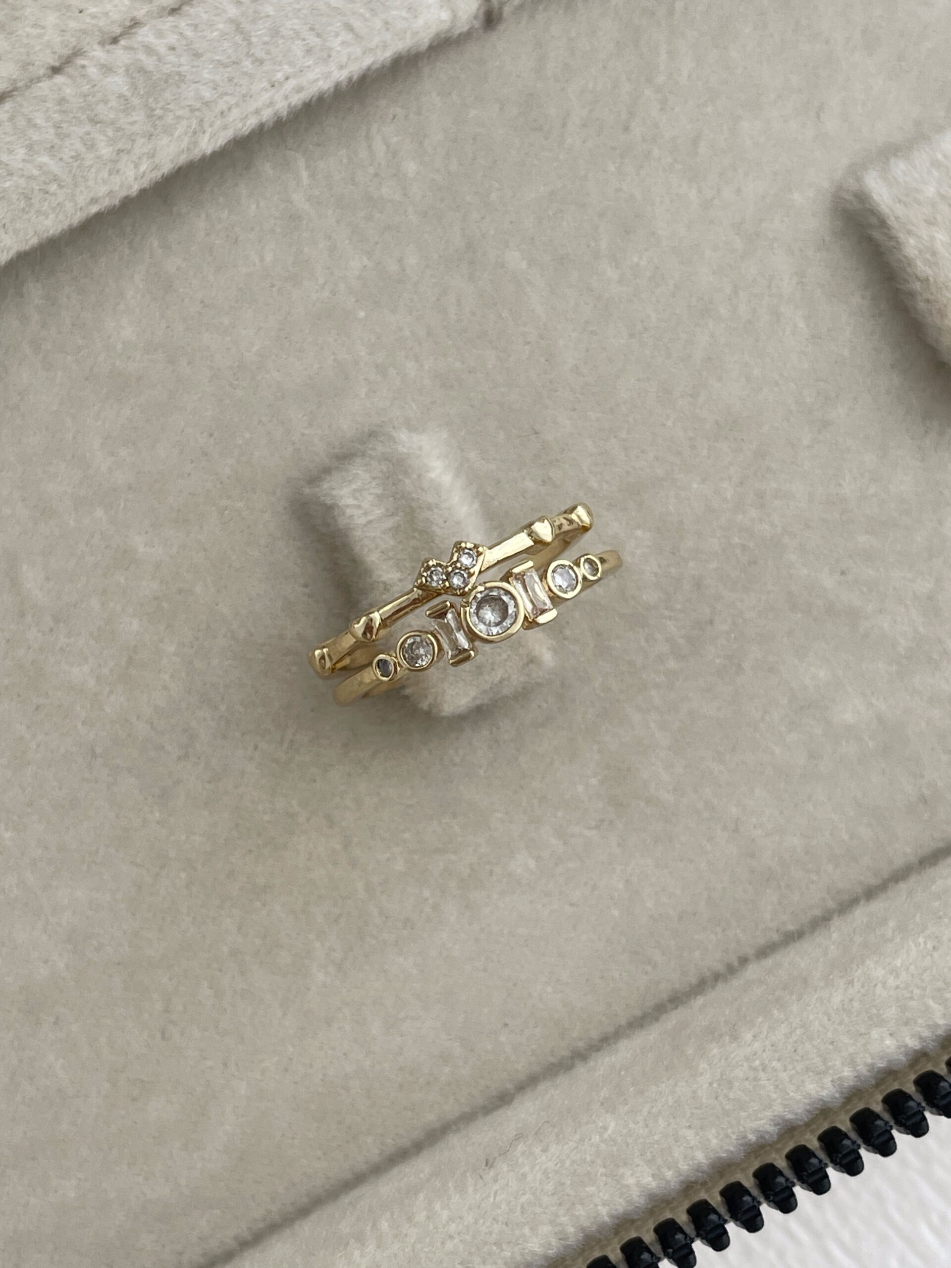 Özel Seri Baget Taşlı Minik Kalp Detay Ayarlanabilir Gold Yüzük