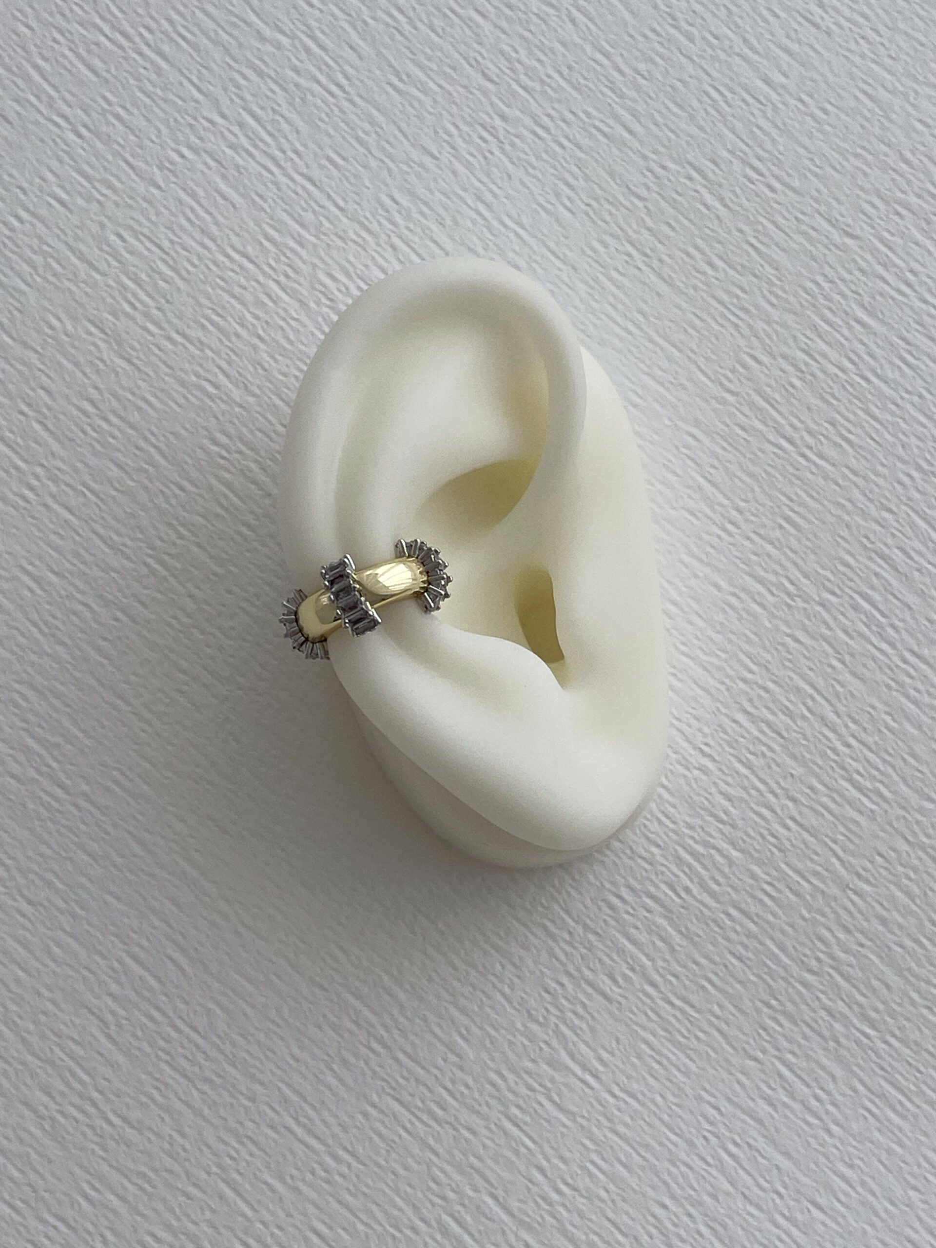 Özel Seri Baget Taşlı Tırtık Tasarım Gold Earcuff Küpe