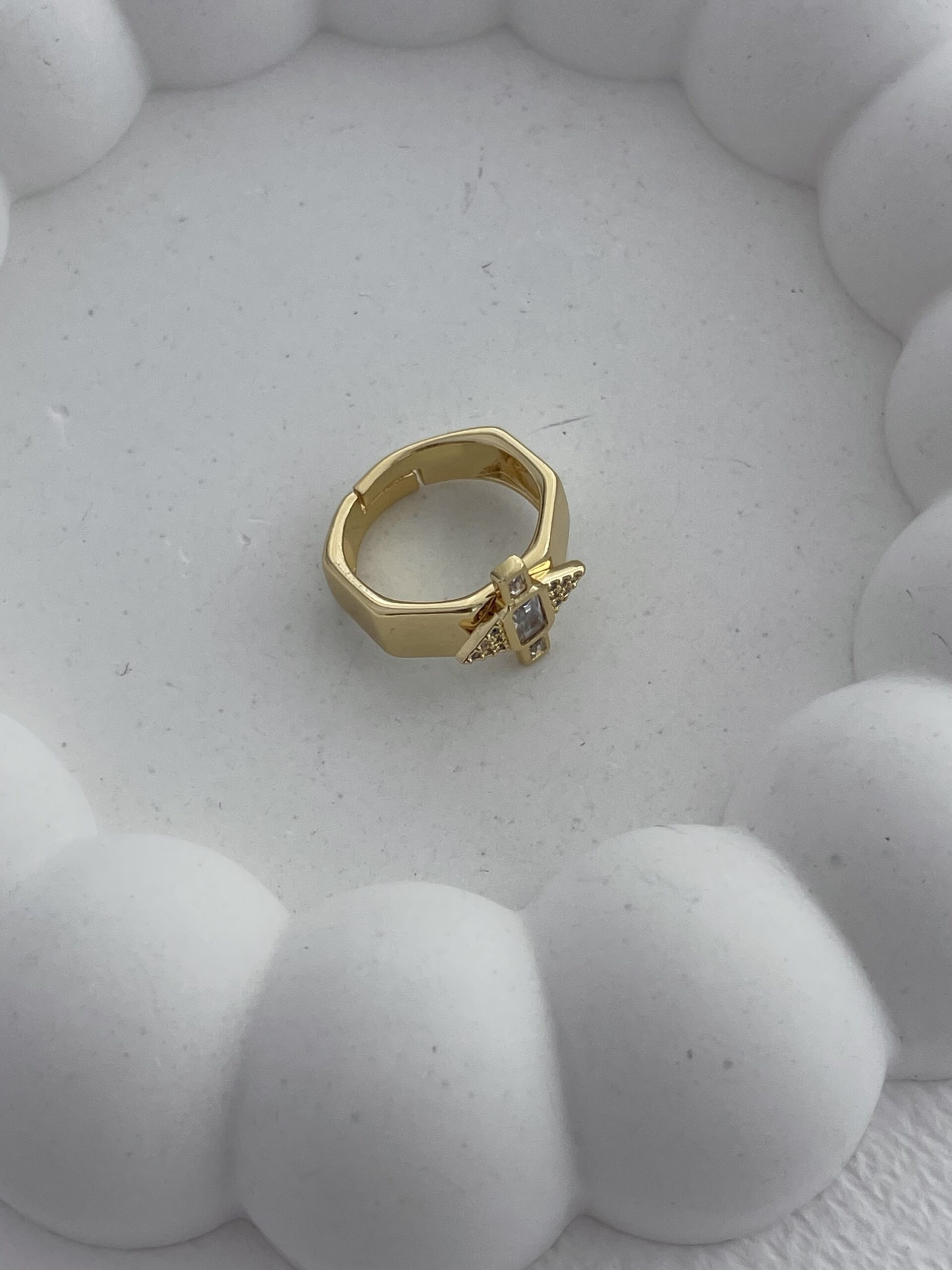 Özel Seri Baget Taşlı Üçgen Tasarım Gold Ayarlanabilir Serçe Parmak Yüzüğü