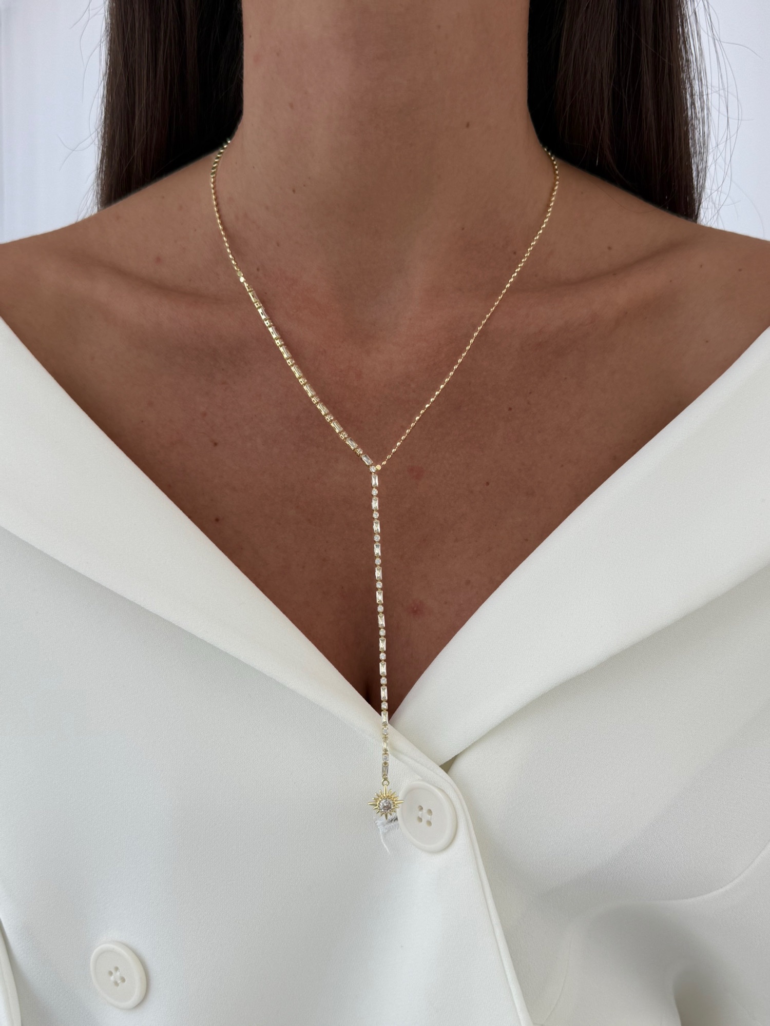 Özel Seri Baget Taşlı Ucu Güneş Tasarım Gold Y Kolye