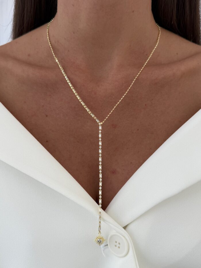 Özel Seri Baget Taşlı Ucu Güneş Tasarım Gold Y Kolye