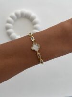 Özel Seri Baget Taşlı Yonca Tasarım Gold Shiny Bileklik