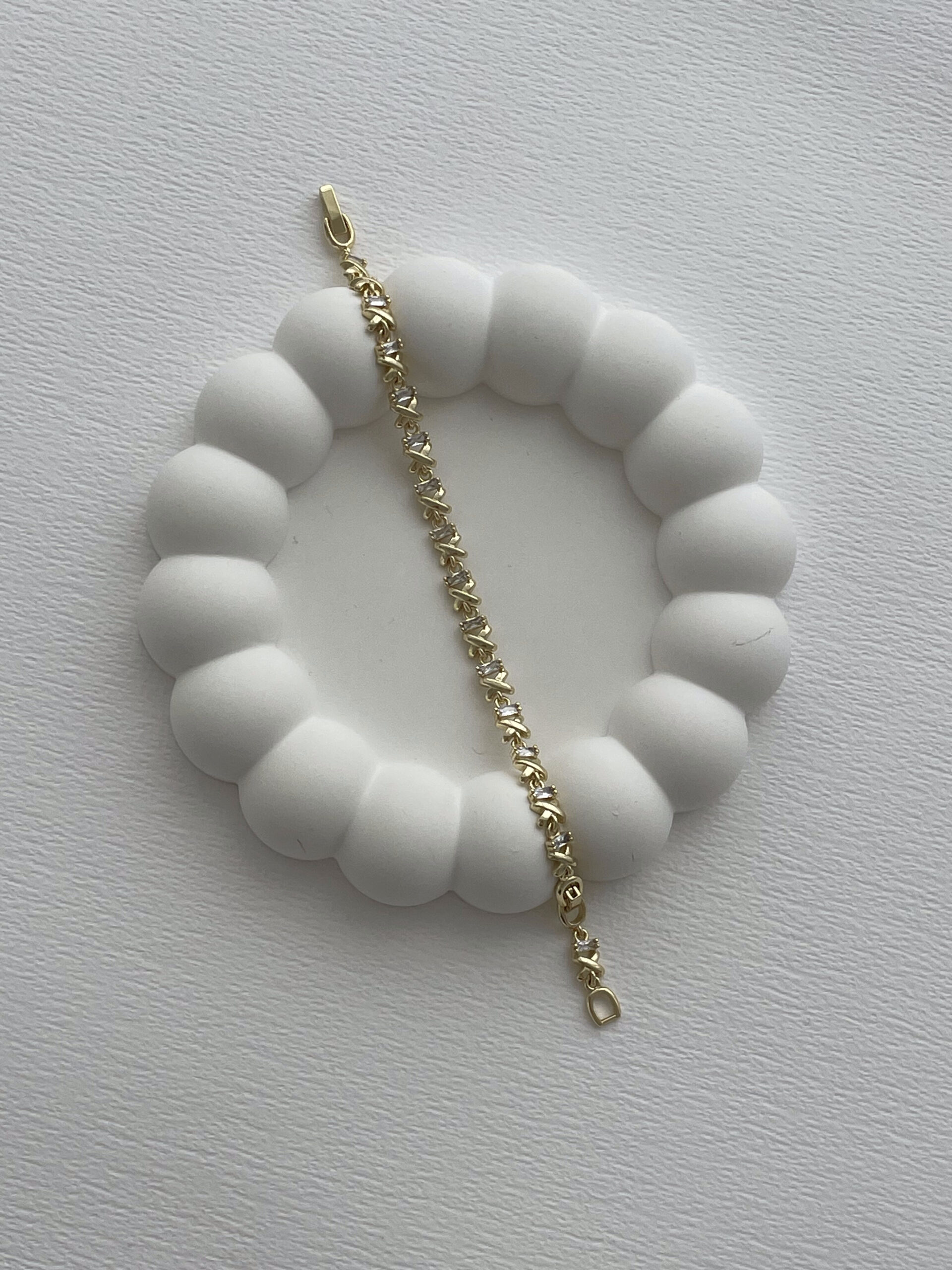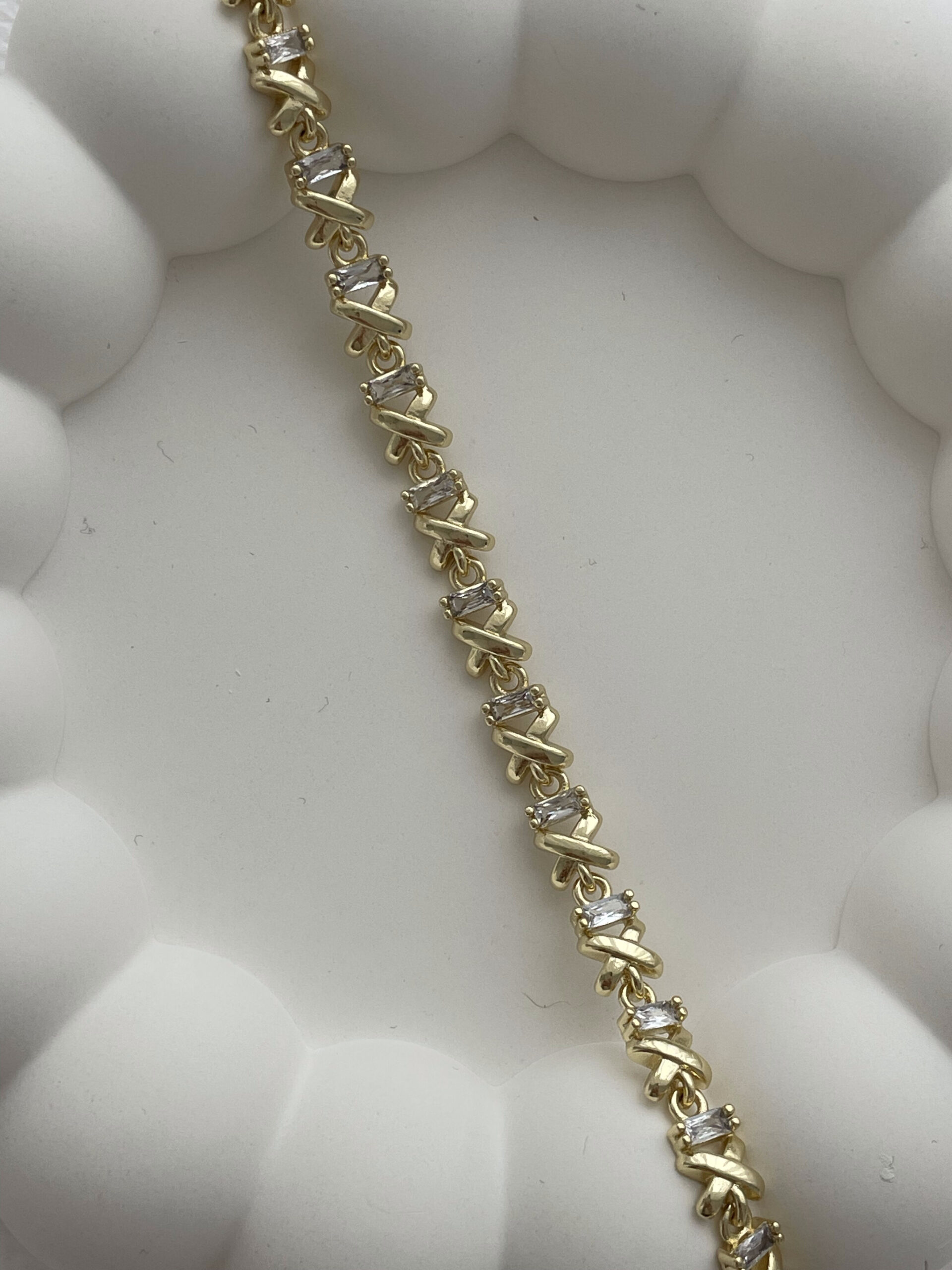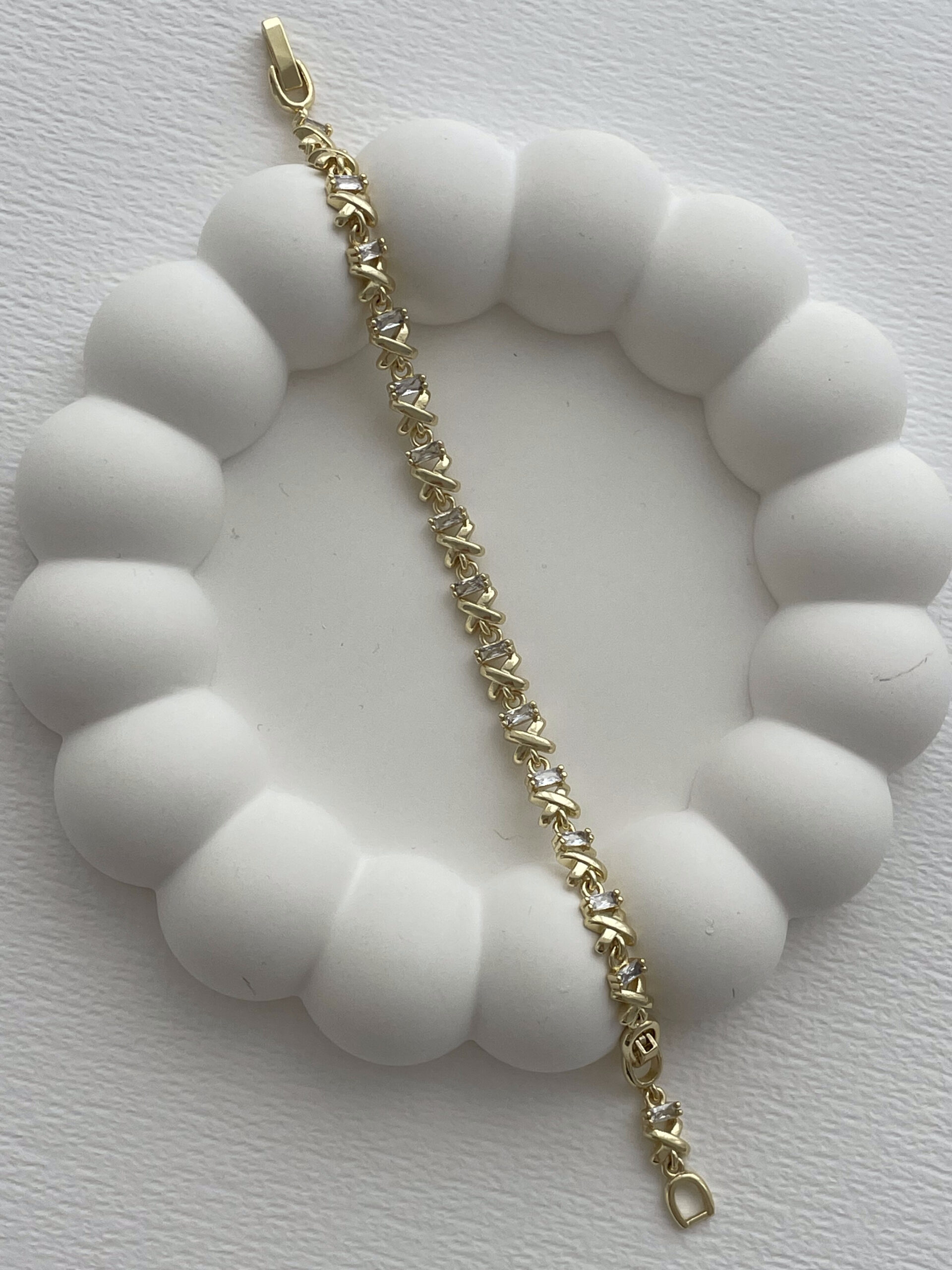 Özel Seri Baget Taşlı X Tasarım Gold Bileklik