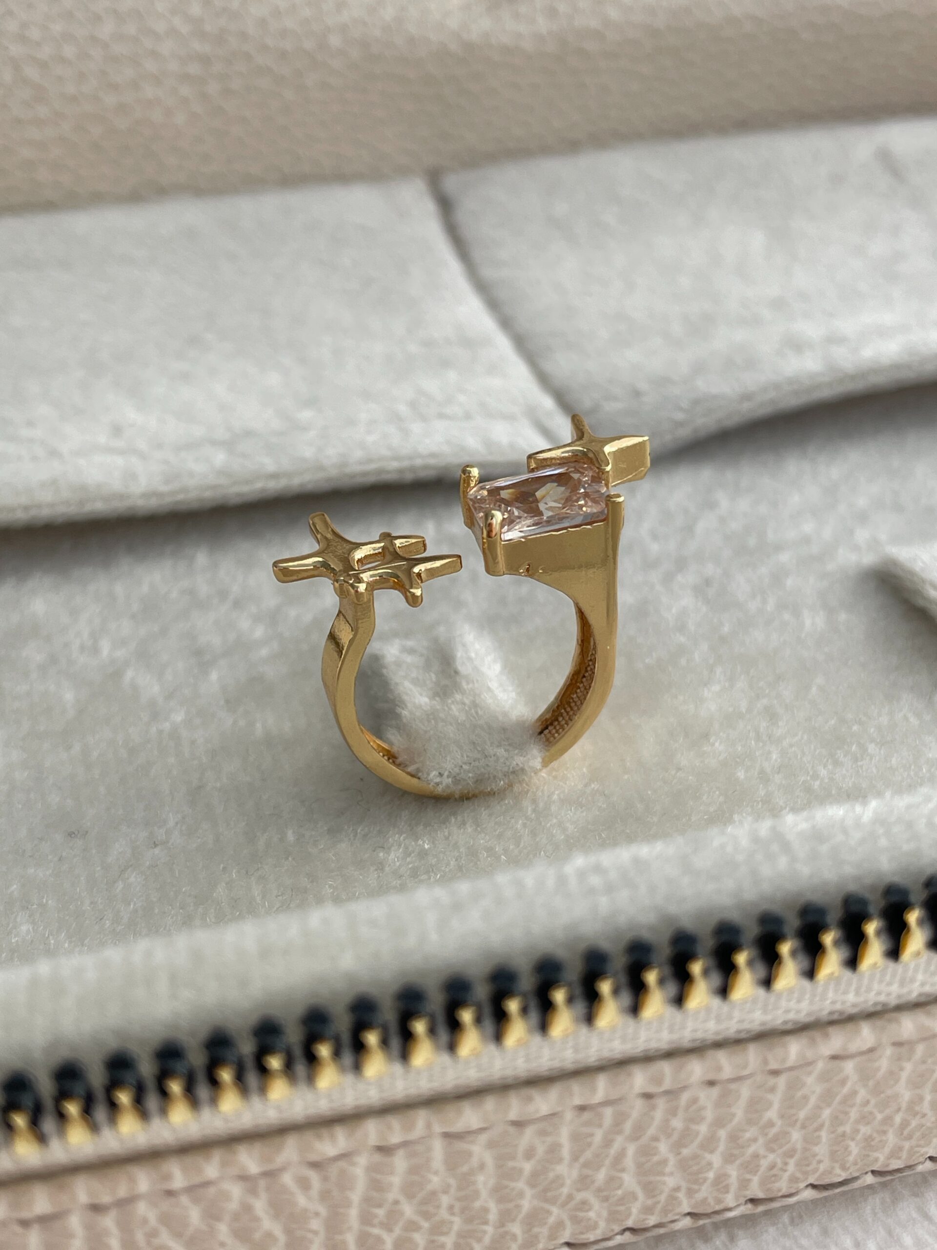 Özel Seri Baget Taşlı Yıldız Tasarım Ayarlanabilir Gold Yüzük