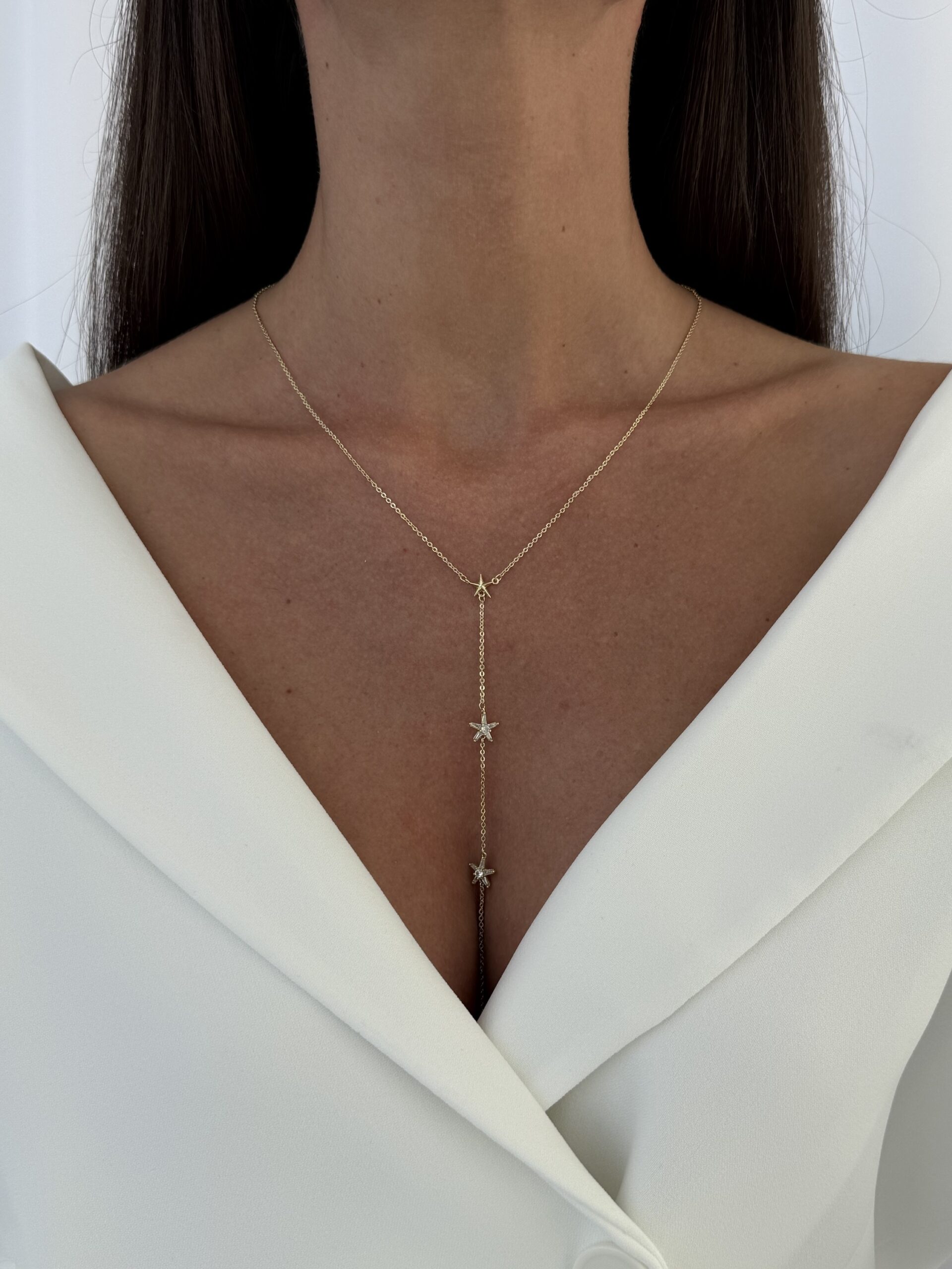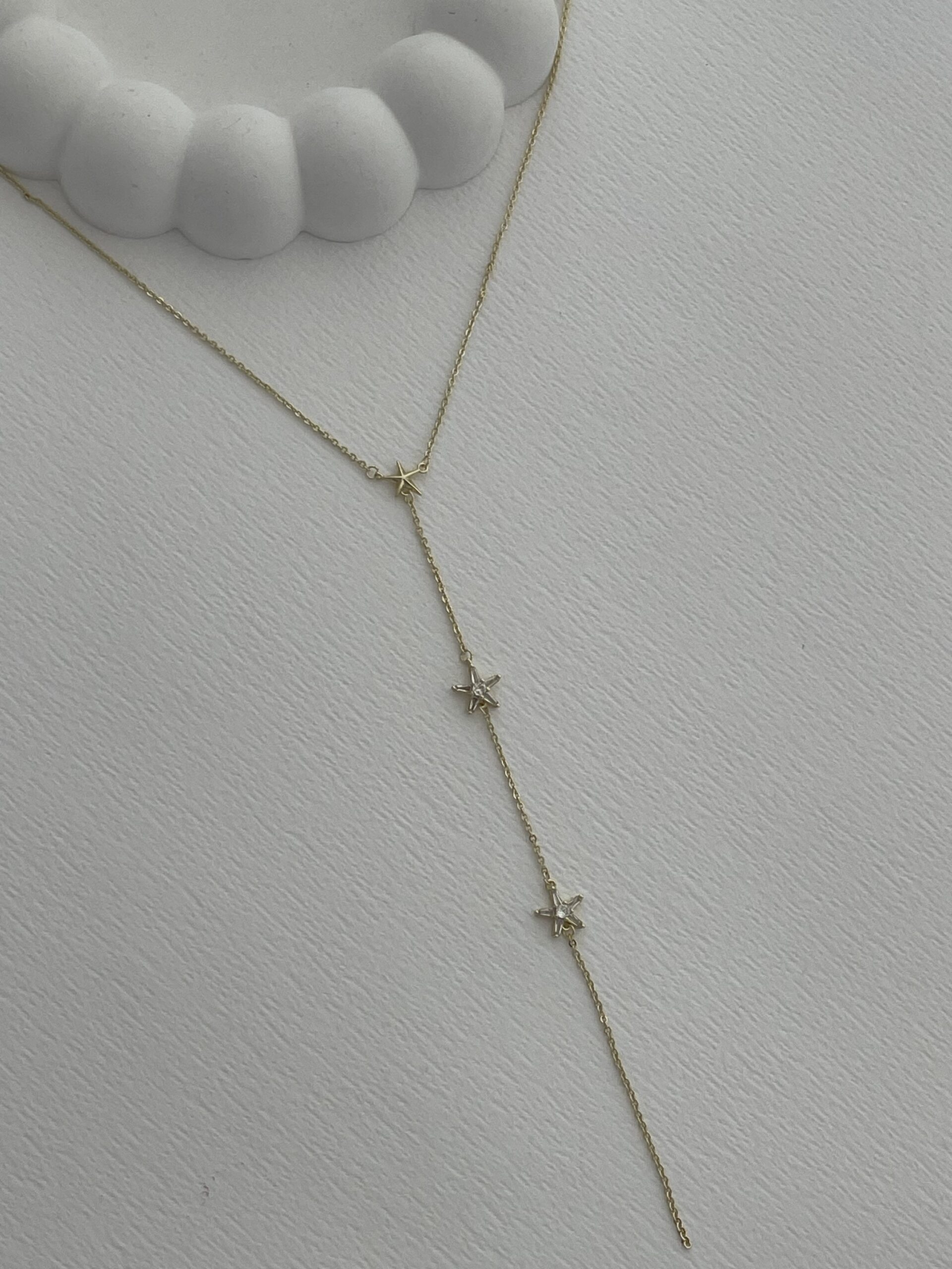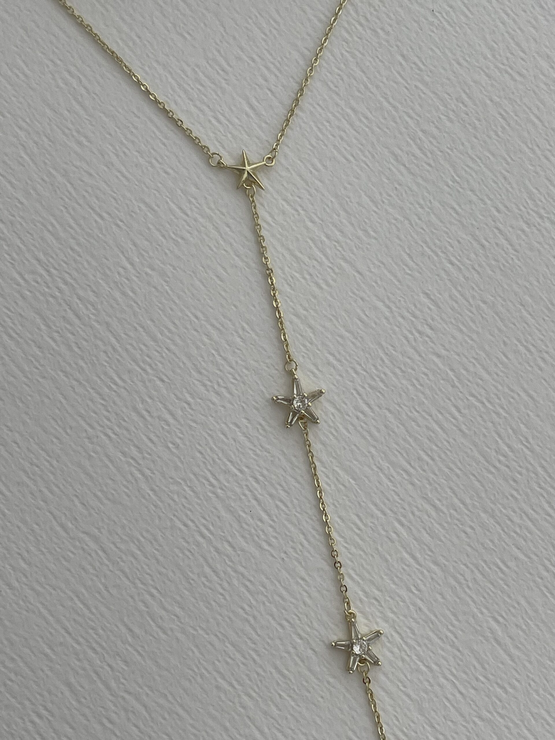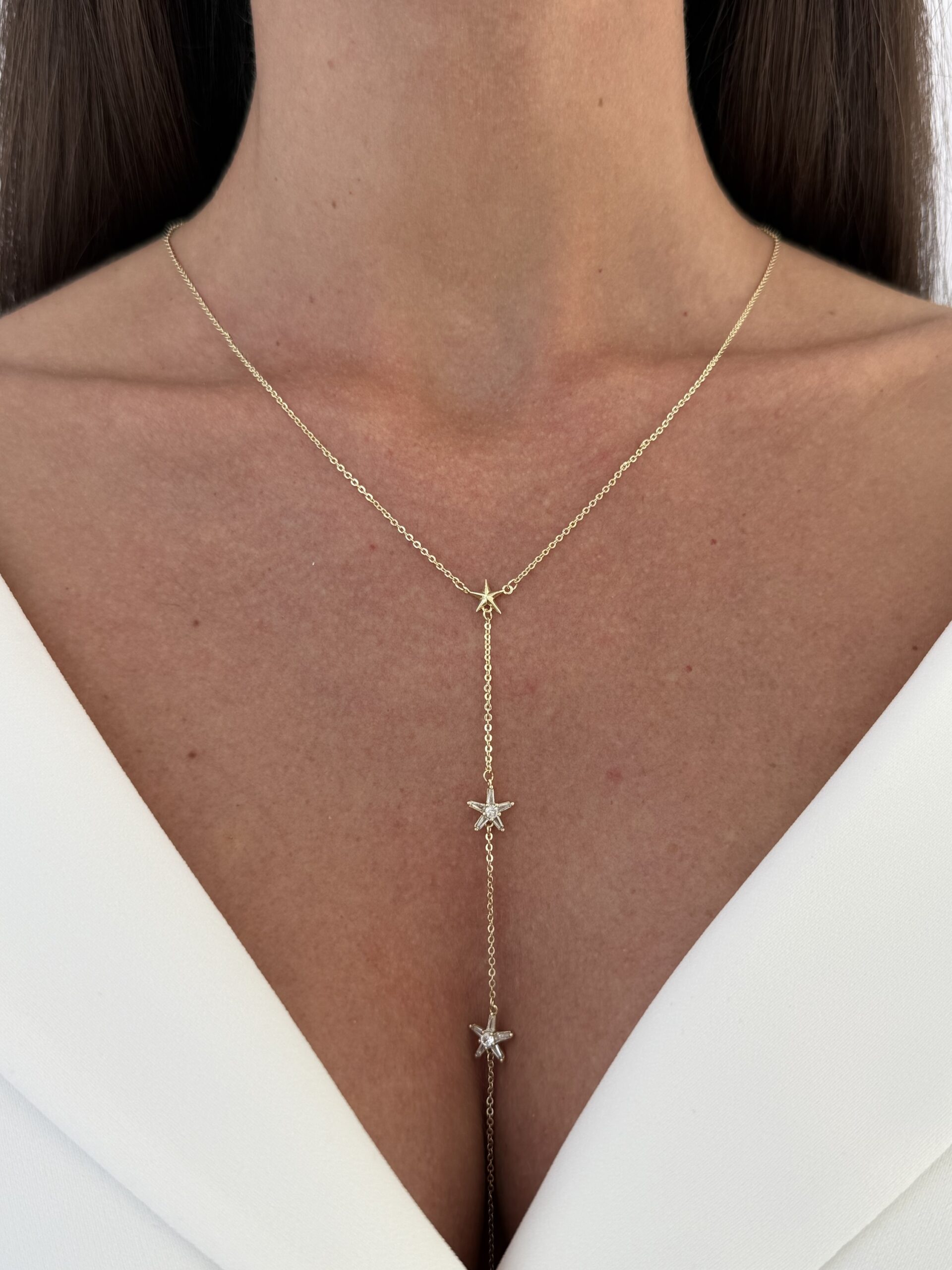Özel Seri Baget Taşlı Yıldız Tasarım Gold Y Kolye