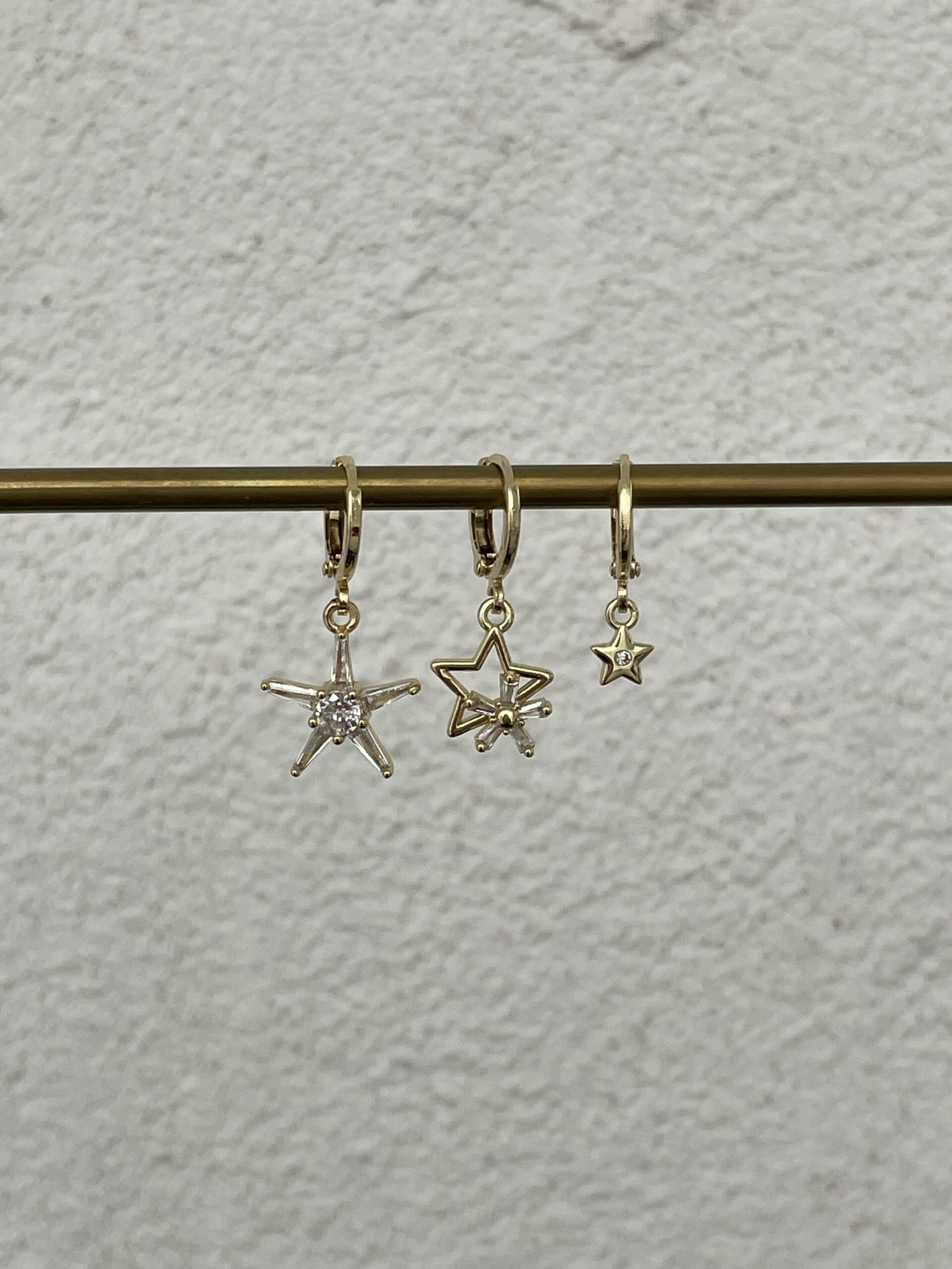 Özel Seri Baget Taşlı Yıldız Üçlü Halka Gold Küpe Seti