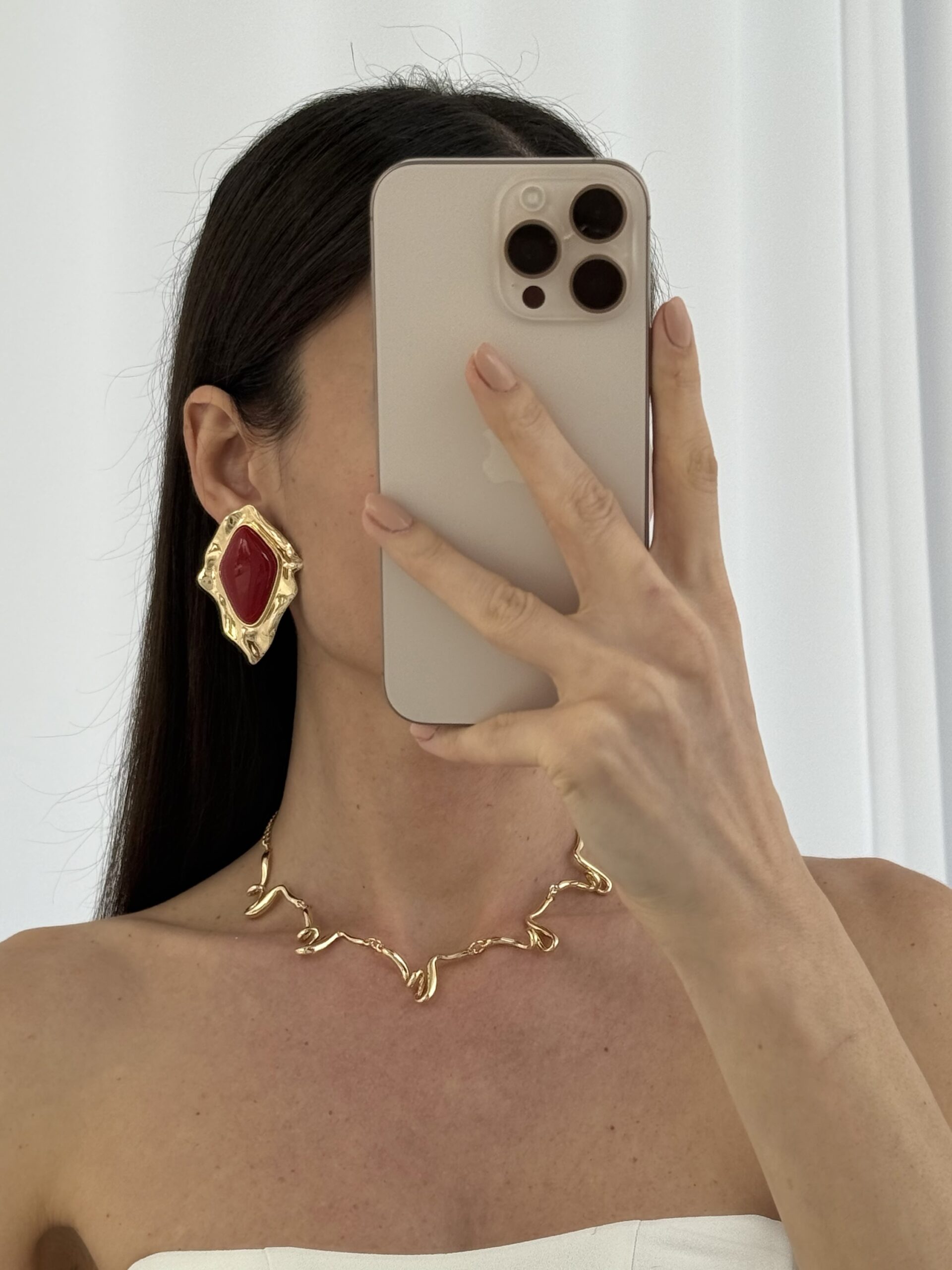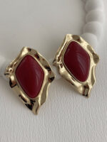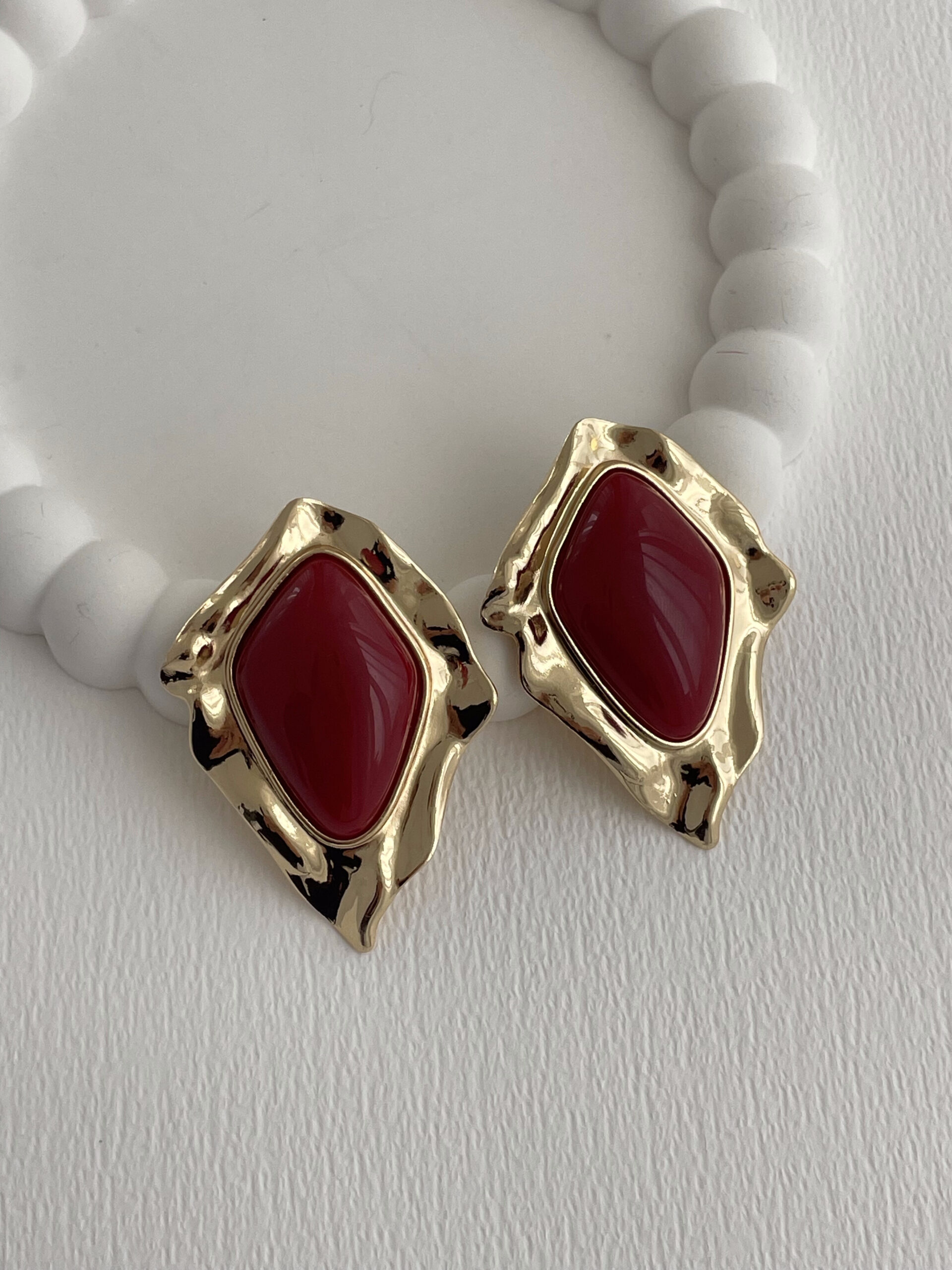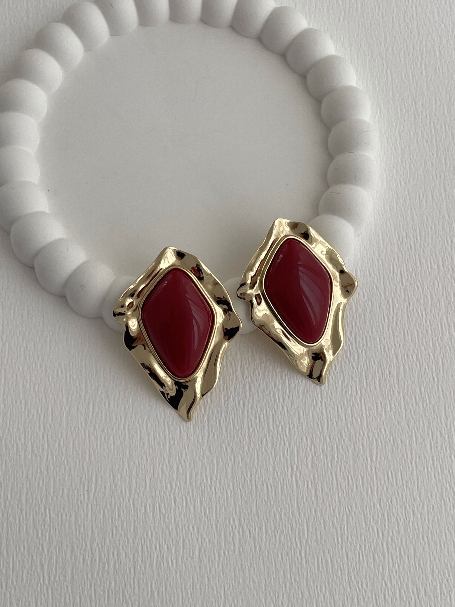 Özel Seri Baklava Dilimi Bordo Mineli Gold Küpe