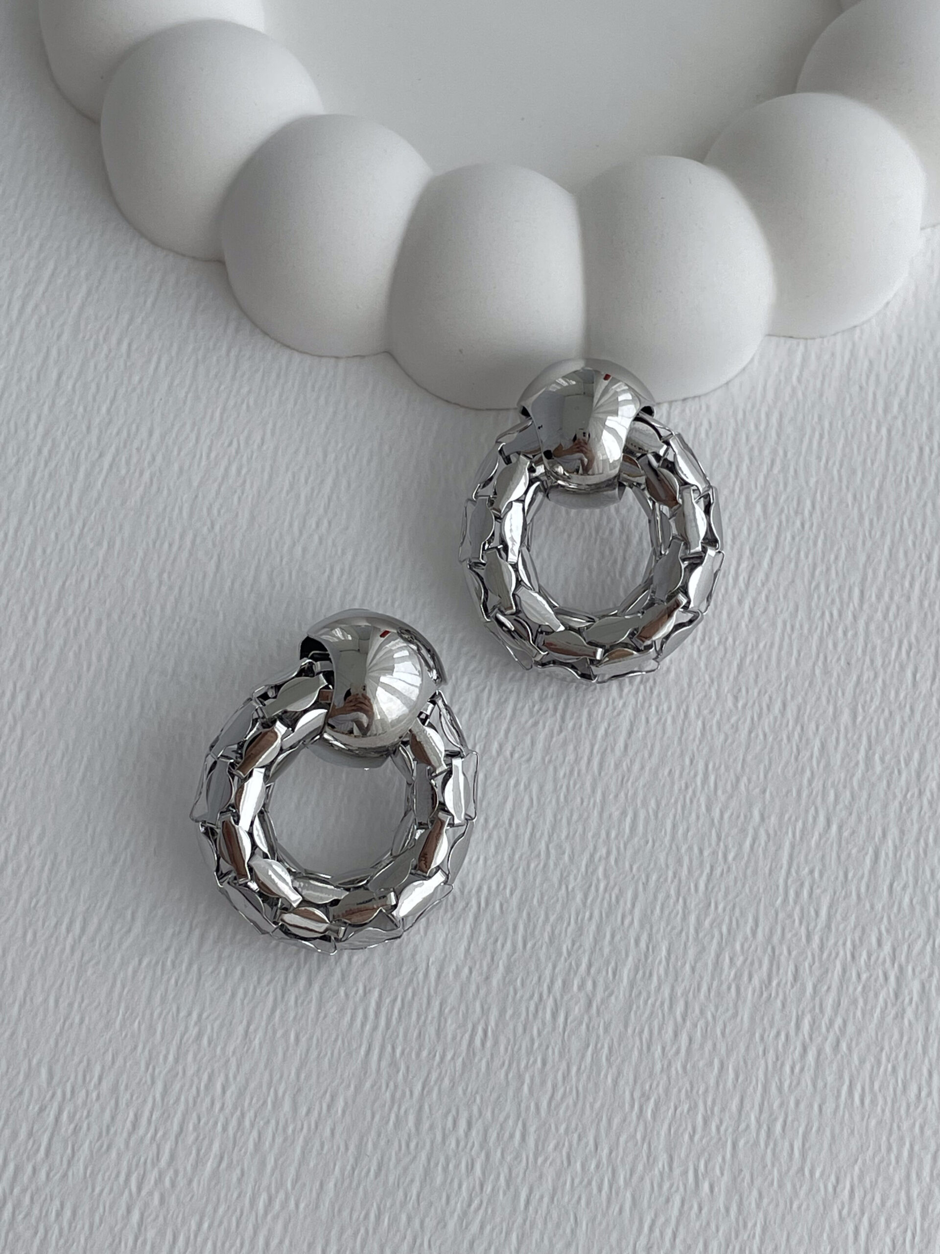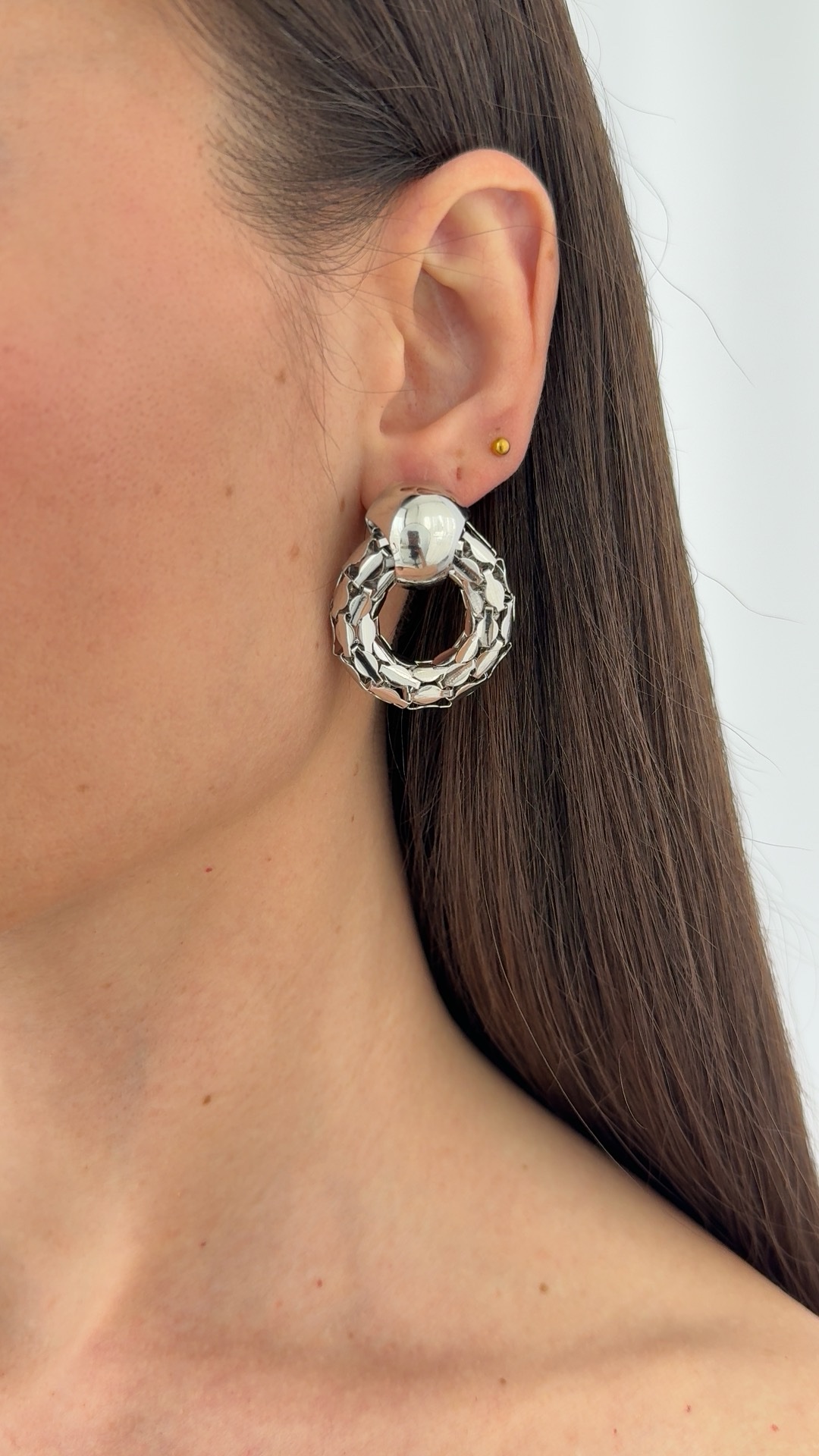Özel Seri Baklava Tasarım Top Detay Gümüş Halka Küpe