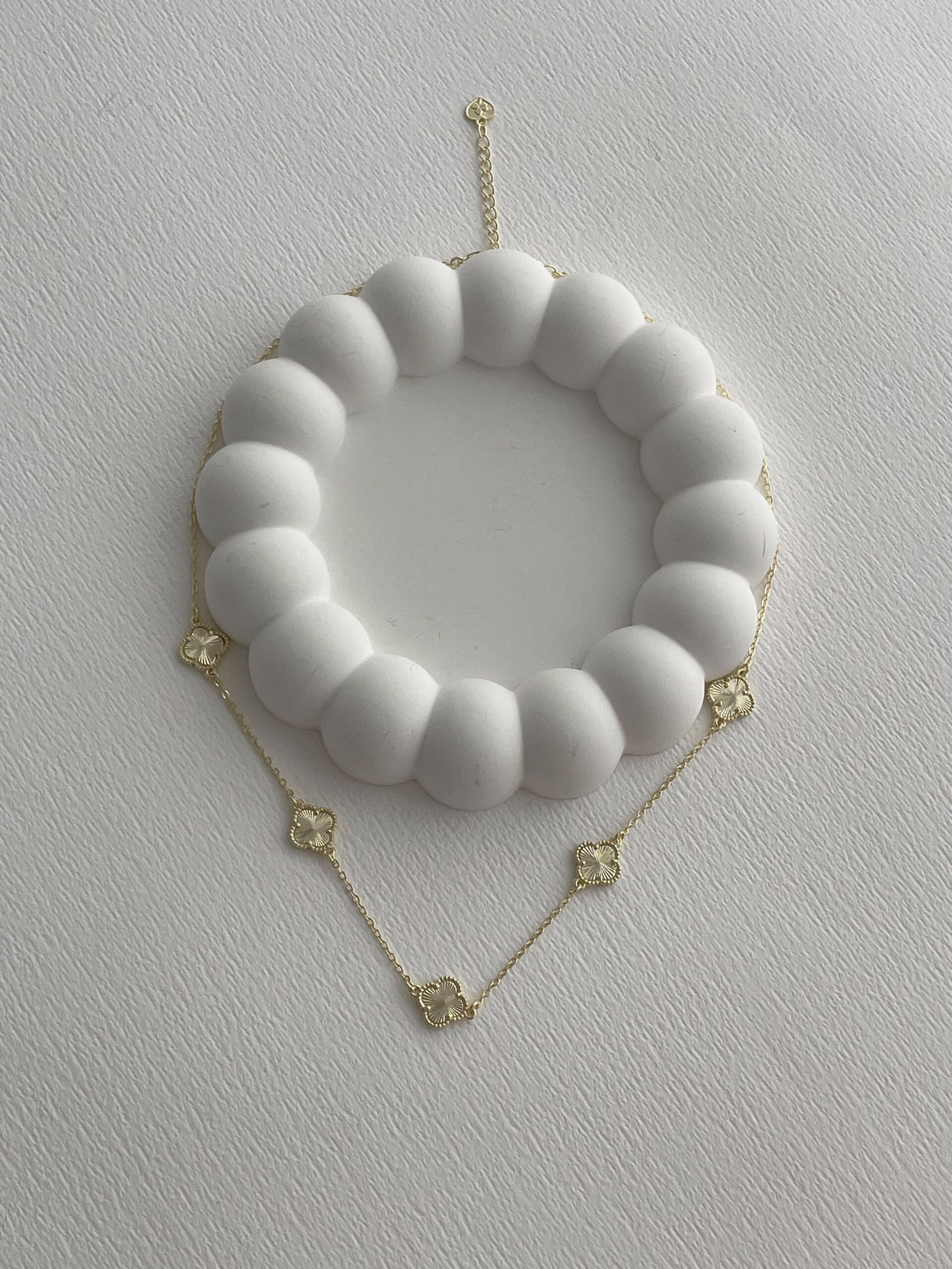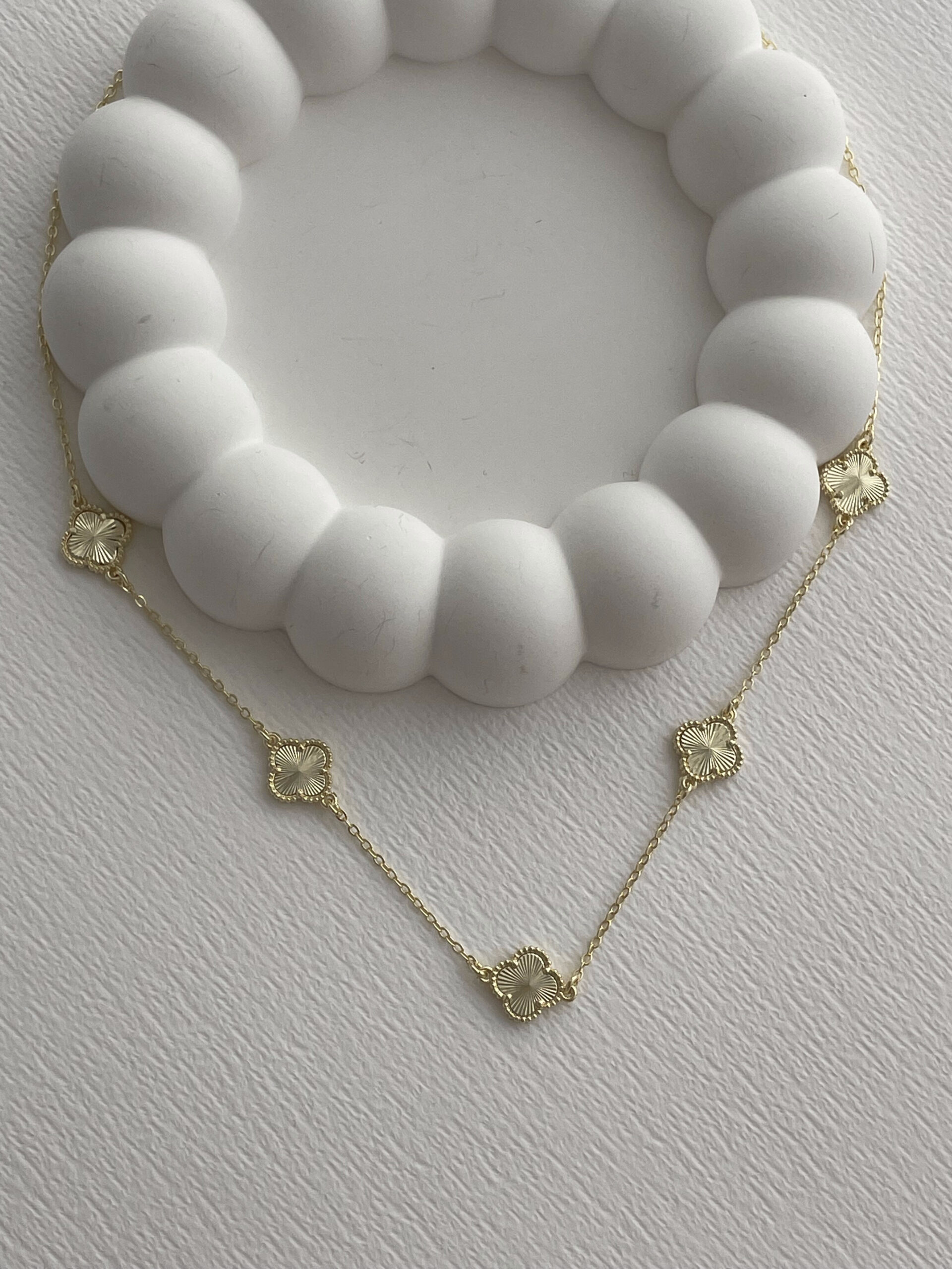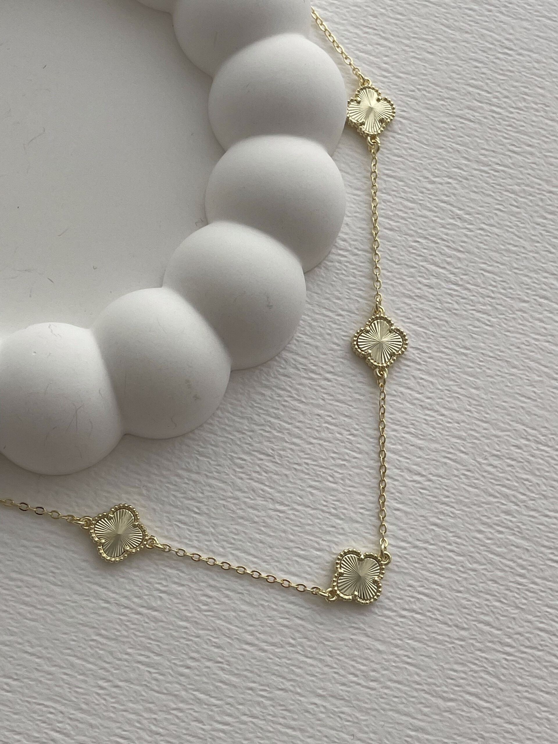 Özel Seri Beşli Desenli Yonca Tasarım Gold Kolye