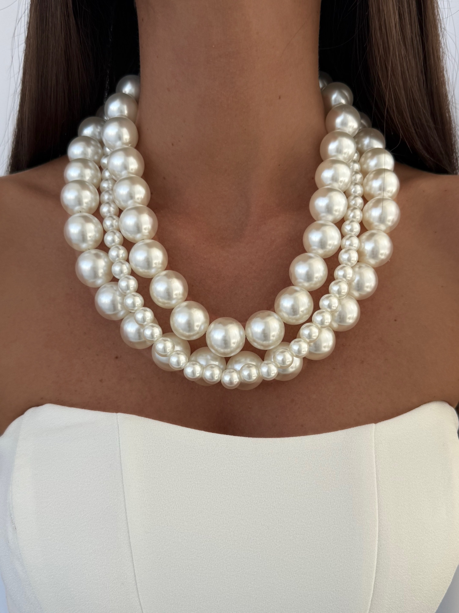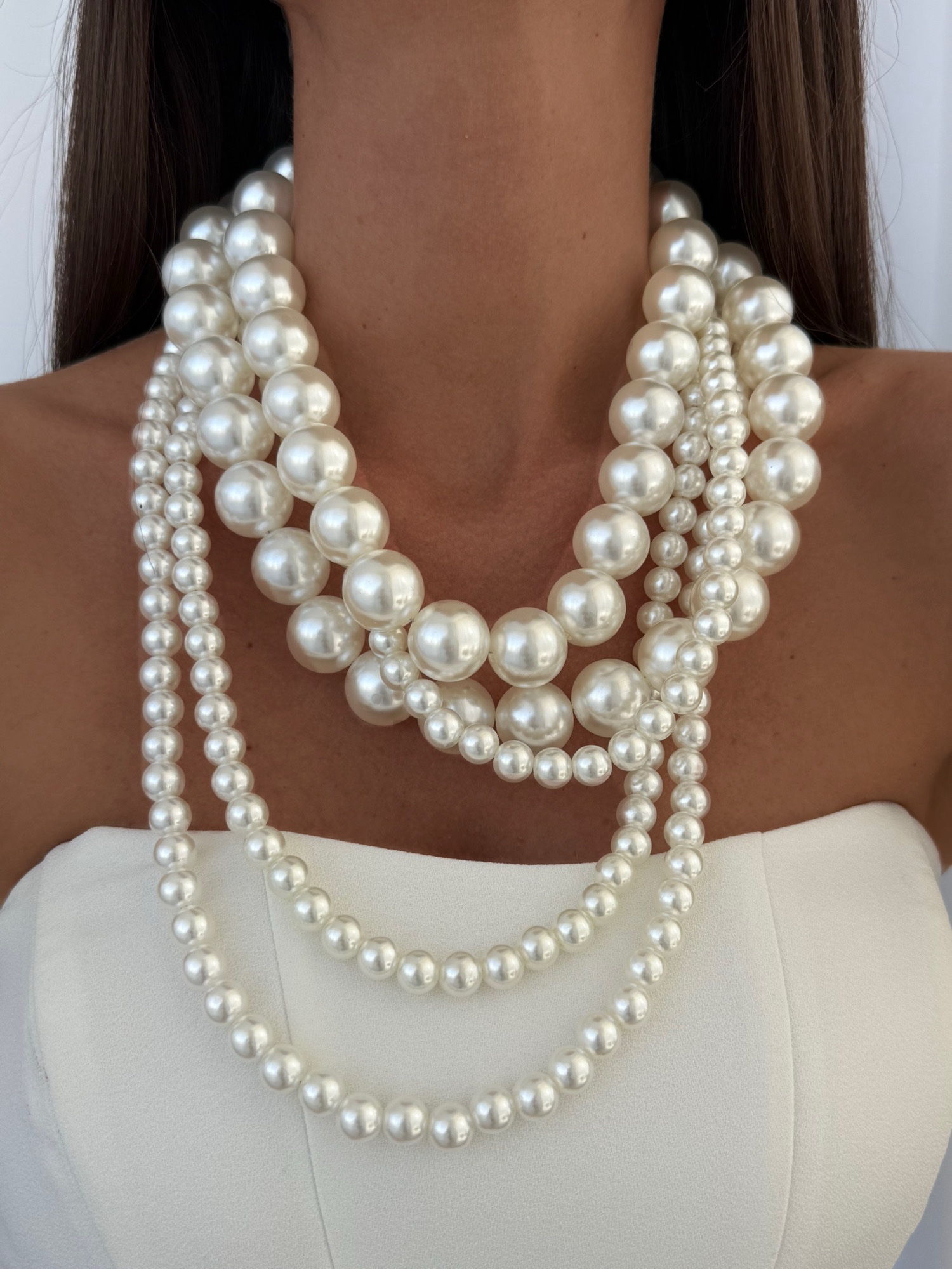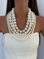 Özel Seri Beşli Marka Model Kalın Gold İnci Kolye