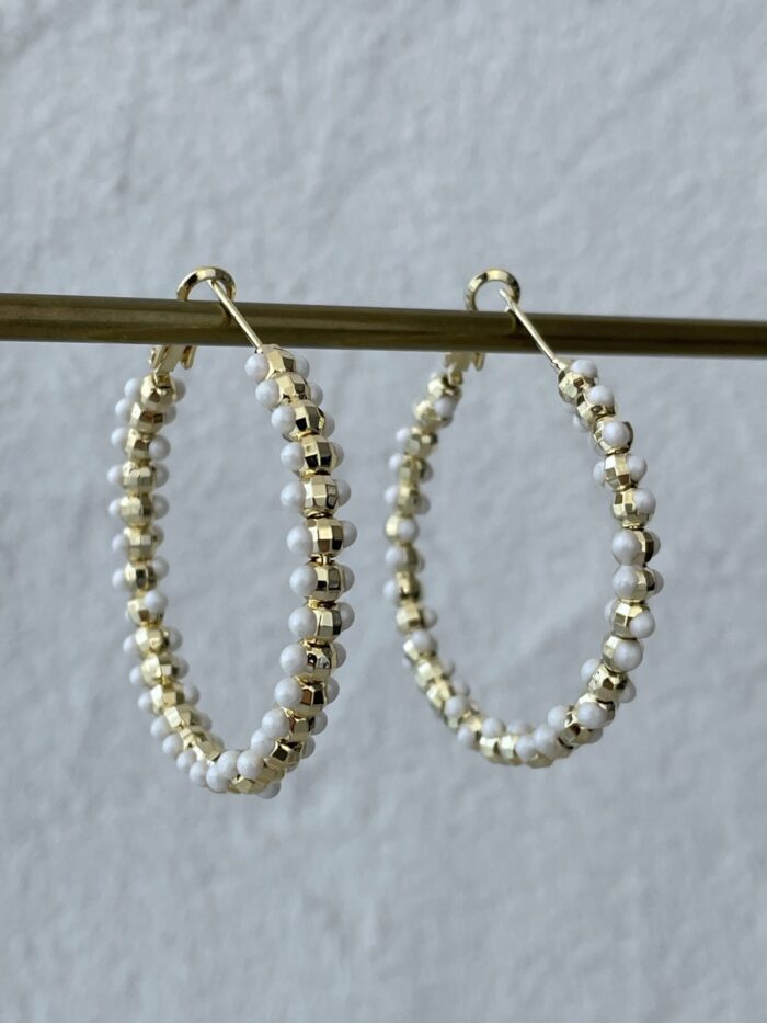 Özel Seri Beyaz İnci Detay Gold Büyük Halka Küpe