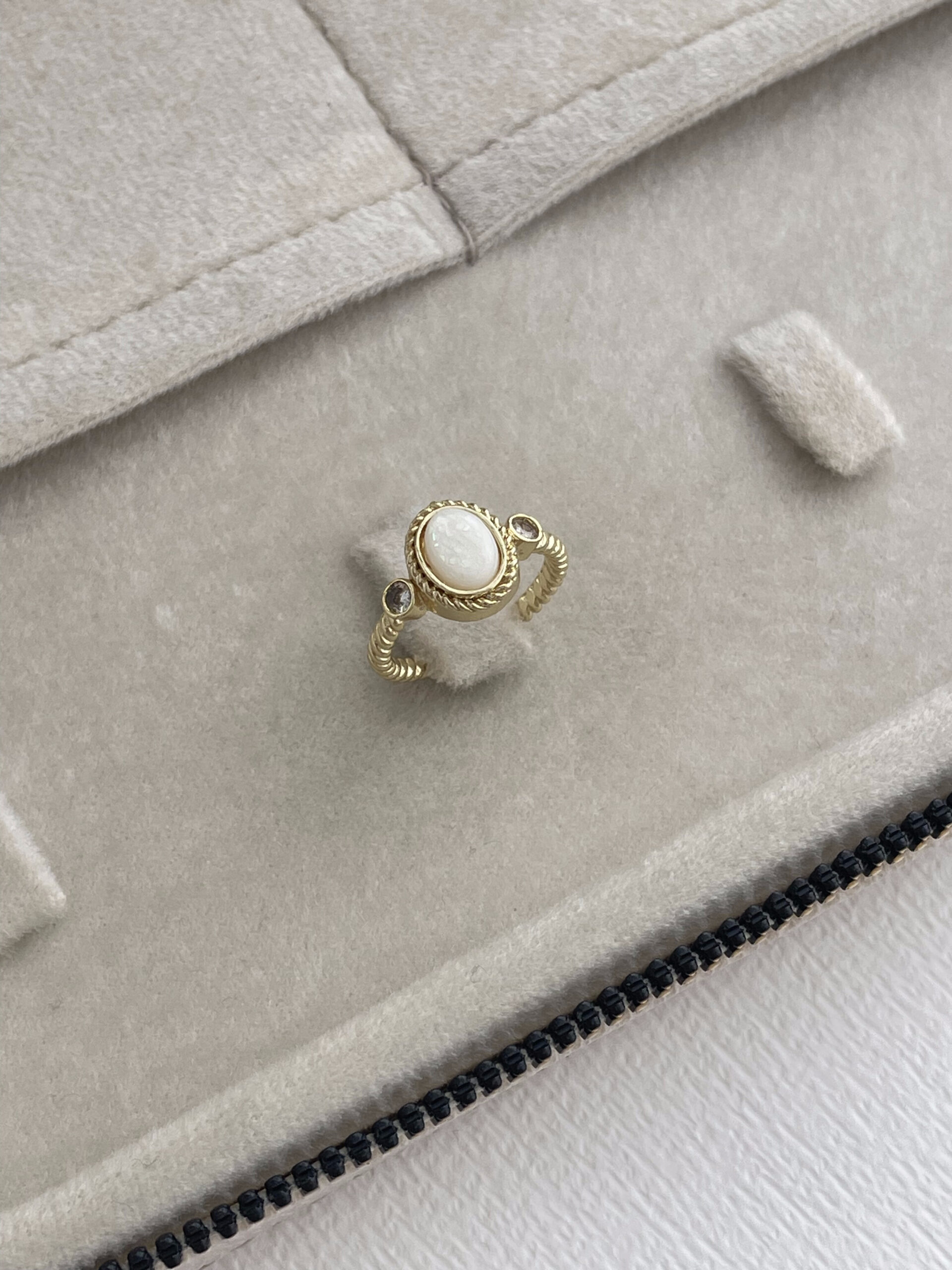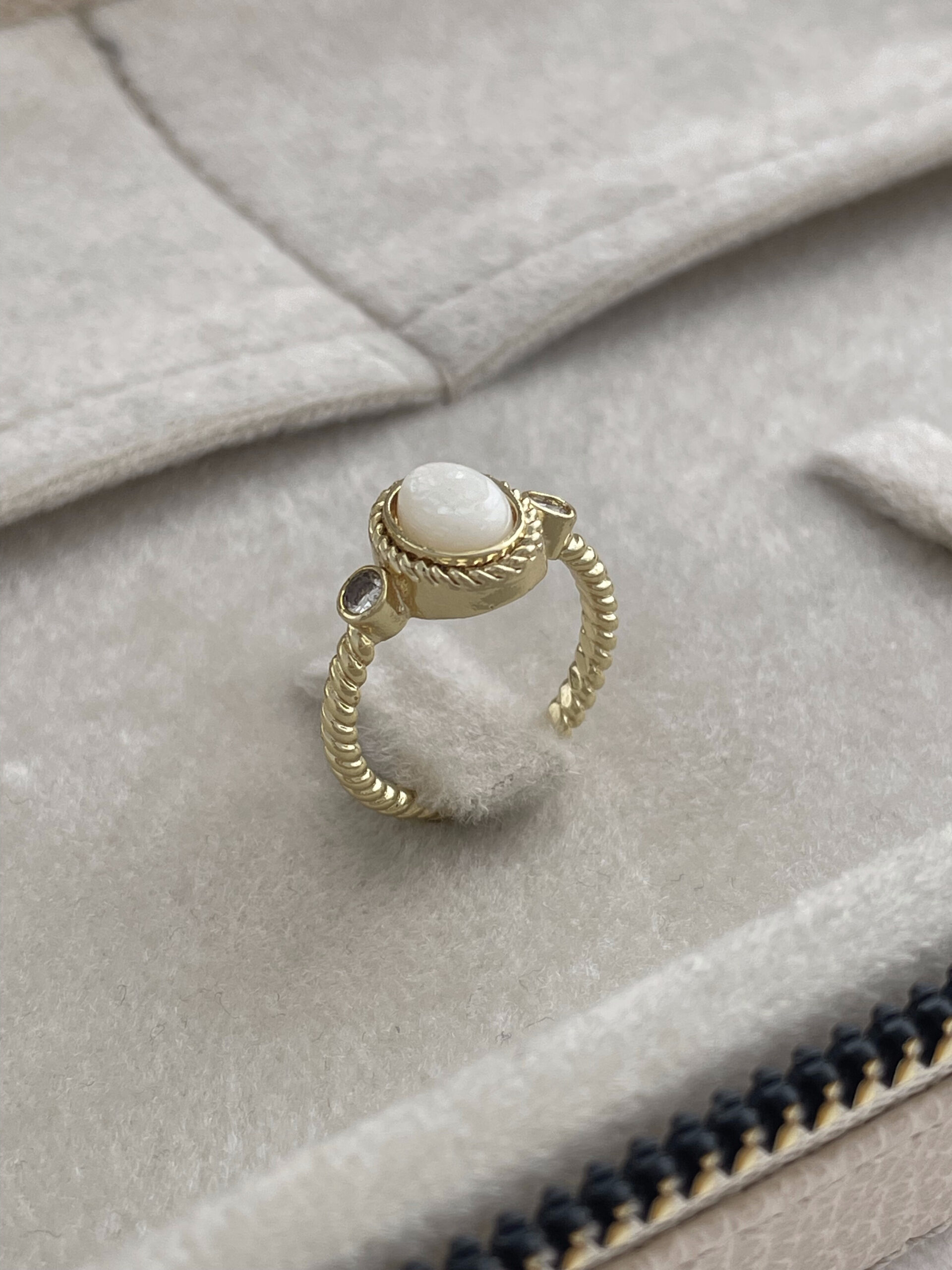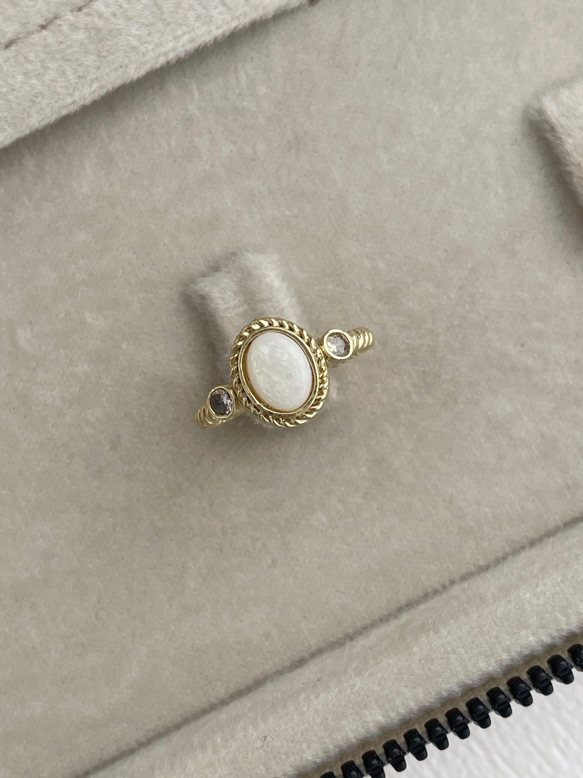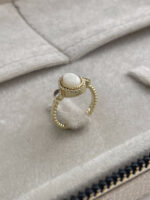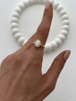 Özel Seri Beyaz Opal Taş Tasarım Zirkon Taşlı Desenli Oval Gold Ayarlanabilir Yüzük