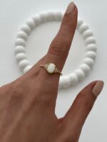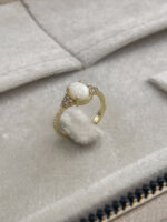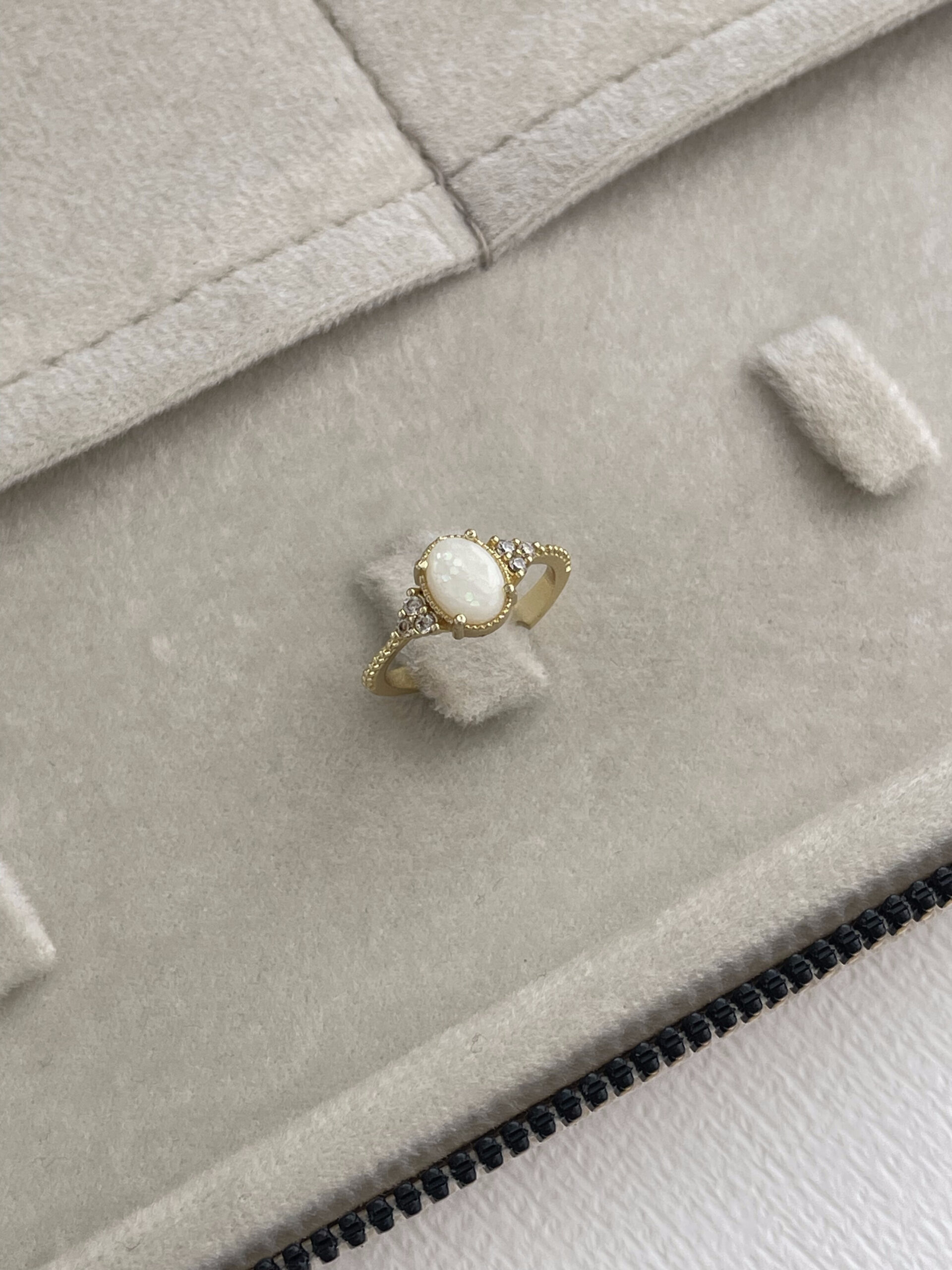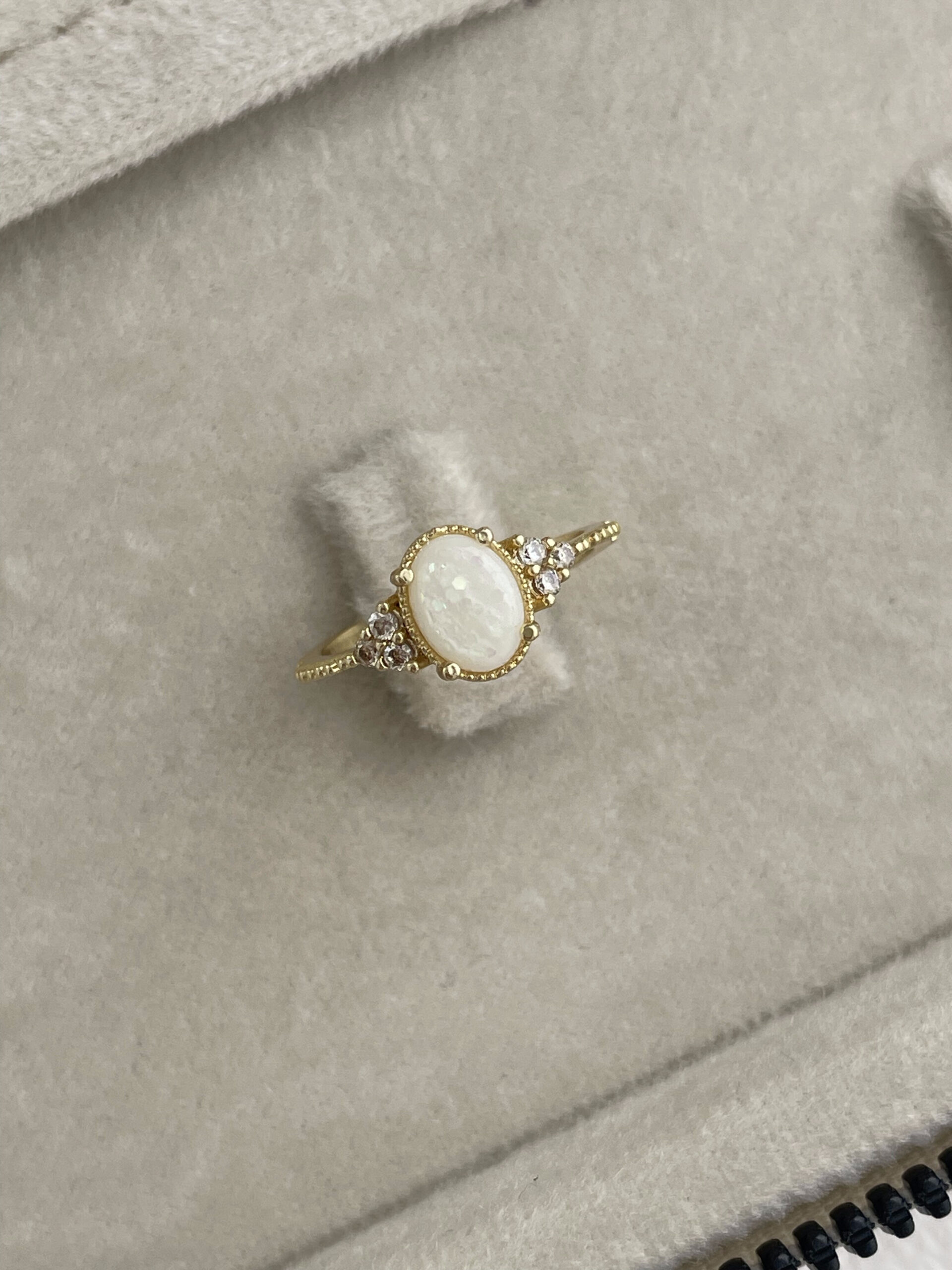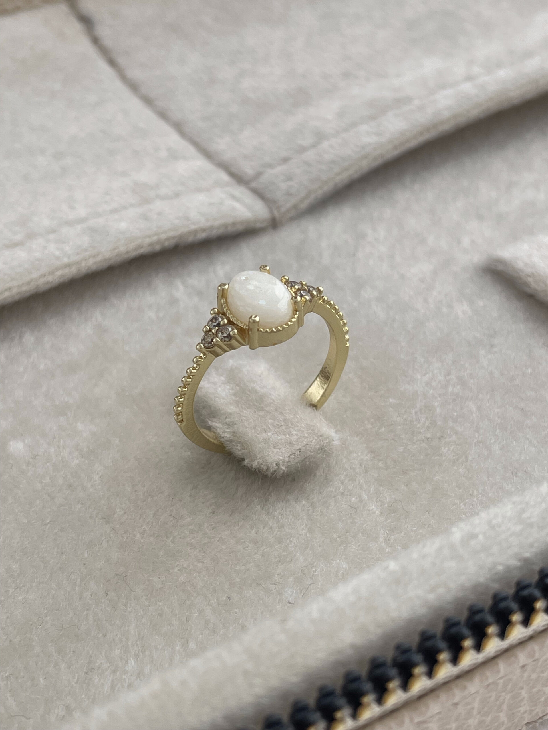Özel Seri Beyaz Opal Taş Tasarım Zirkon Taşlı Oval Gold Ayarlanabilir Yüzük