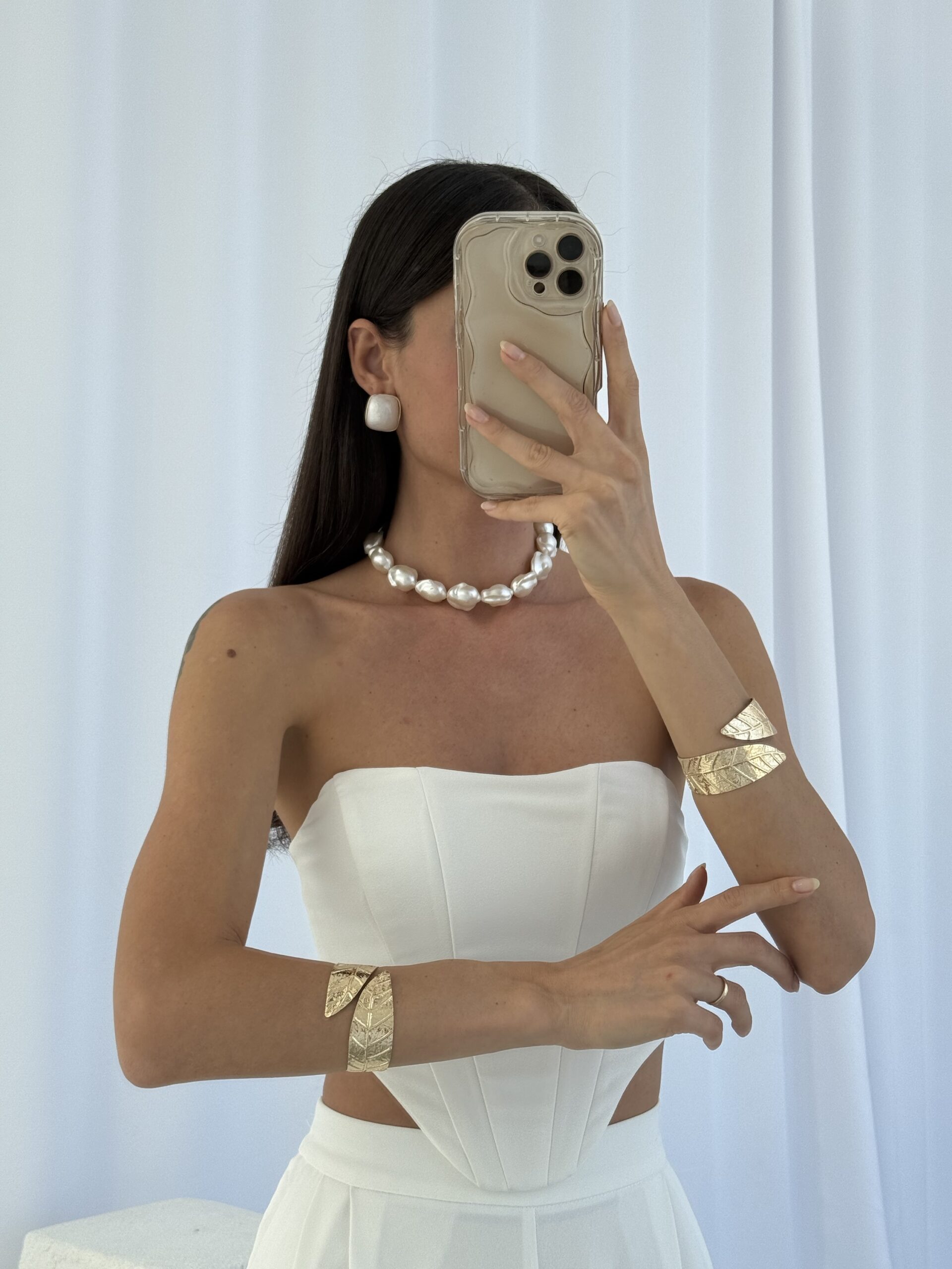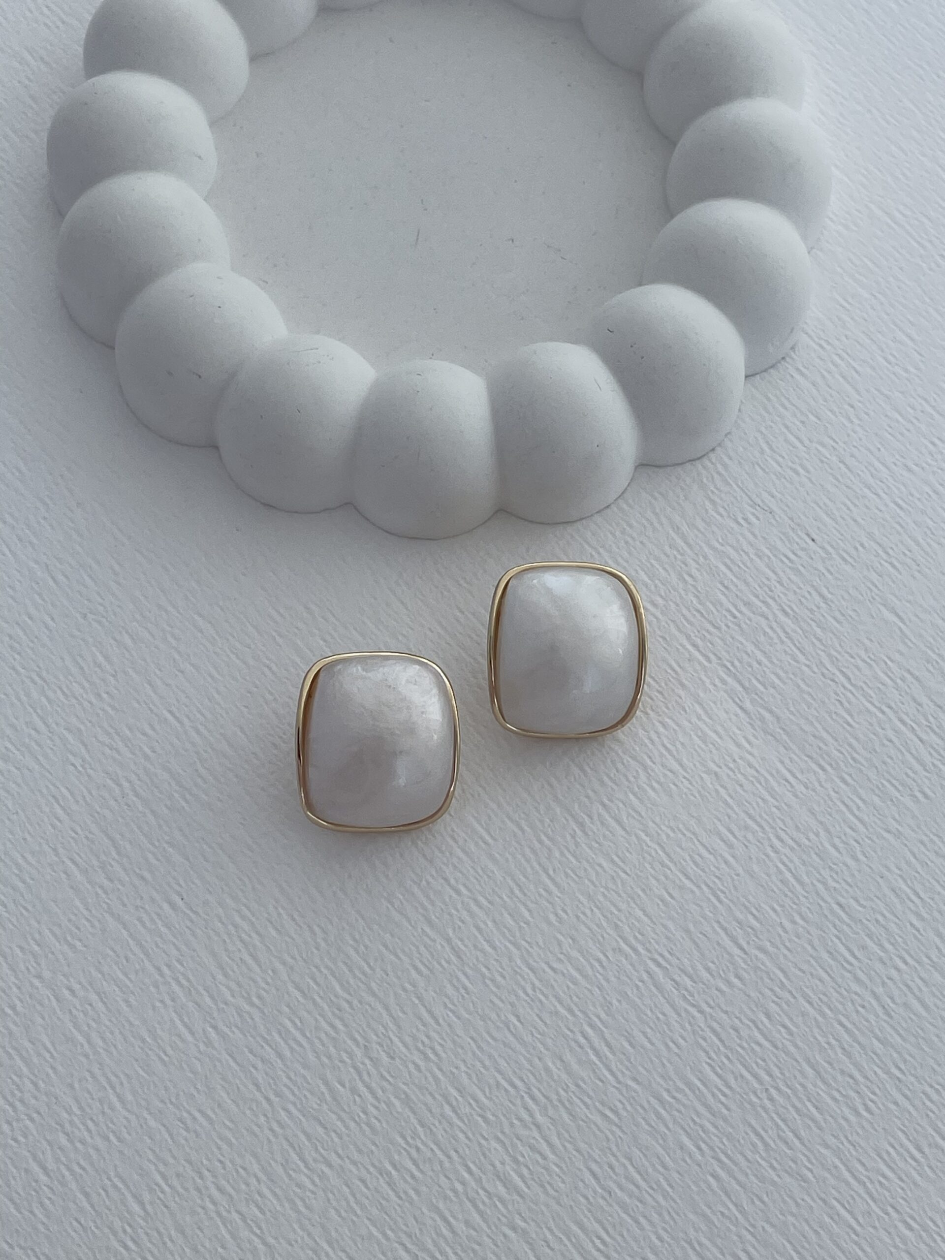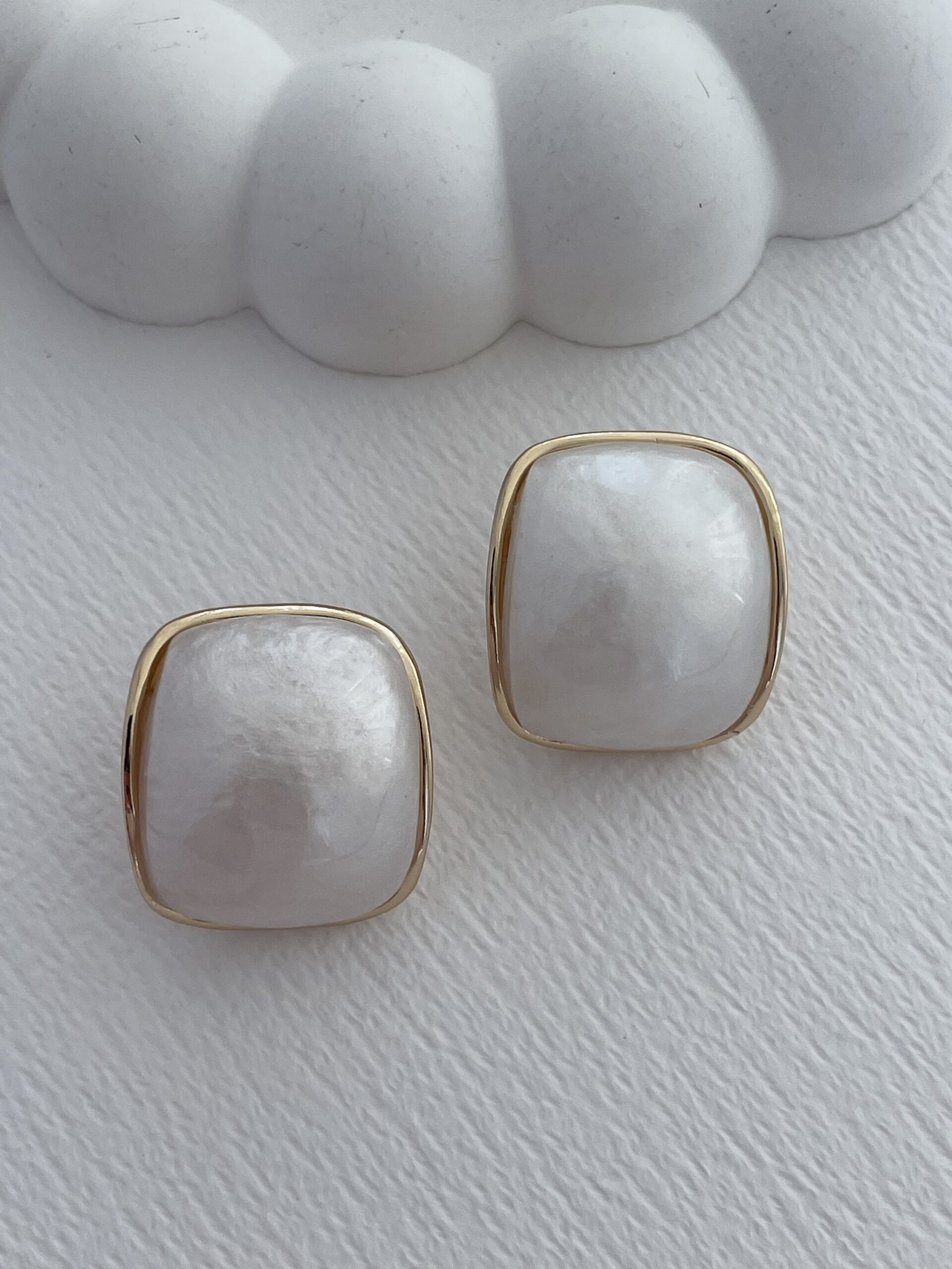 Özel Seri Beyaz Sedef Detaylı Gold Vintage Küpe