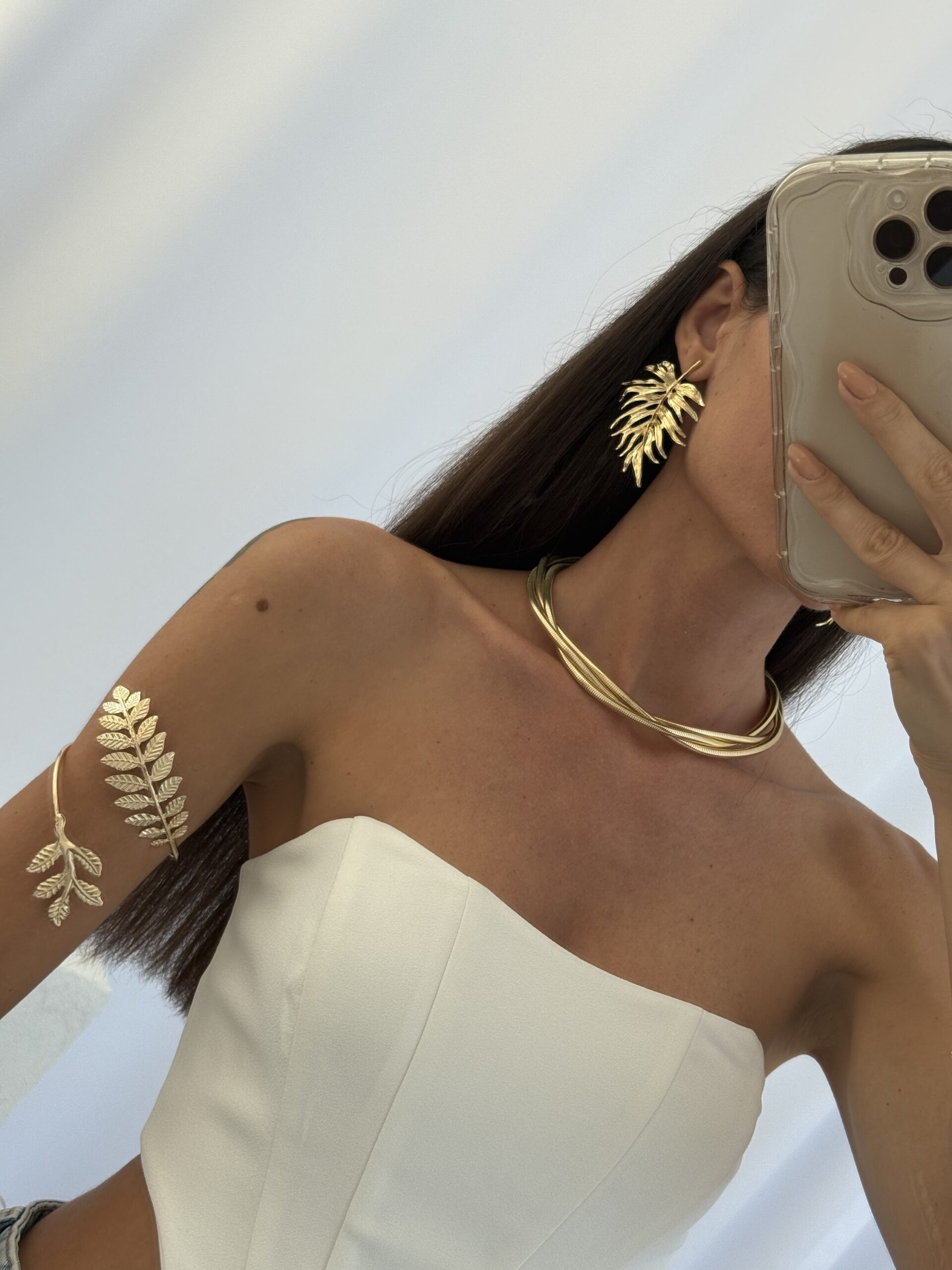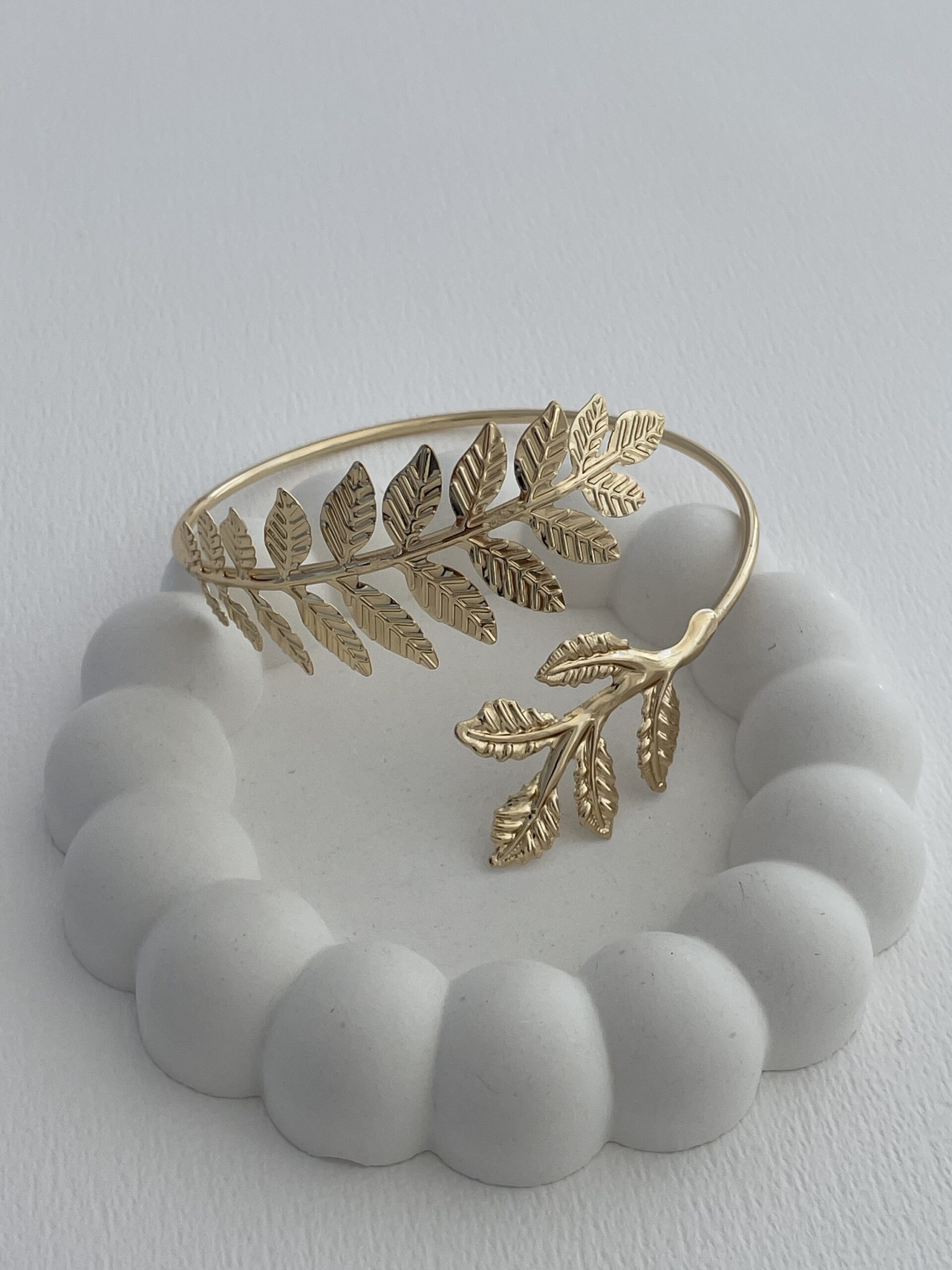 Özel Seri Bir Ucu Kısa Yaprak Tasarım Gold Pazu Bilekliği