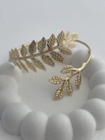 Özel Seri Bir Ucu Kısa Yaprak Tasarım Gold Pazu Bilekliği