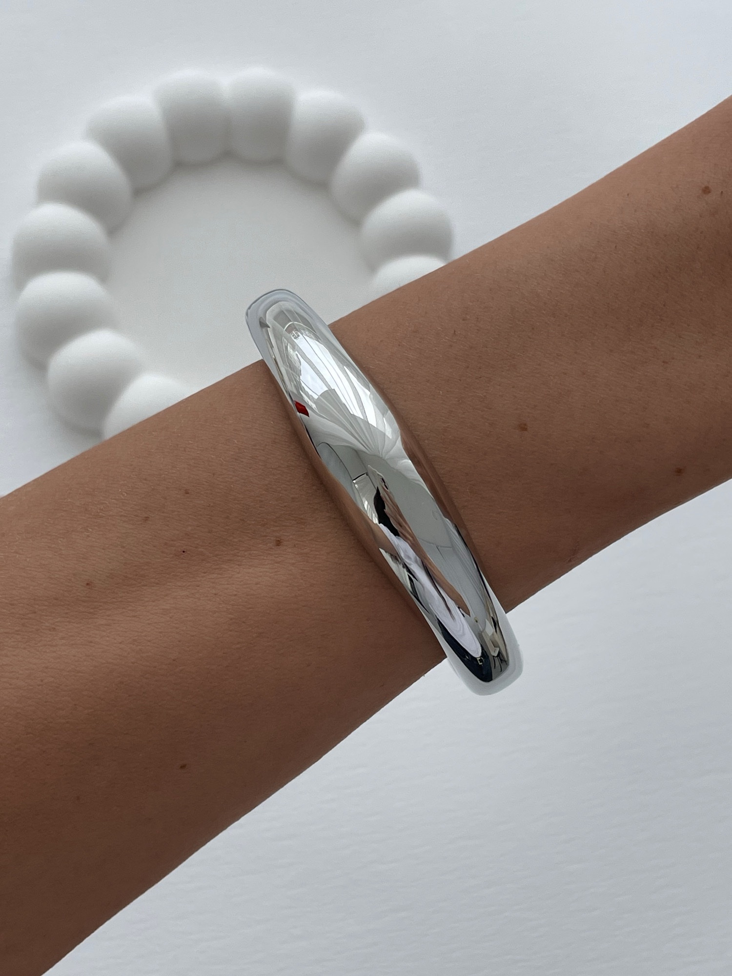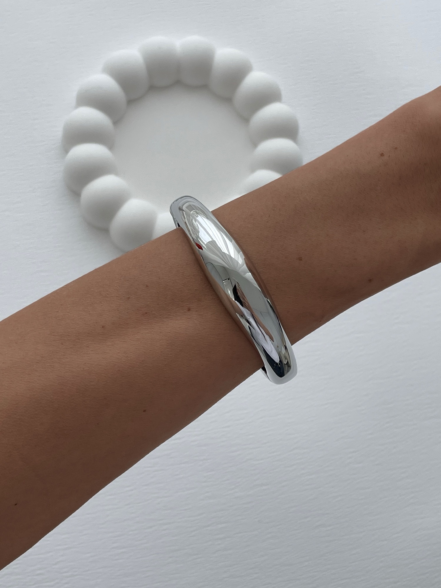 Özel Seri Bombeli İnce Gümüş Kelepçe Bileklik