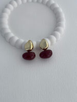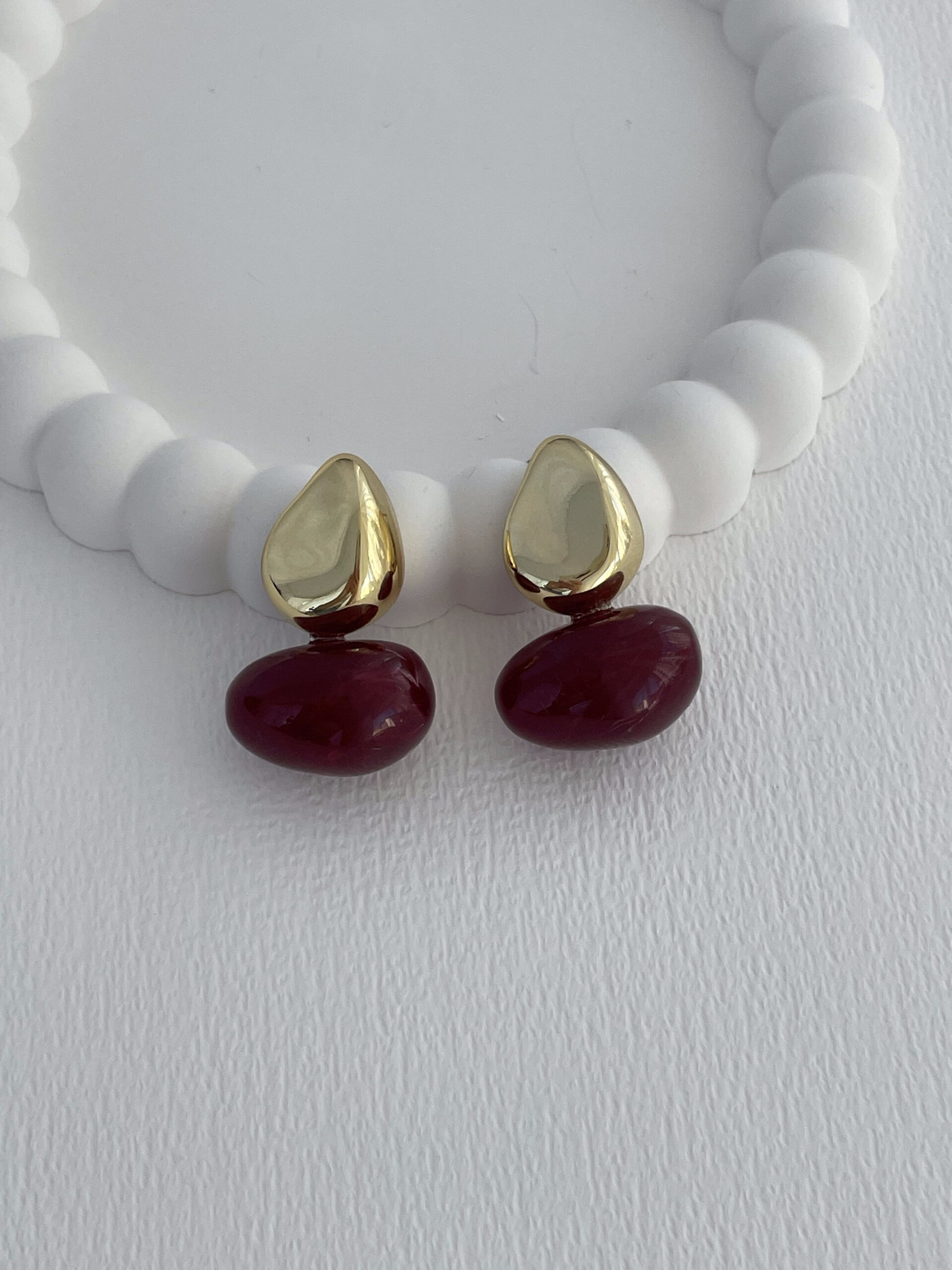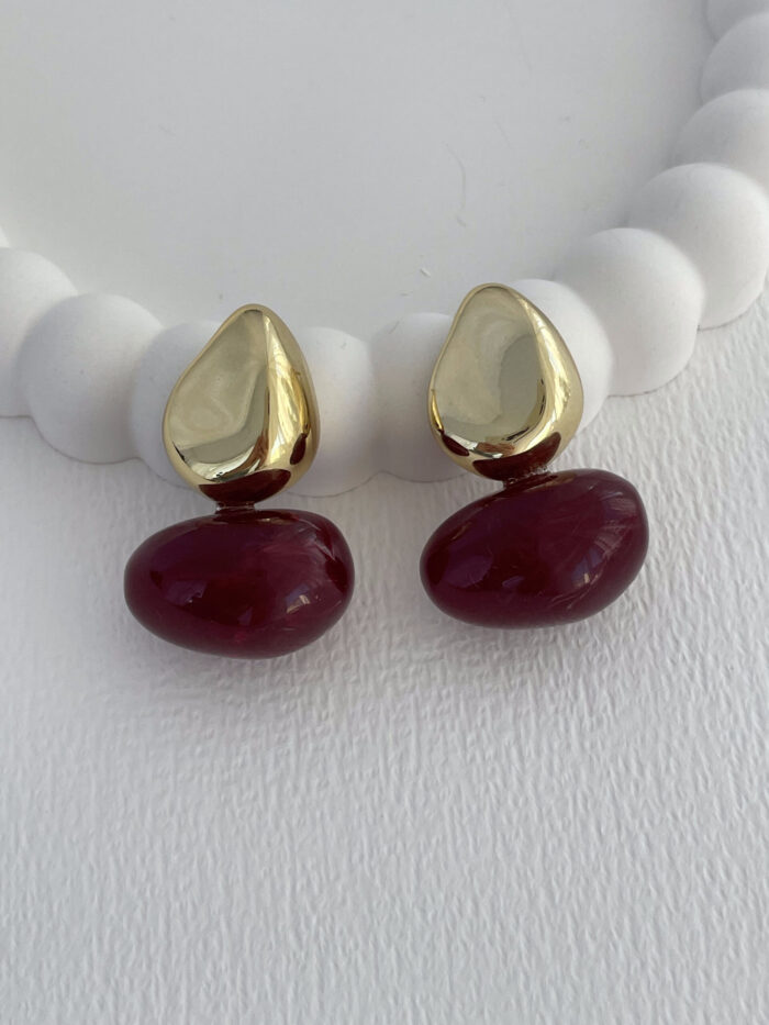 Özel Seri Bordo Akrilik Taş Detay İkili Gold Küpe
