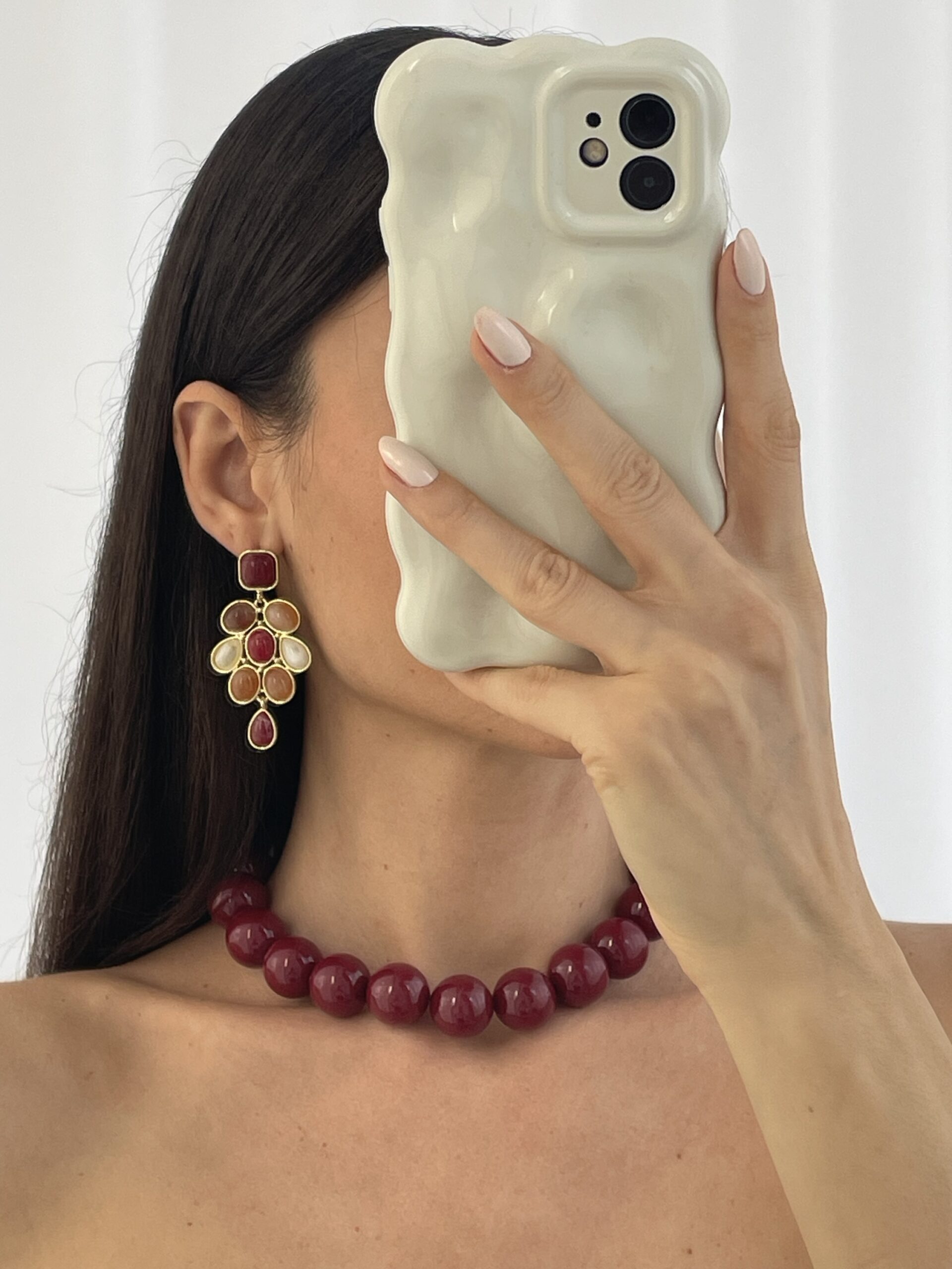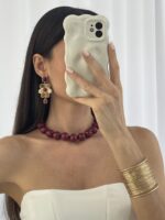 Özel Seri Bordo & Kahverengi MNG Damla Tasarım Gold Küpe