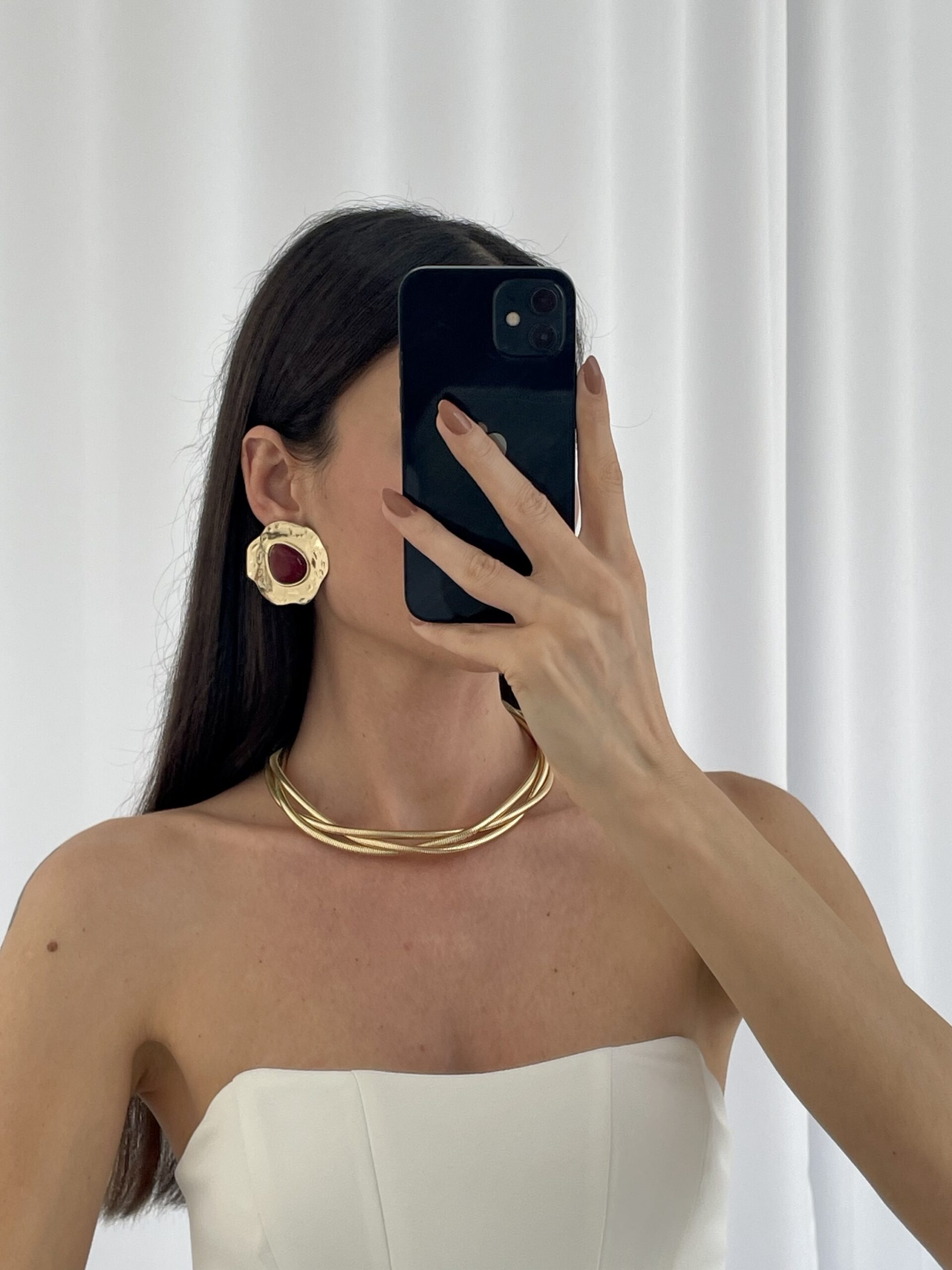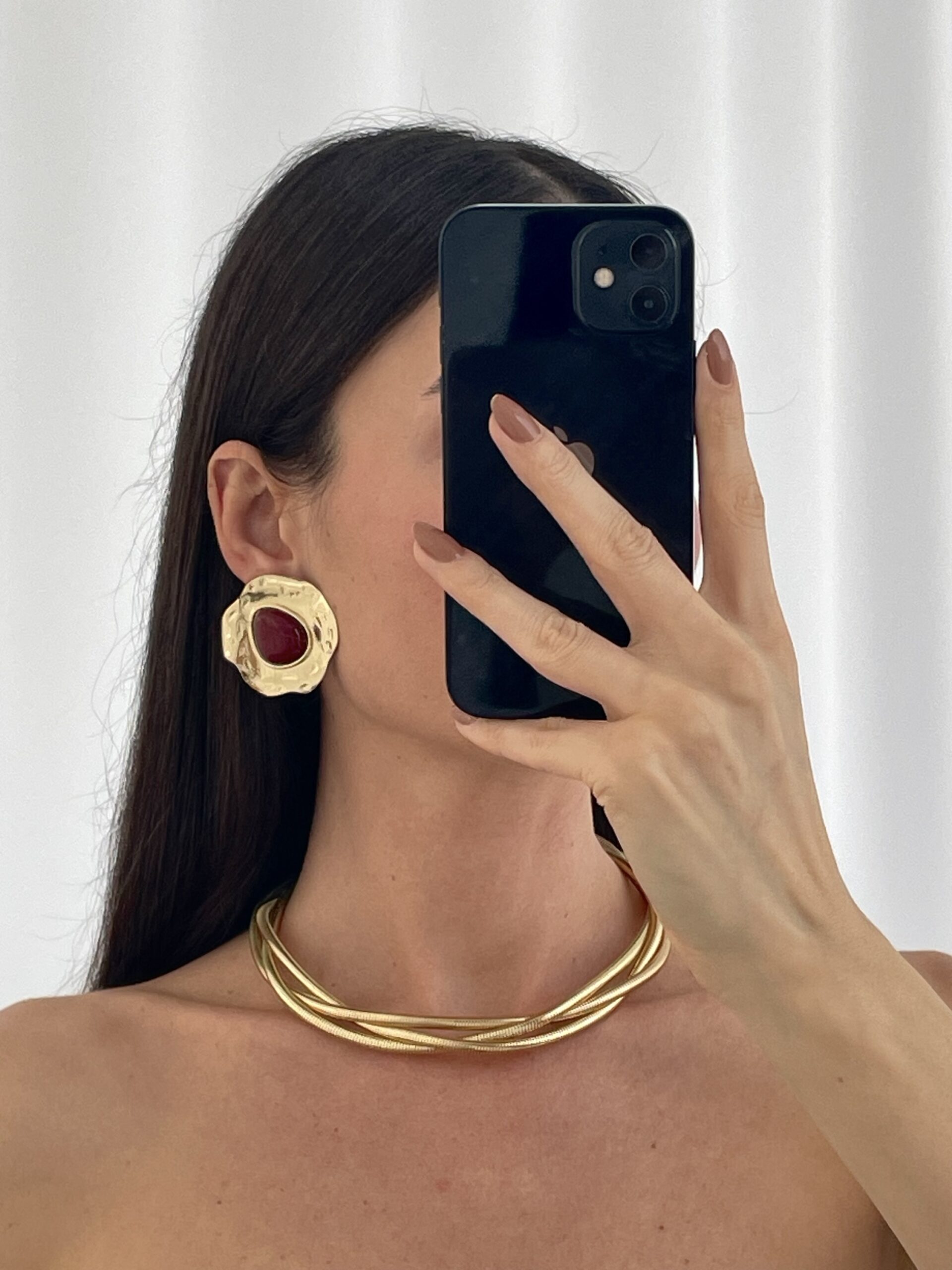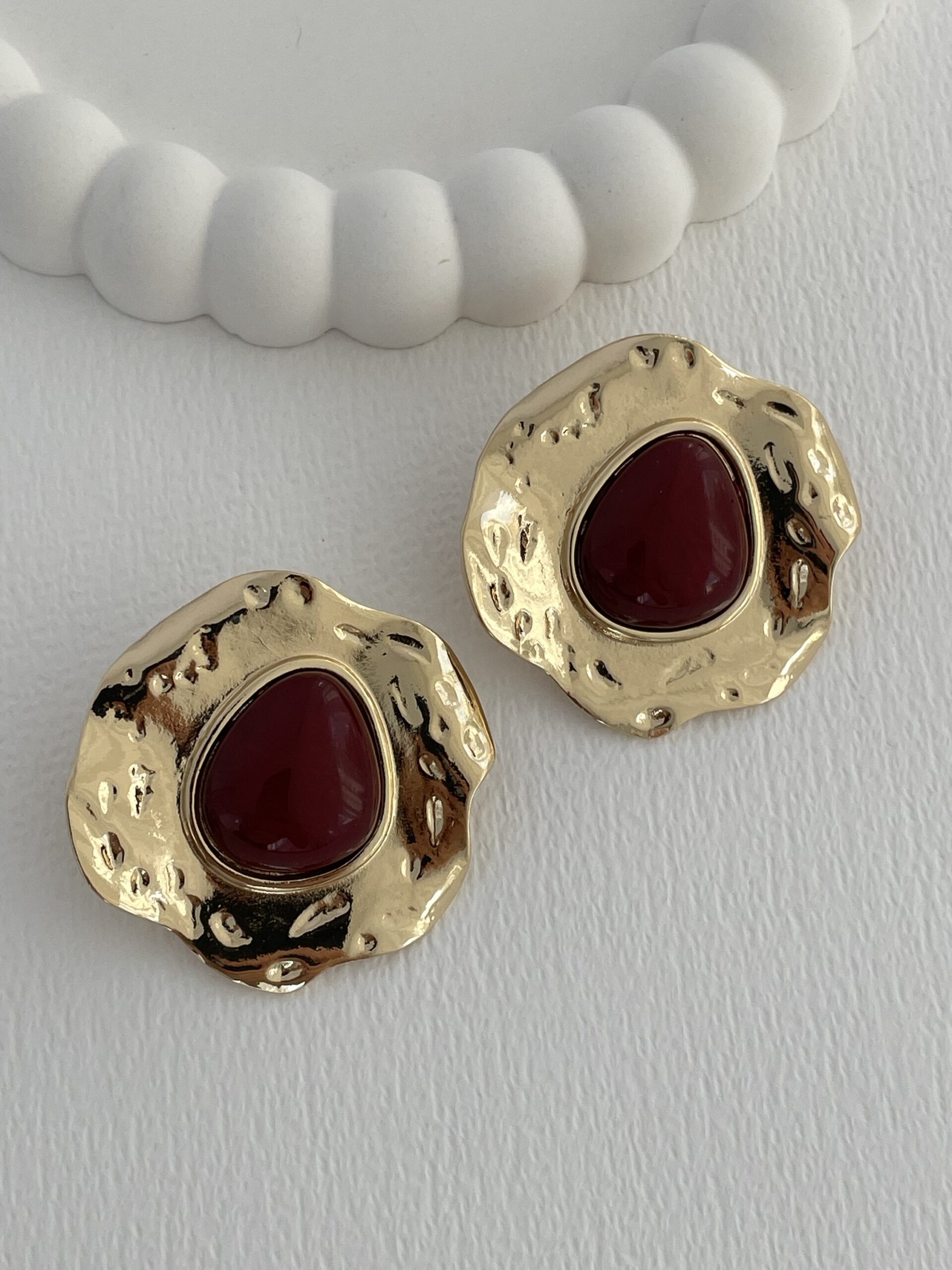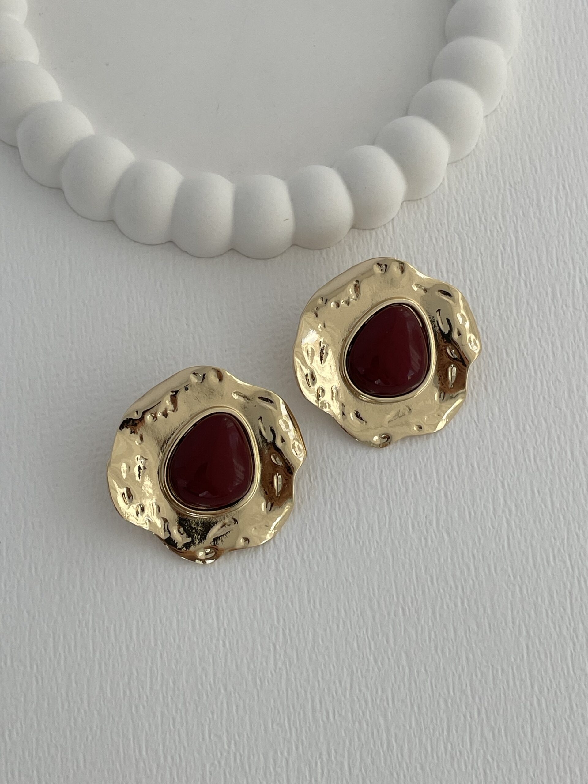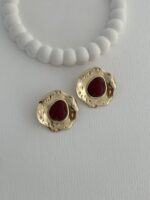 Özel Seri Bordo Kemik Desenli Soyut Tasarım Gold Küpe