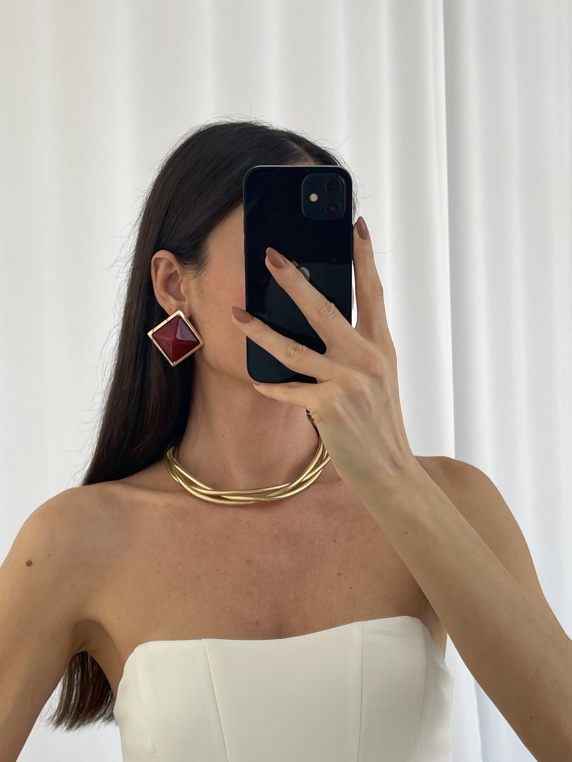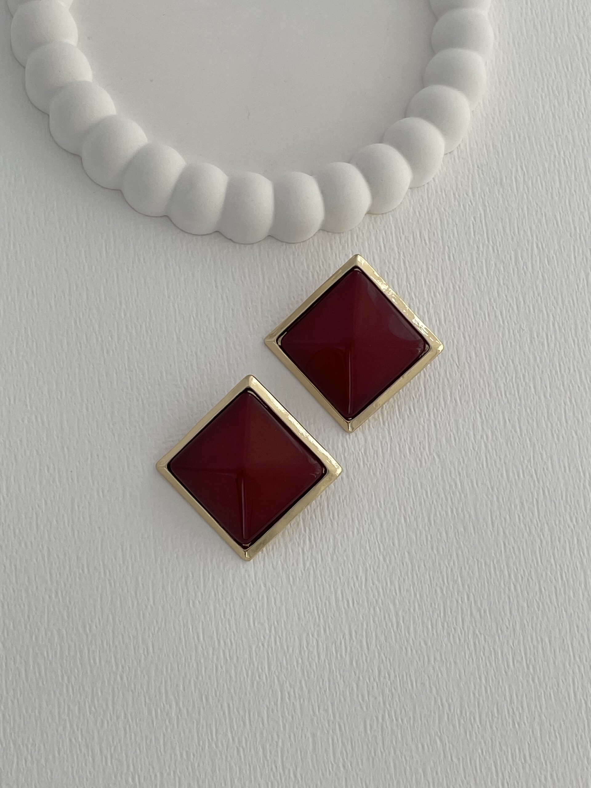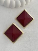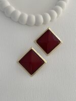 Özel Seri Bordo Kemik Detay Kare Tasarım Gold Küpe