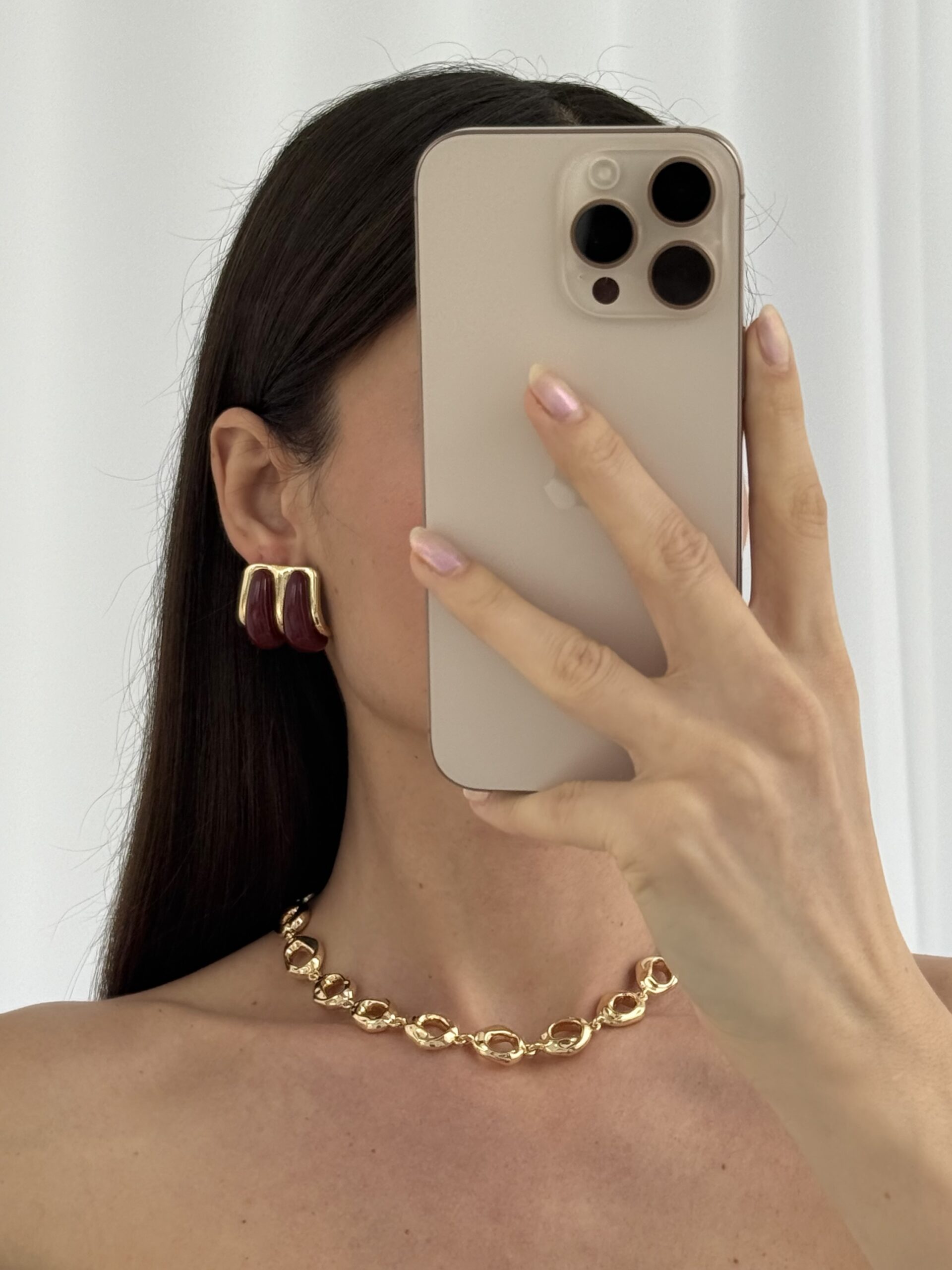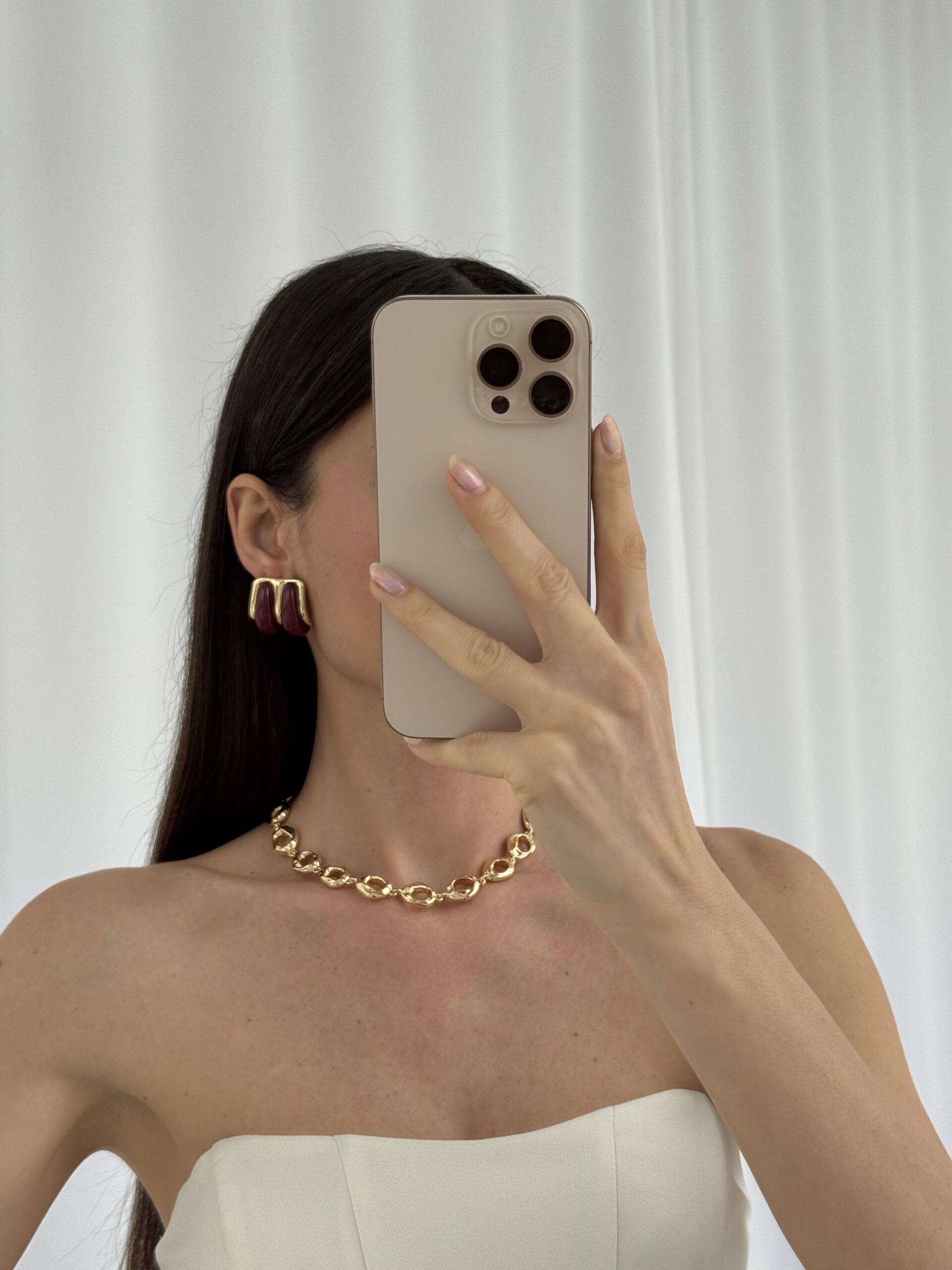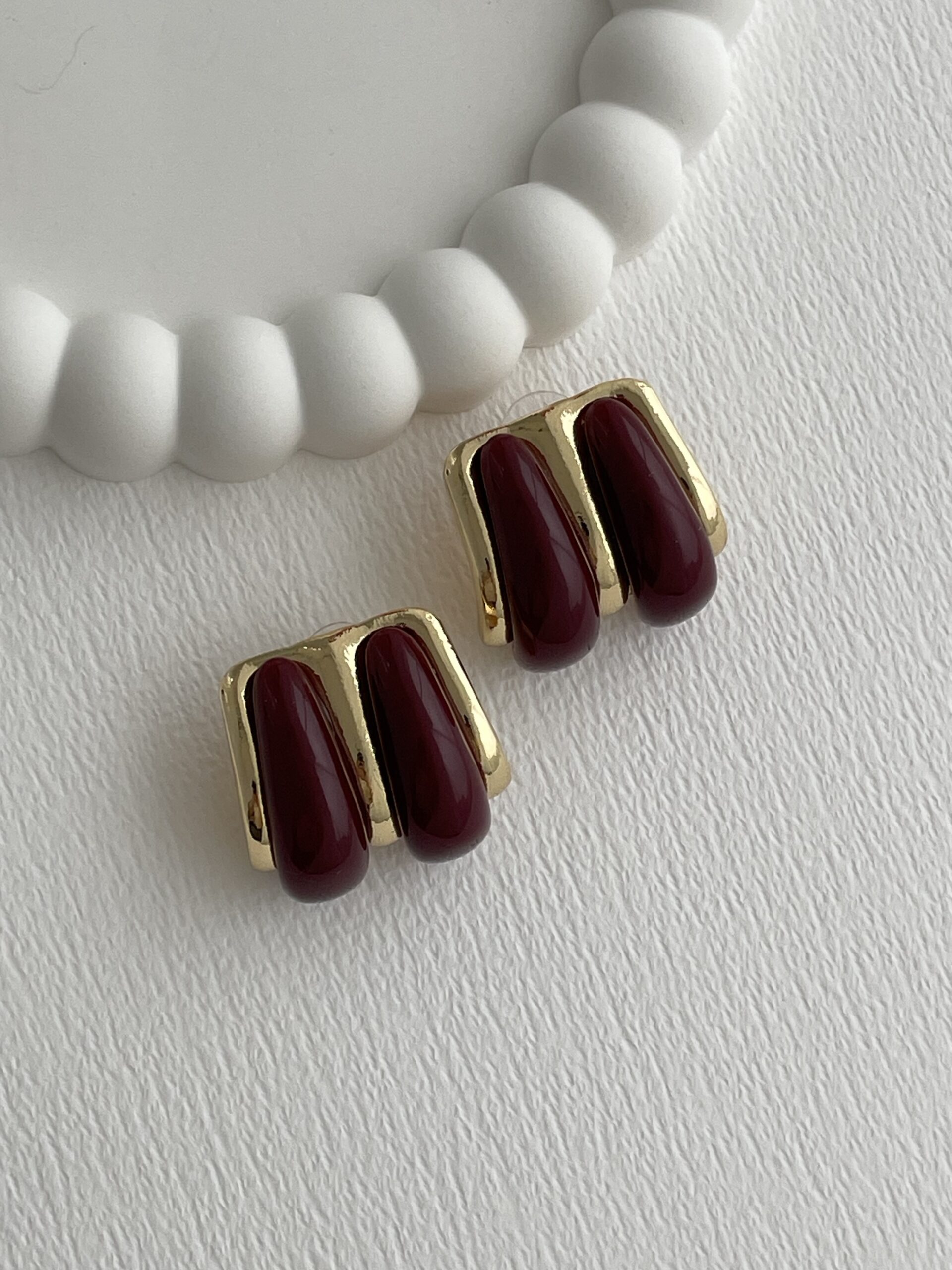 Özel Seri Bordo Kemik Detay Marka Model Gold Küpe
