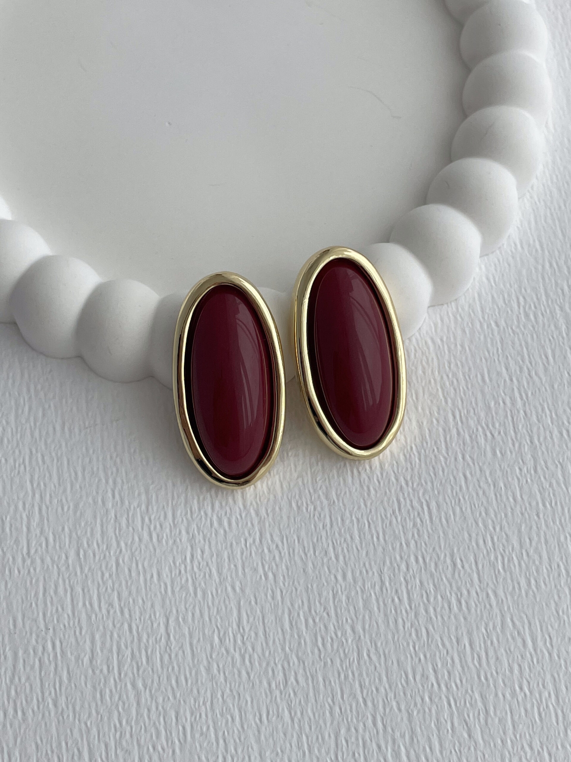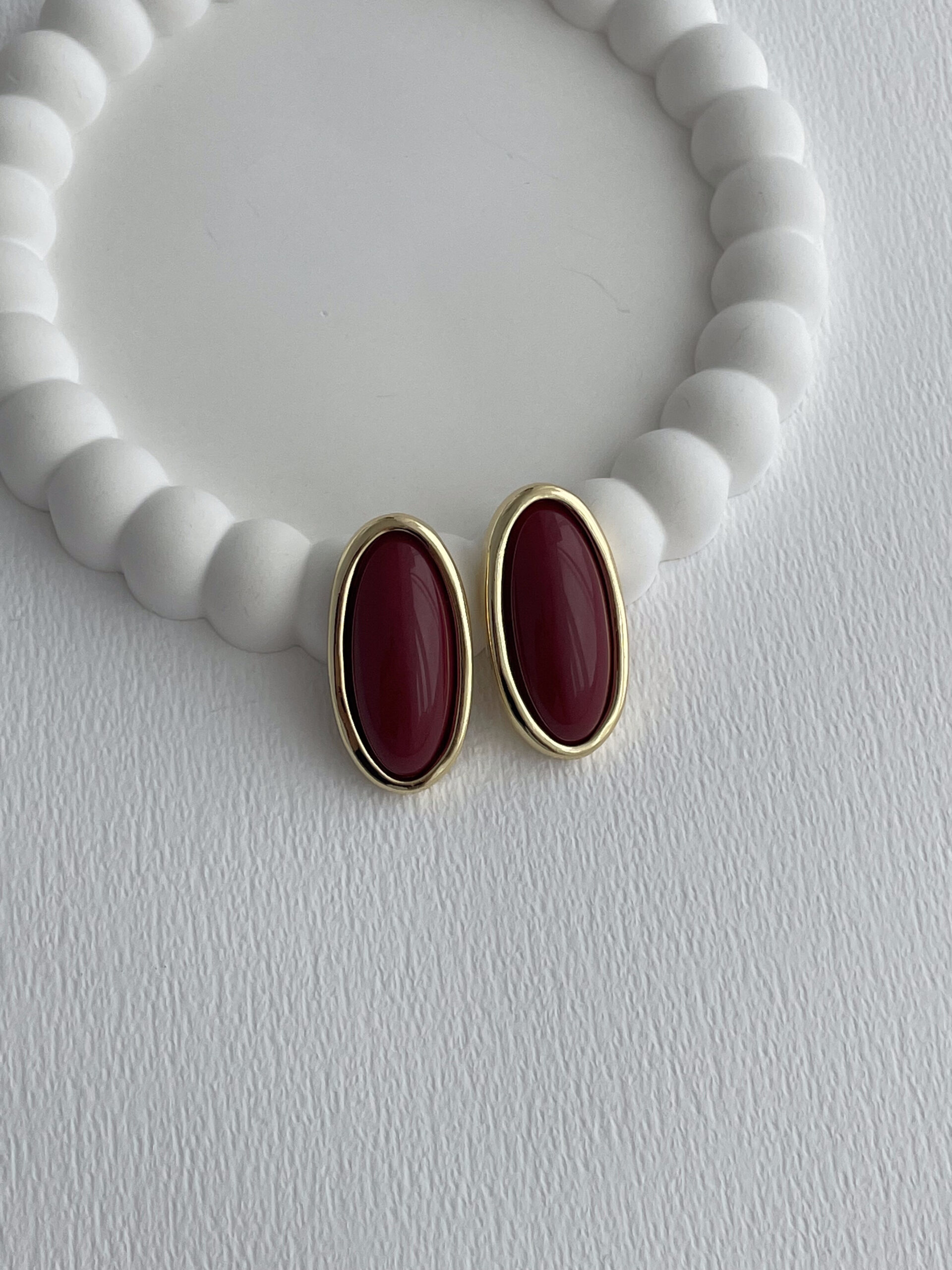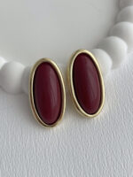 Özel Seri Bordo Kemik Detay Oval Tasarım Gold Küpe
