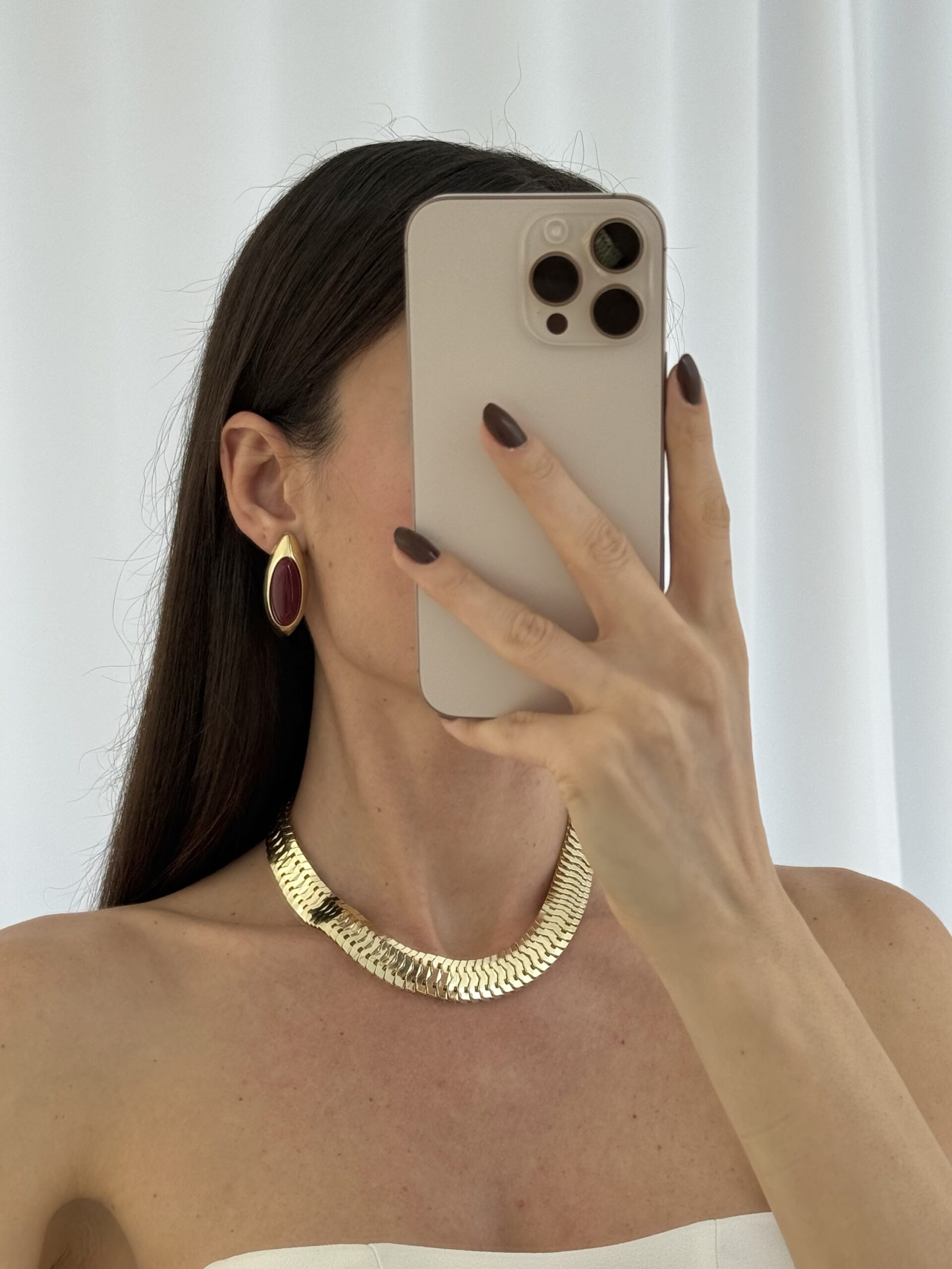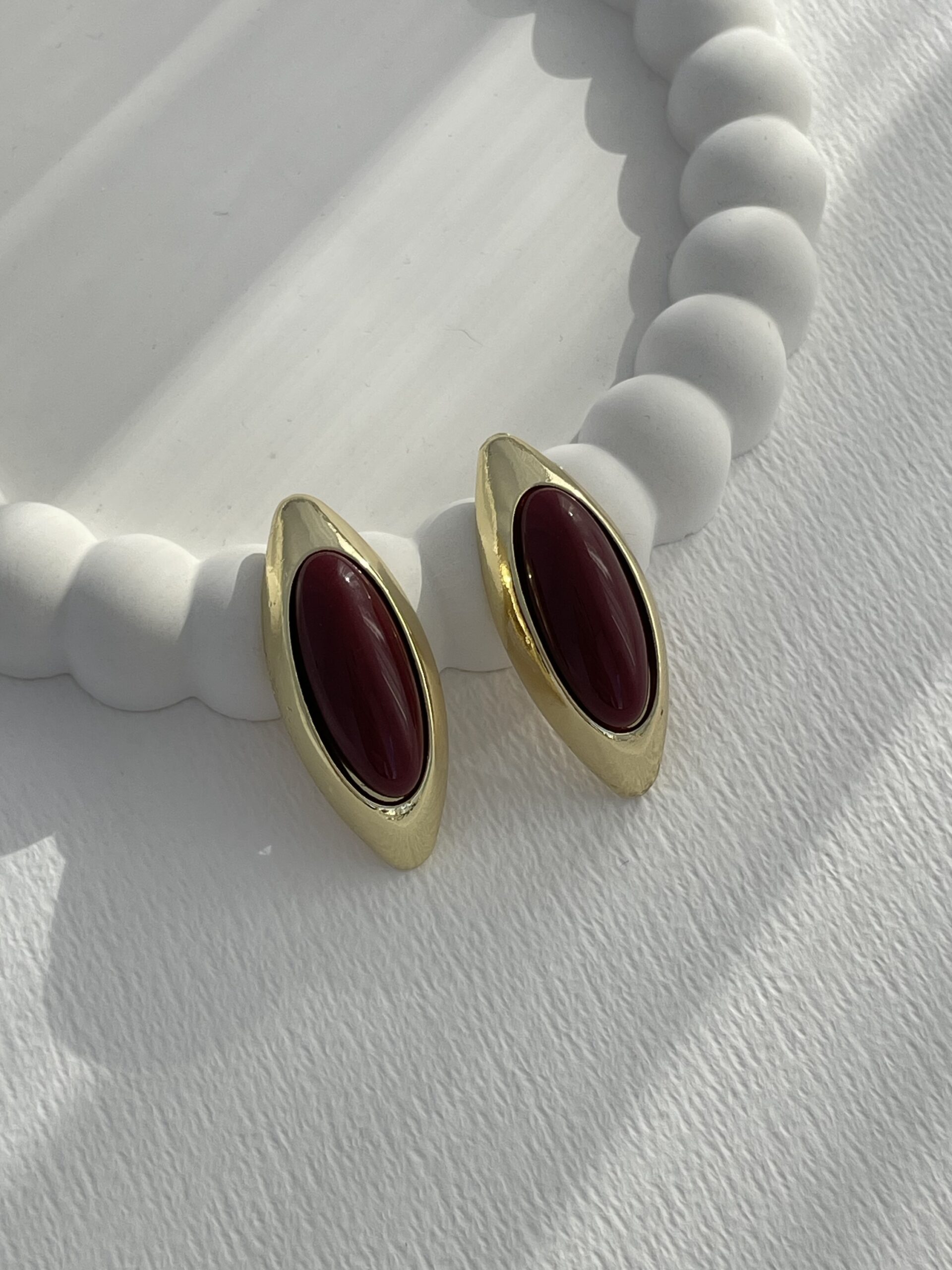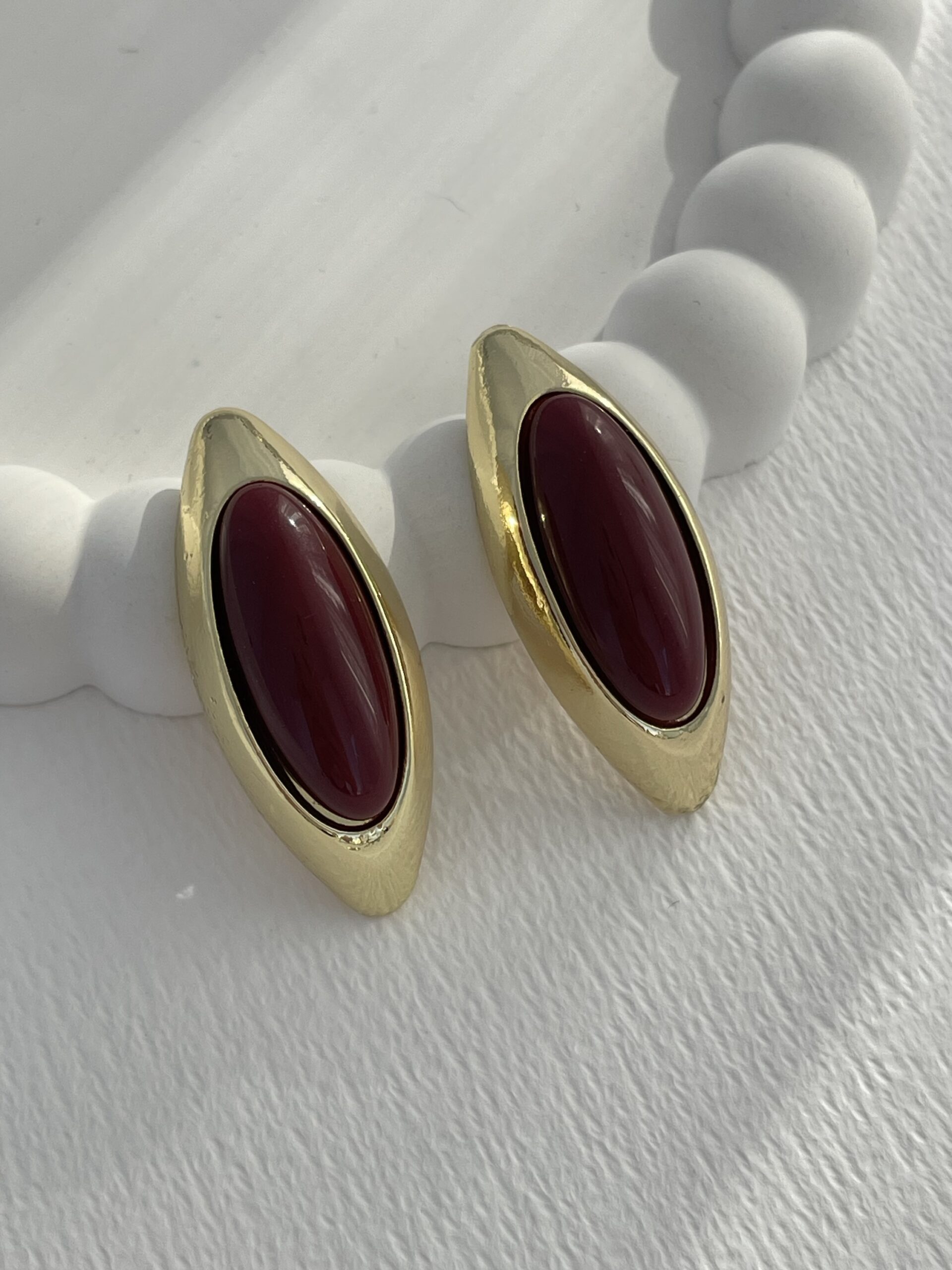 Özel Seri Bordo Kemik Detay Oval Vintage Gold Küpe