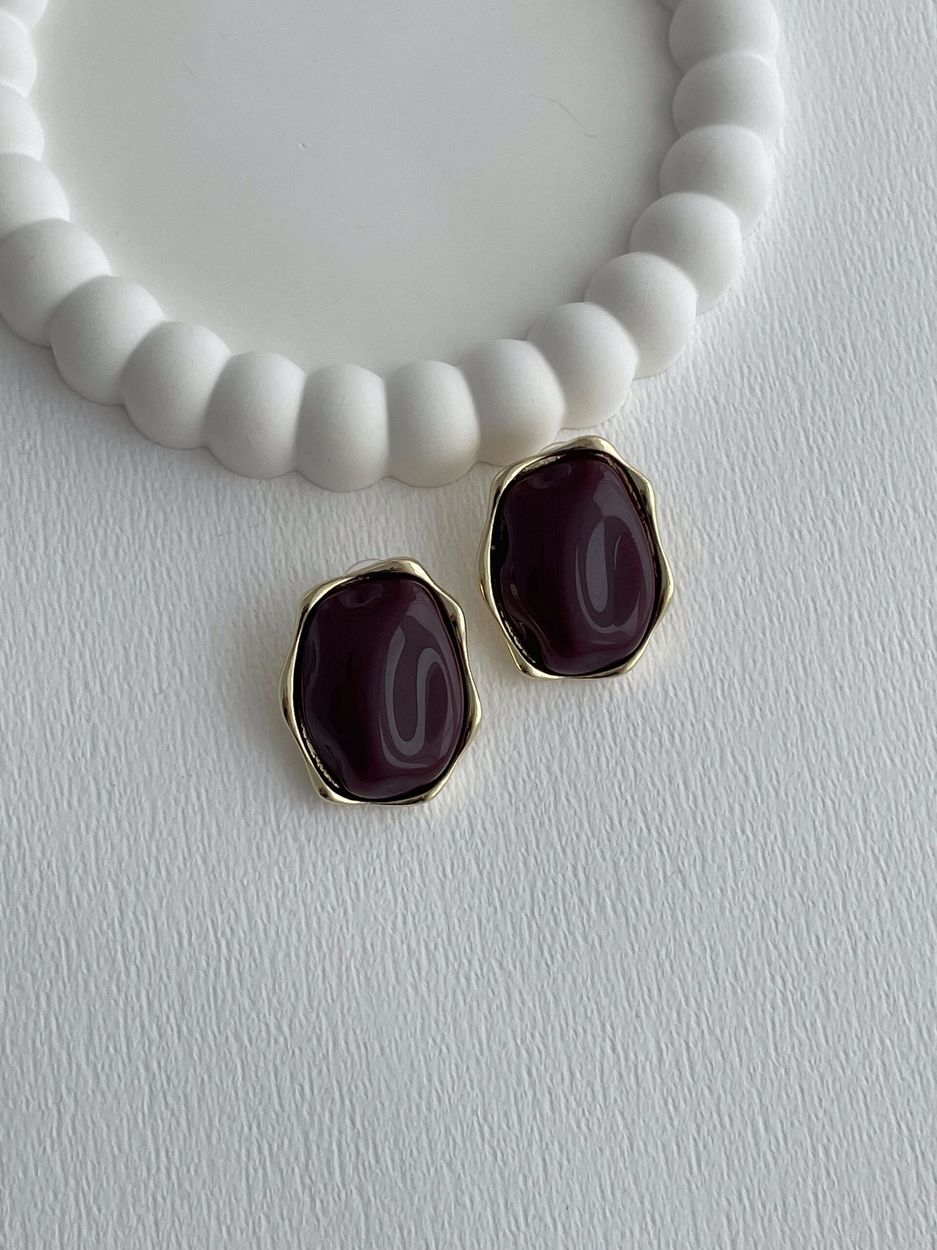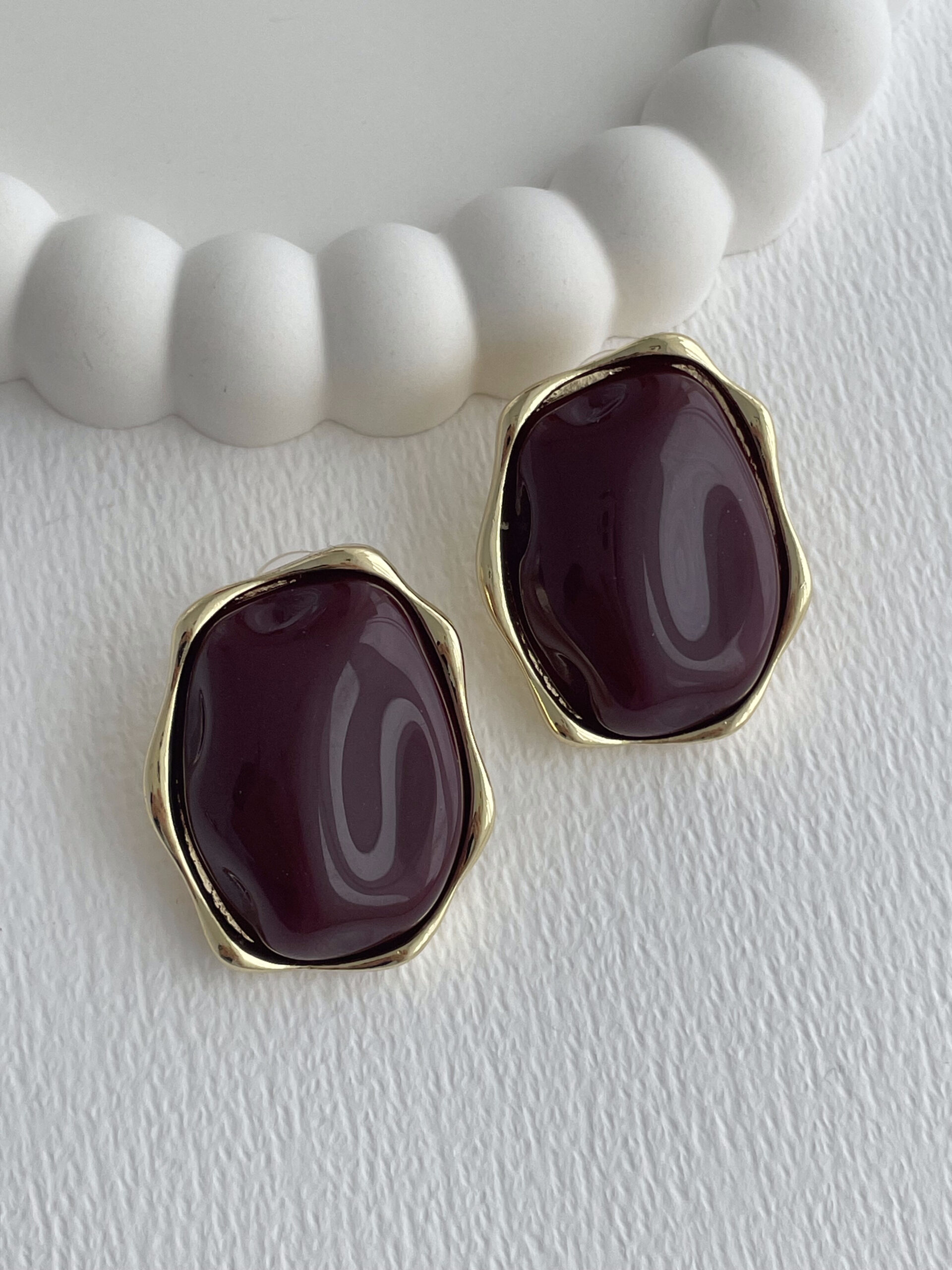 Özel Seri Bordo Kemik Detay Soyut Tasarım Gold Küpe