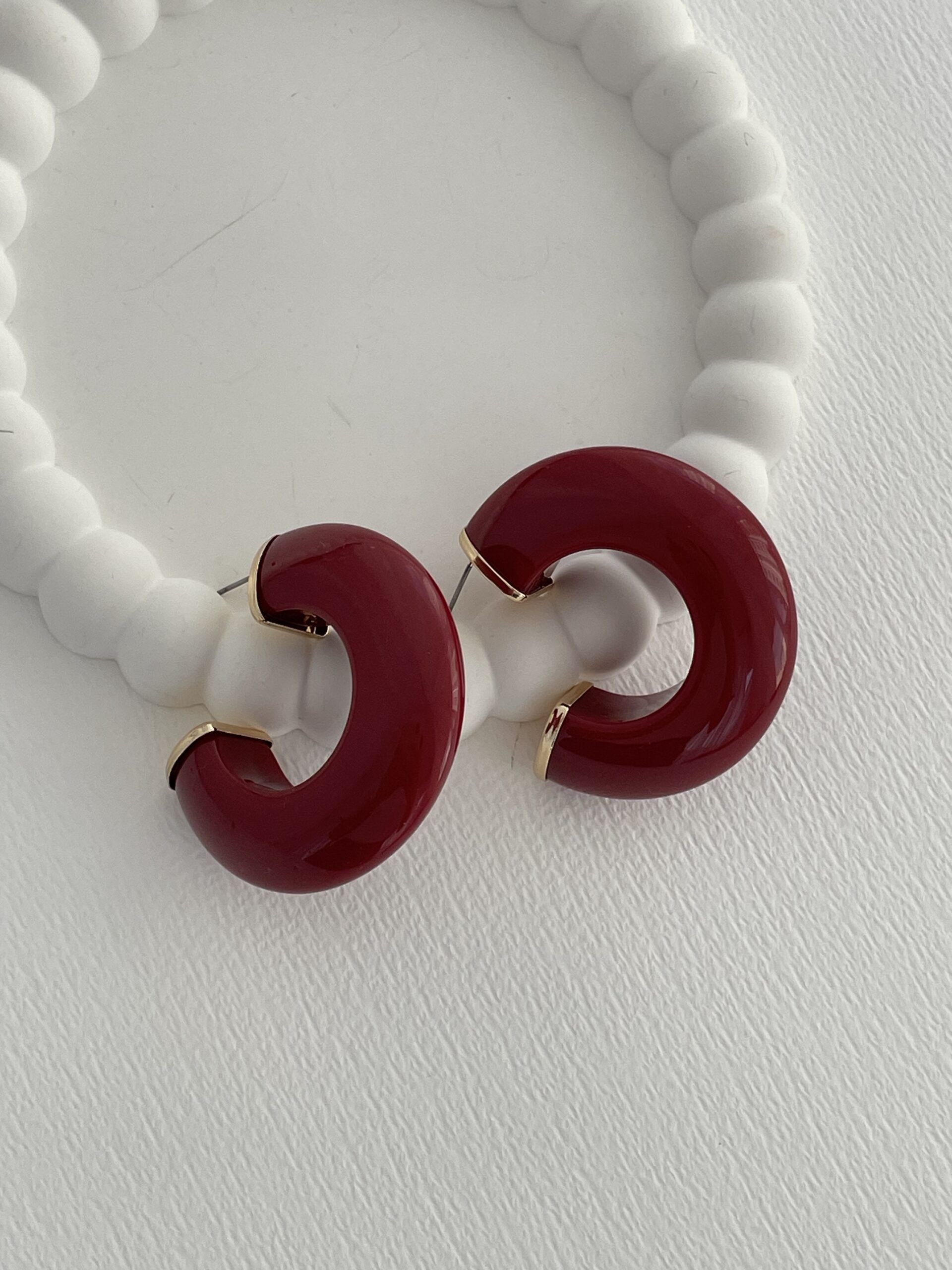 Özel Seri Bordo Kemik Halka Tasarım ZR Model Gold Küpe