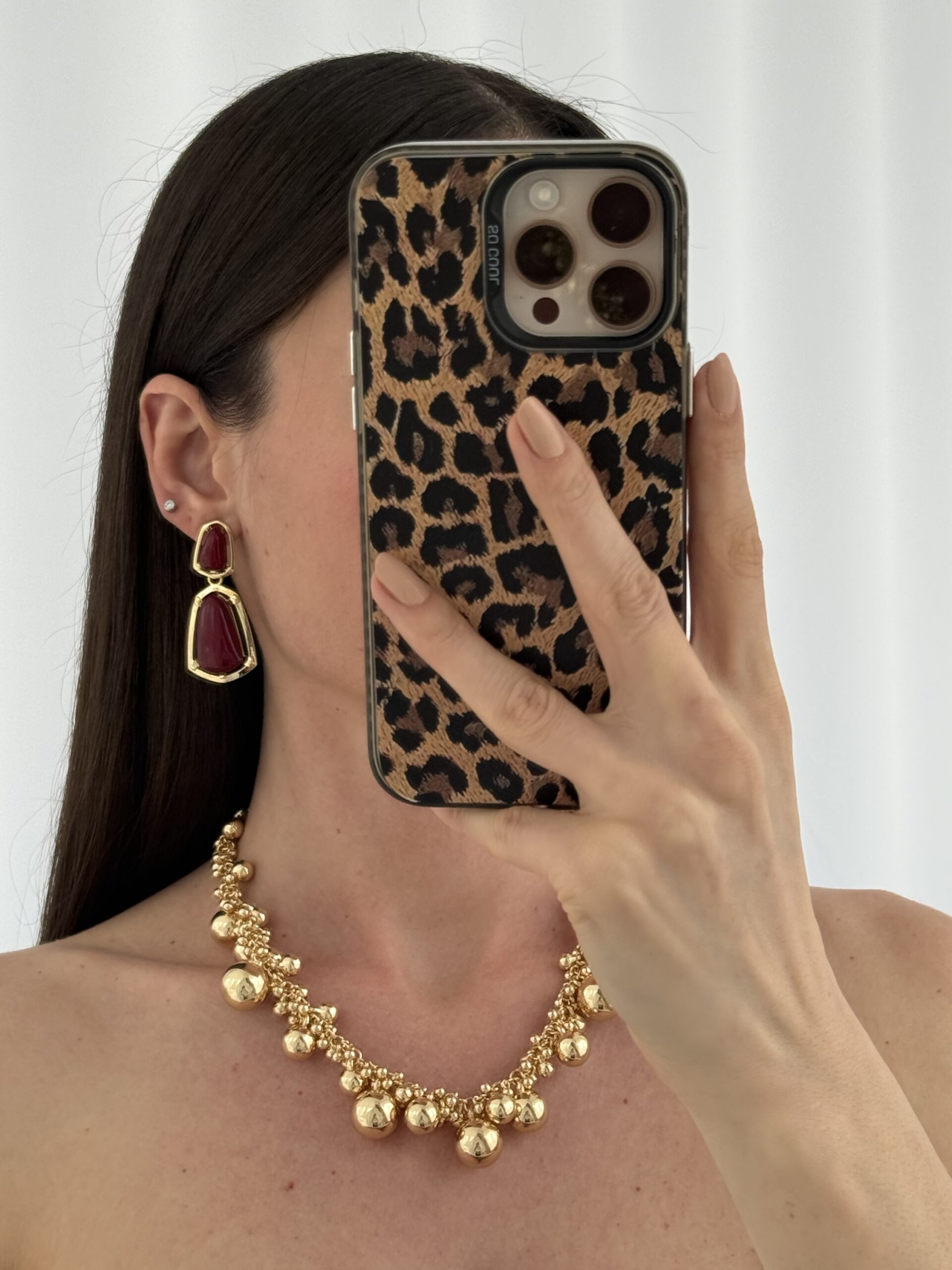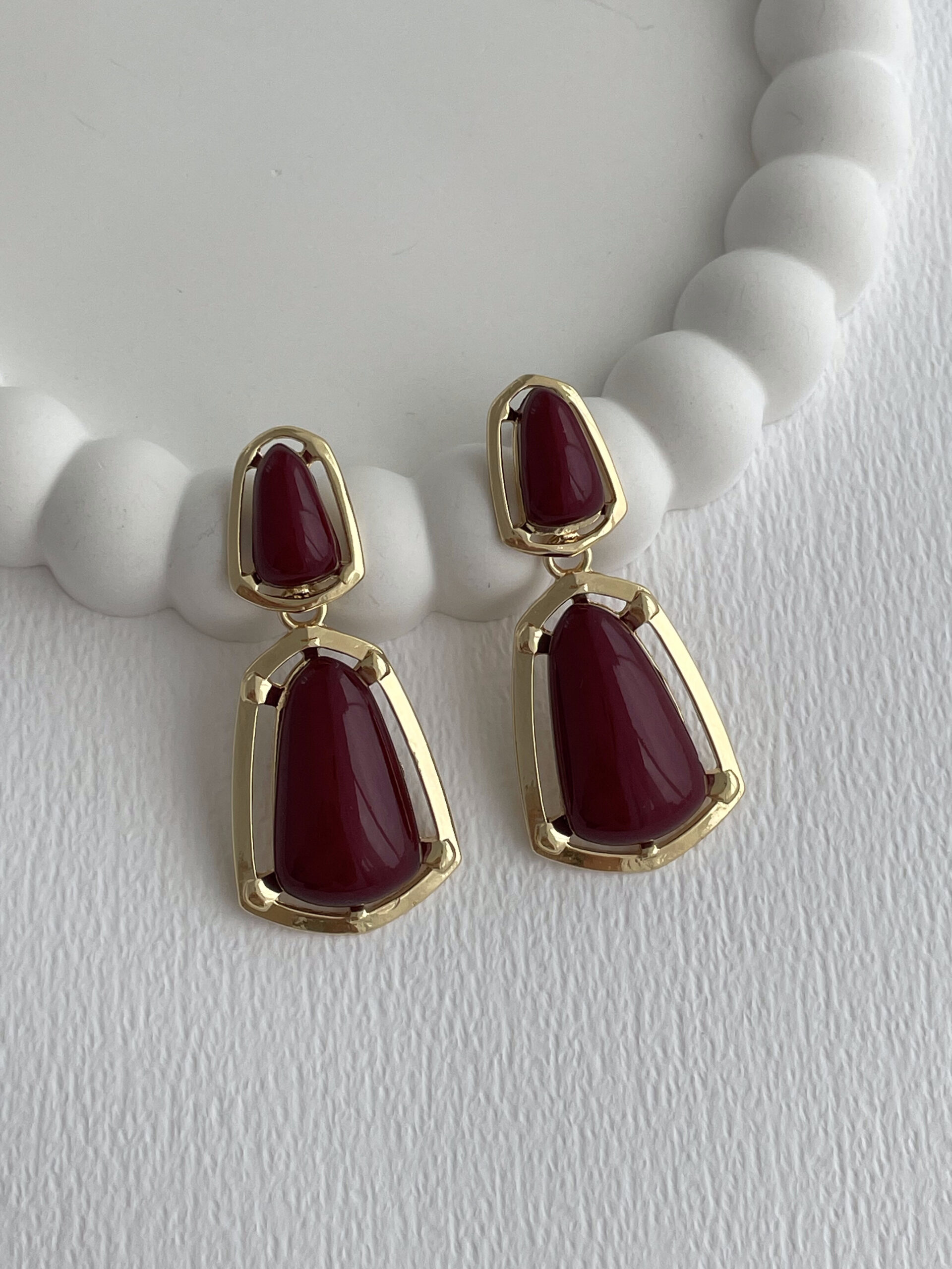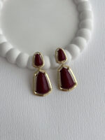 Özel Seri Bordo Kemik İkili Geometrik Tasarım Gold Küpe
