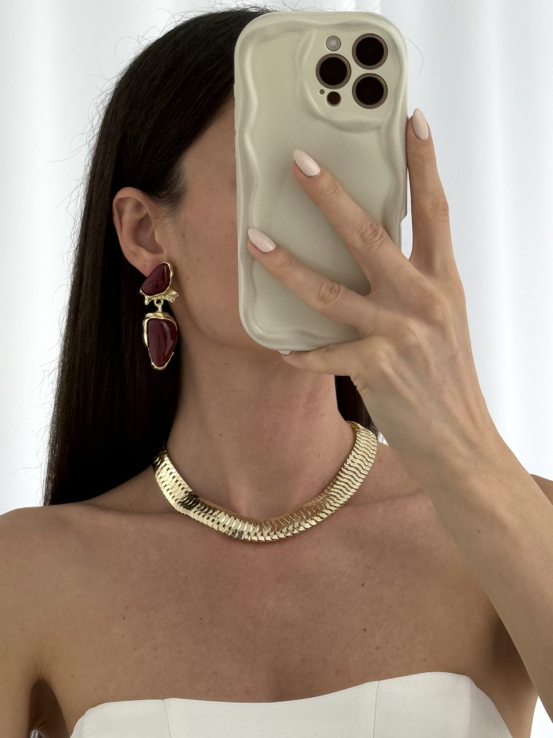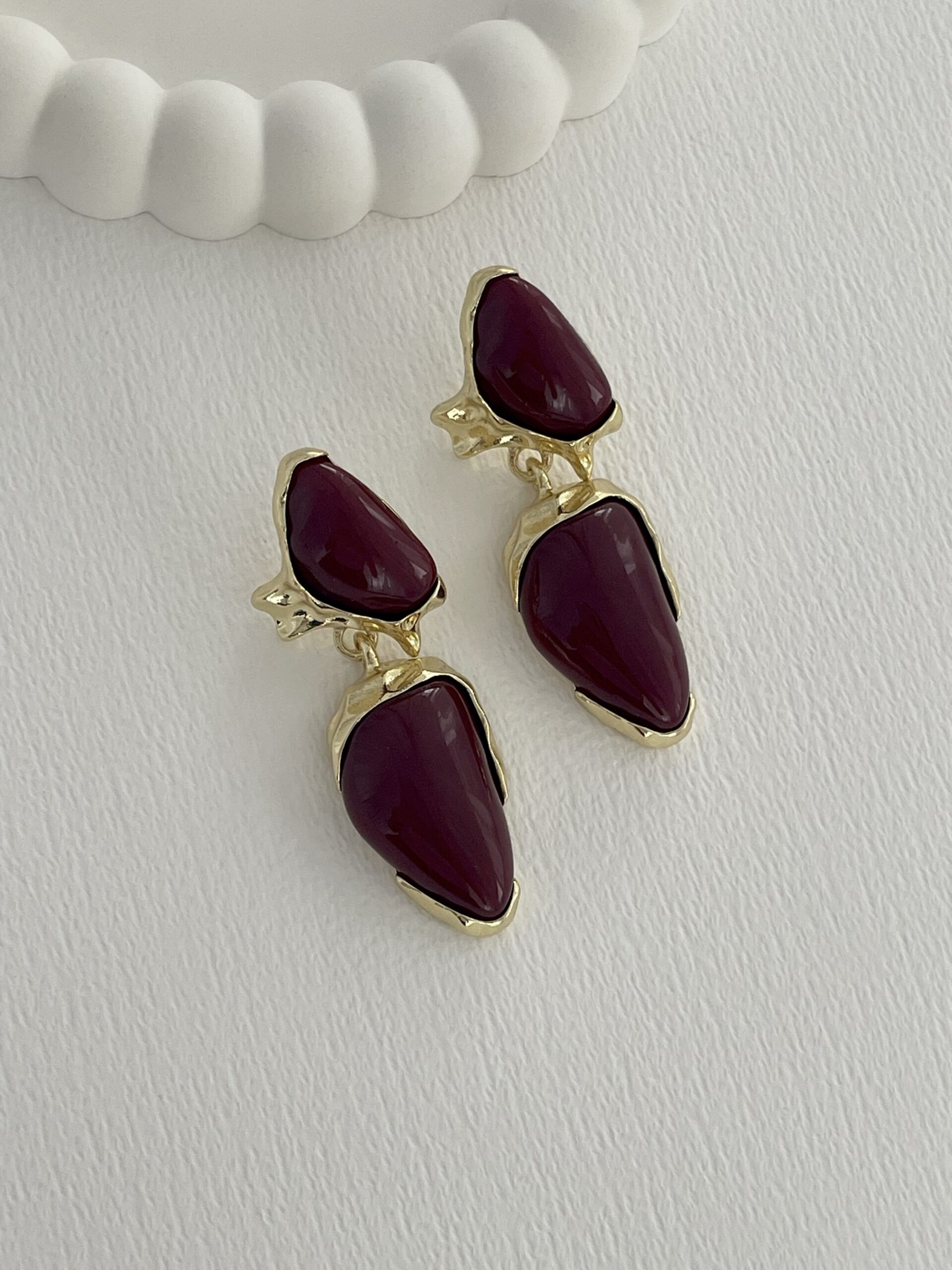 Özel Seri Bordo Kemik Marka Model Gold Küpe