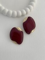 Özel Seri Bordo Kemik Oval Soyut Tasarım Gold Küpe