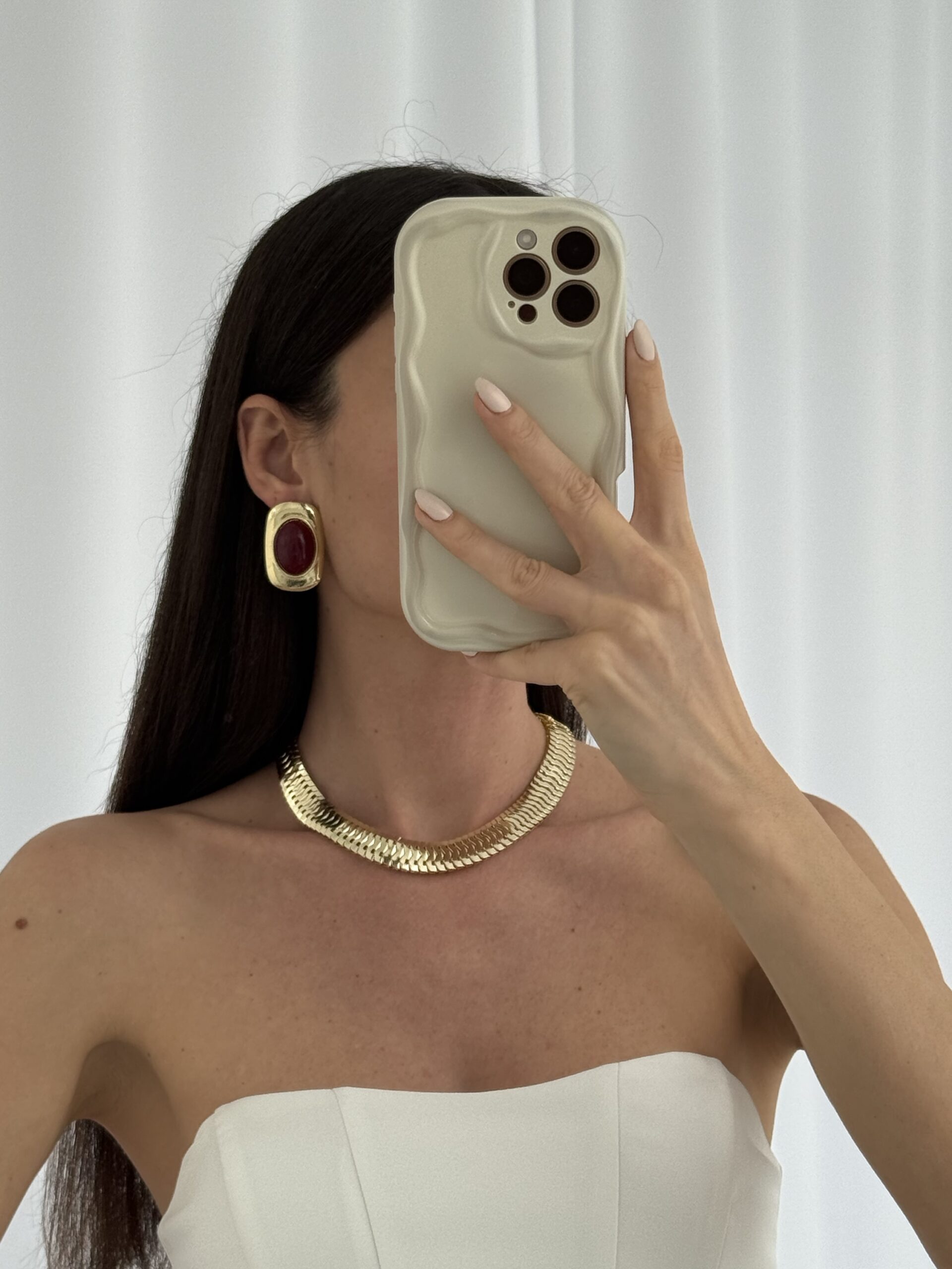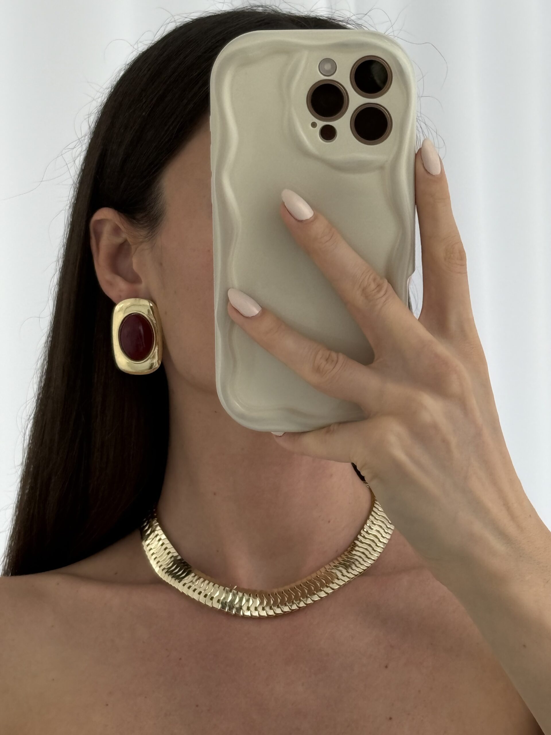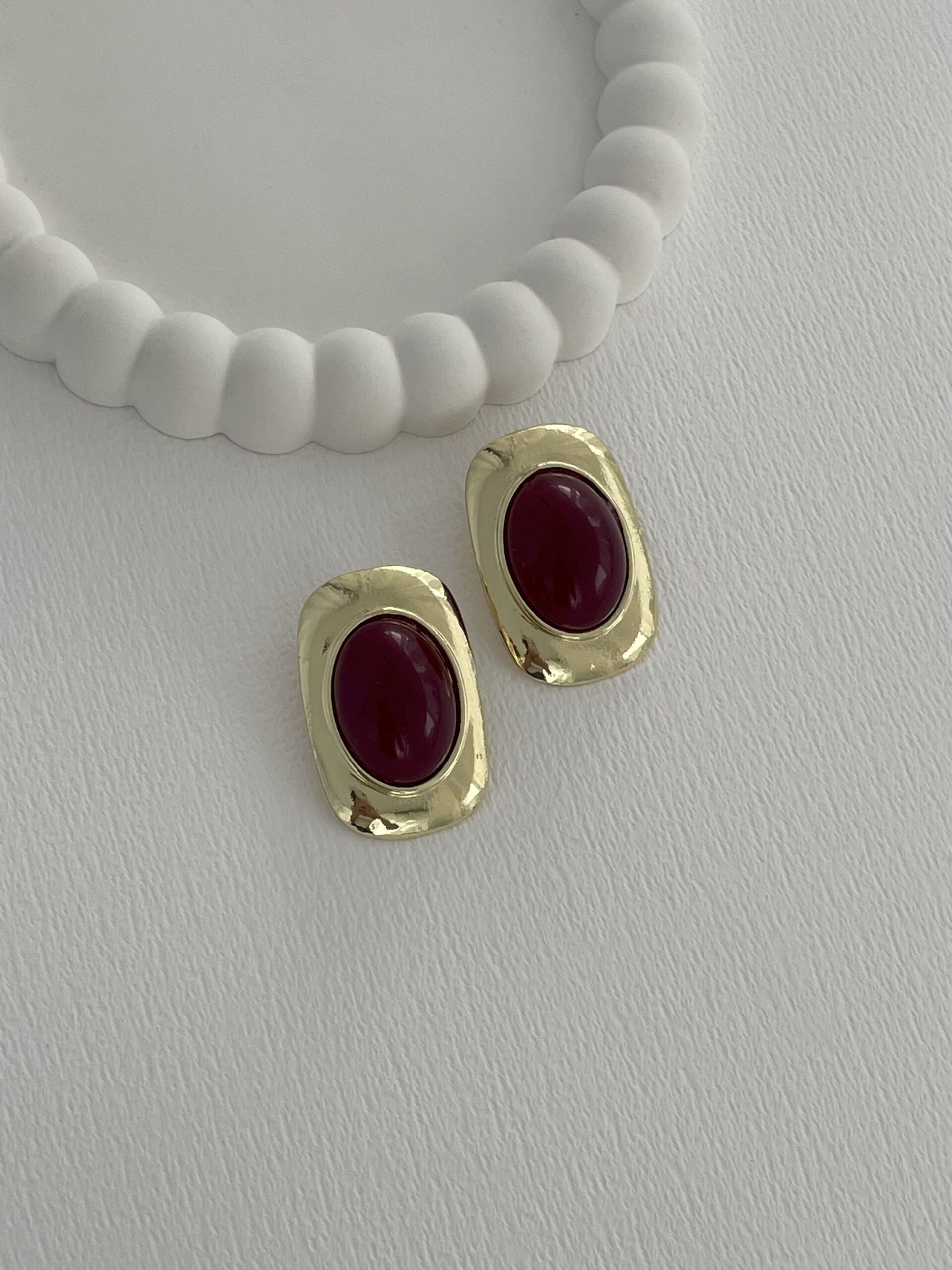 Özel Seri Bordo Kemik Oval Tasarım Gold Küpe