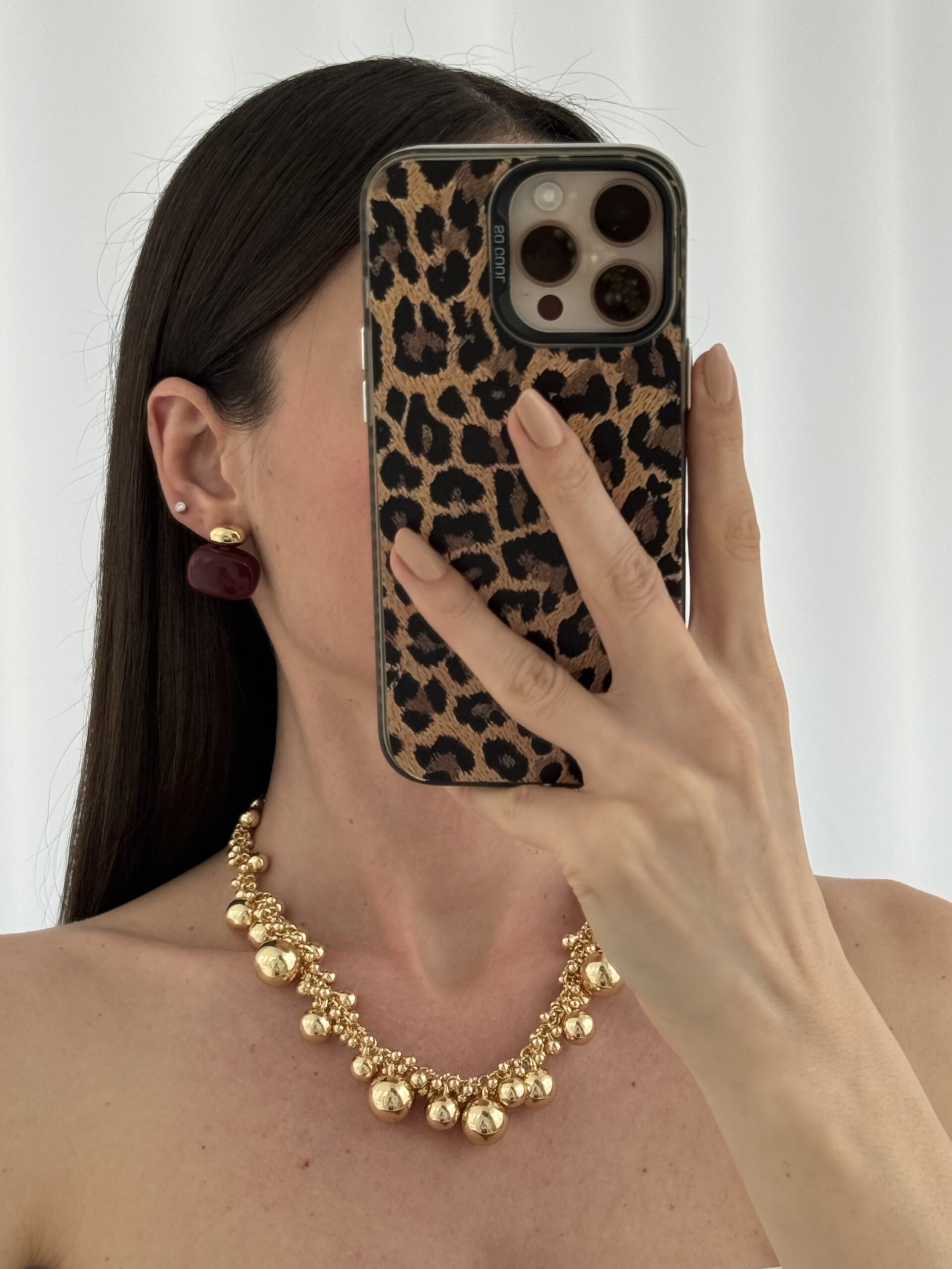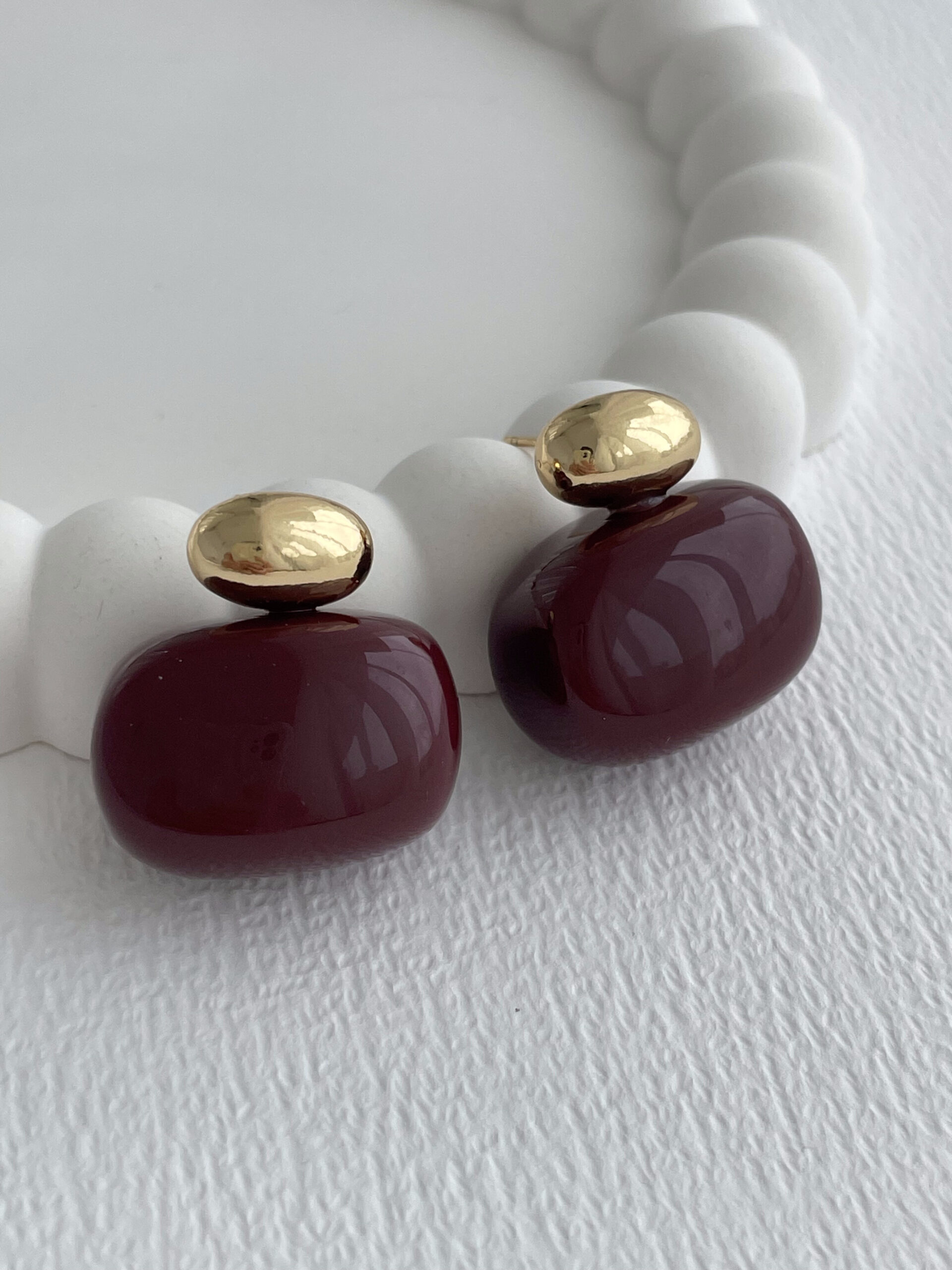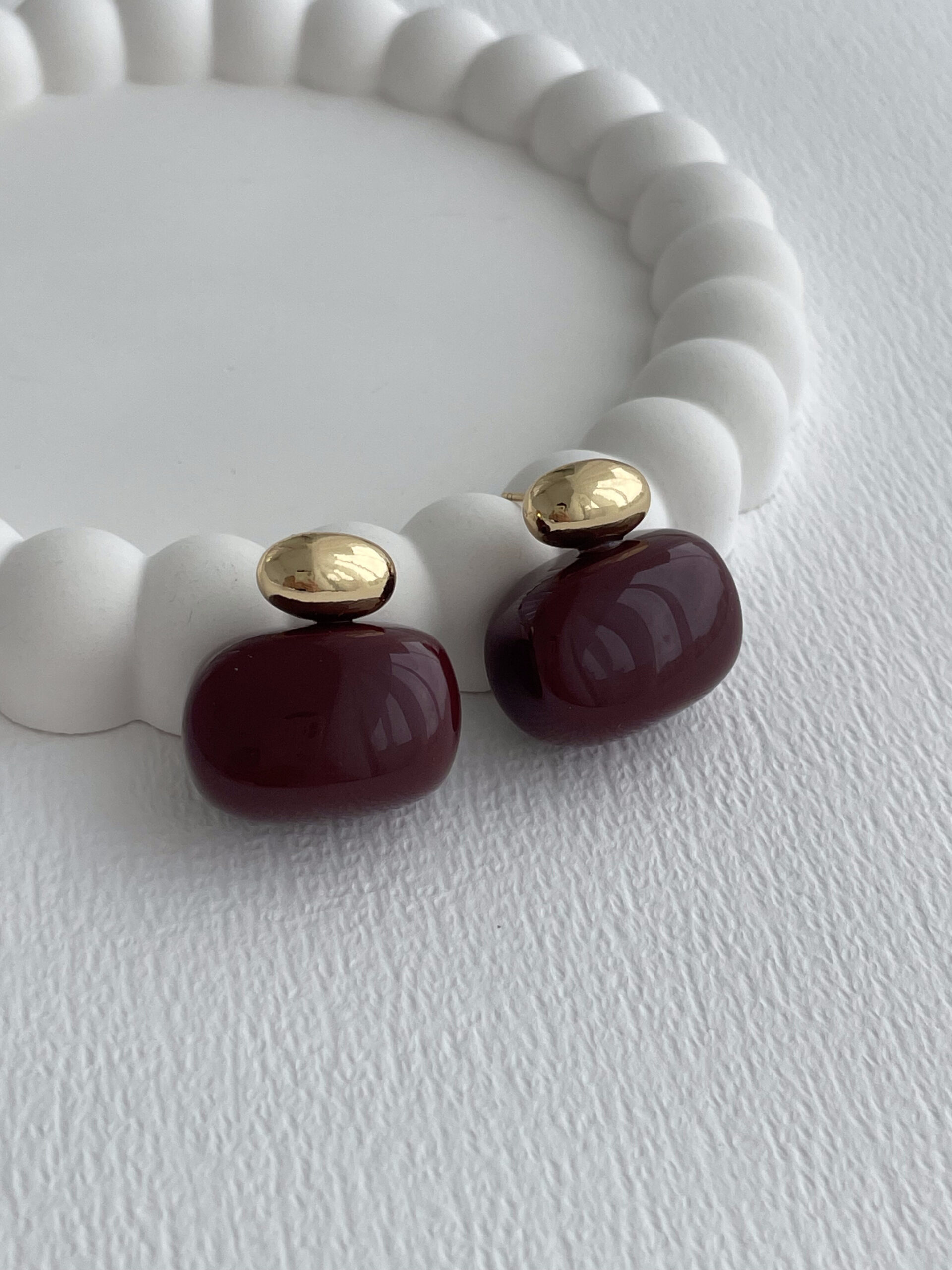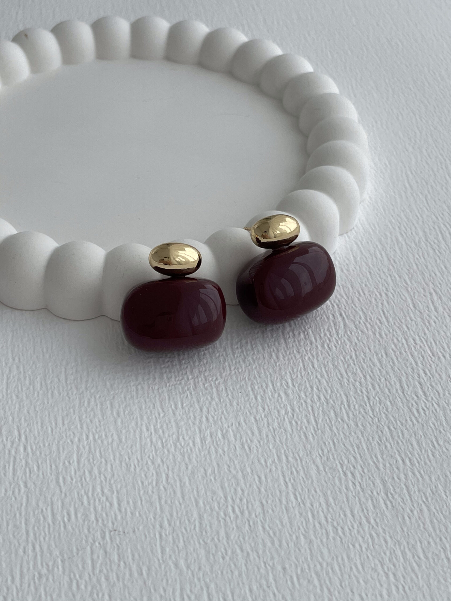 Özel Seri Bordo Kemik Top Detay Gold Küpe