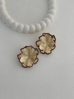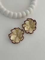 Özel Seri Bordo Mineli Çiçek Tasarım Gold Küpe