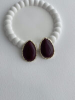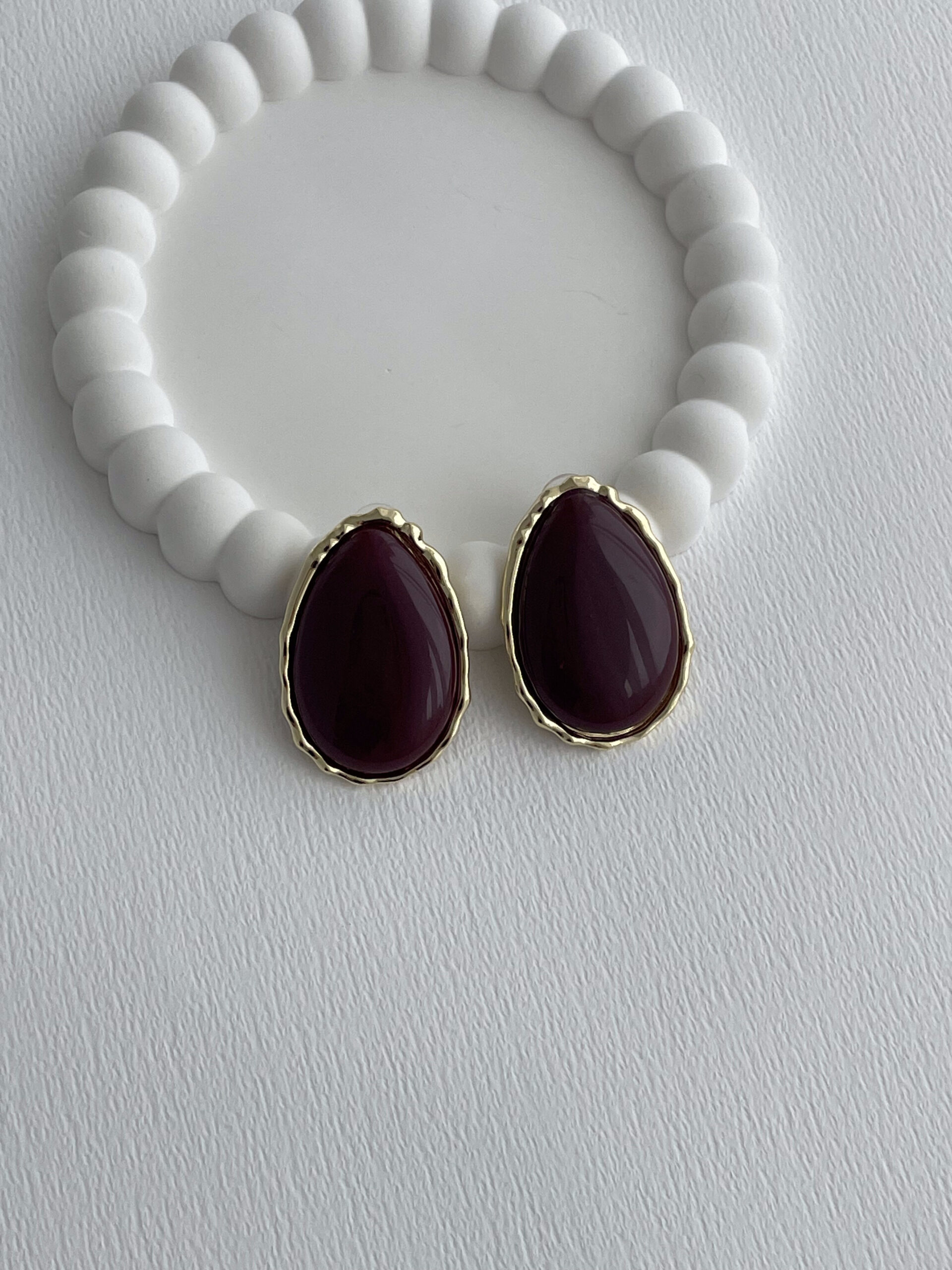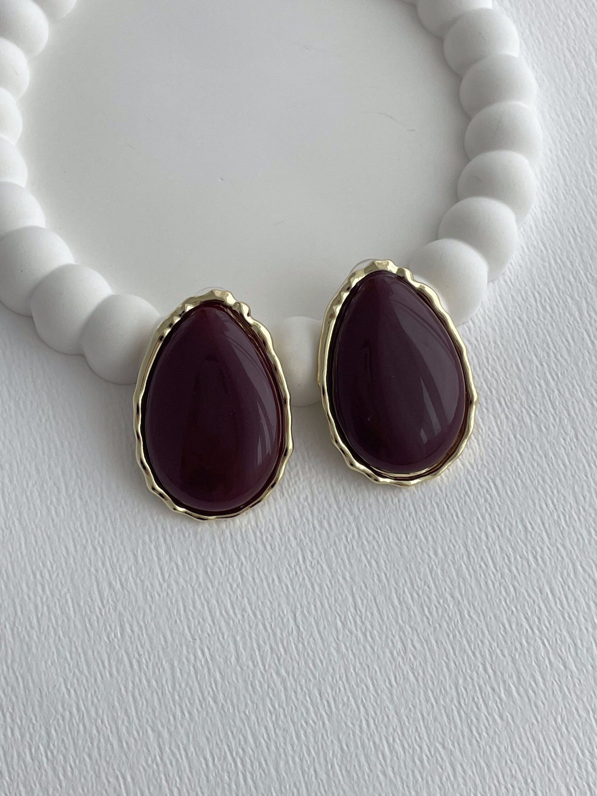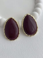 Özel Seri Bordo Mineli Damla Tasarım Gold Küpe