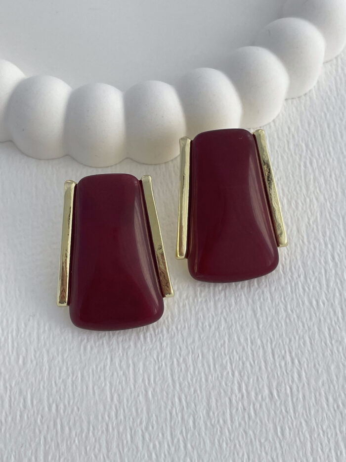 Özel Seri Bordo Mineli Geometrik Tasarım Gold Küpe