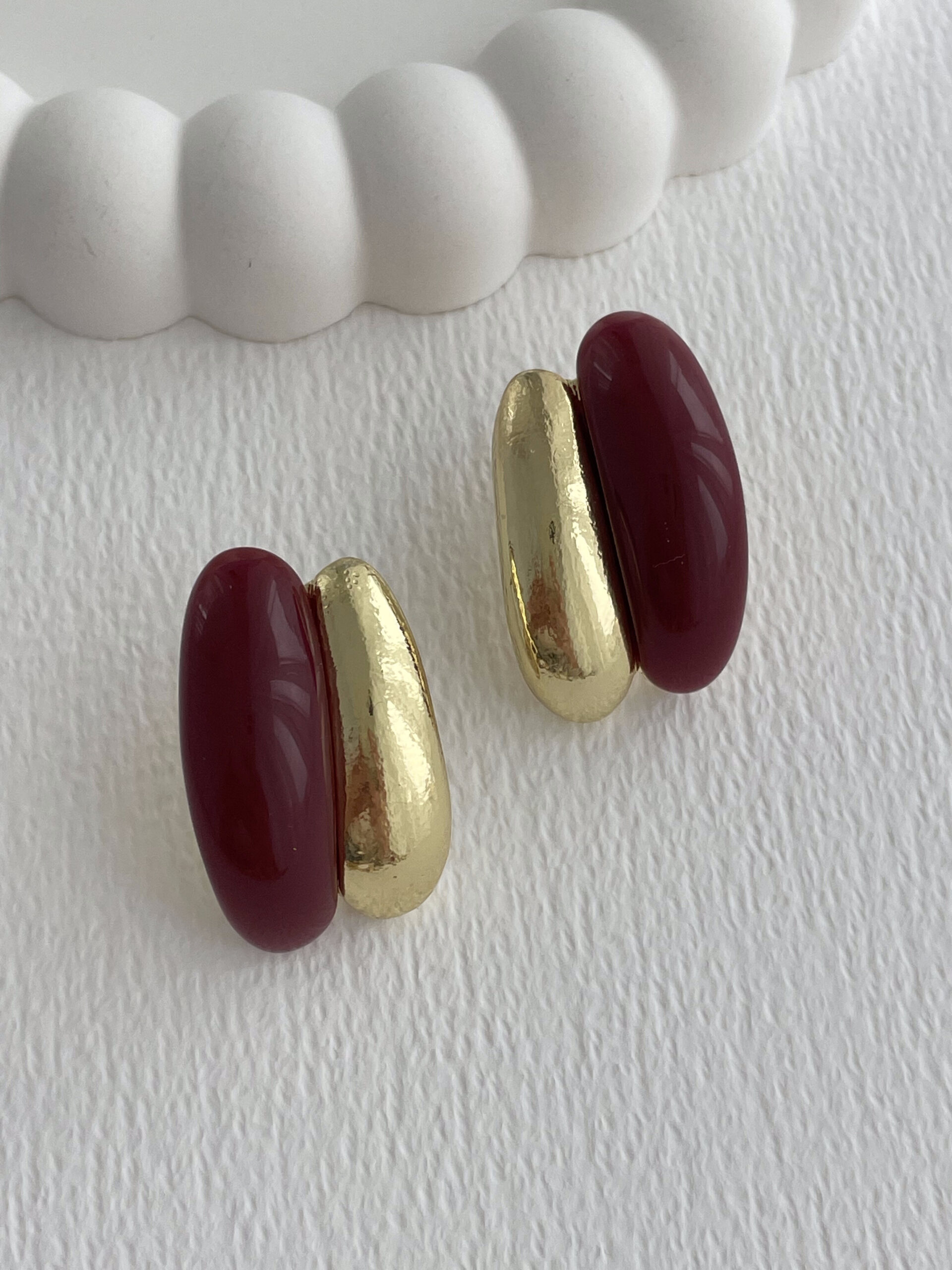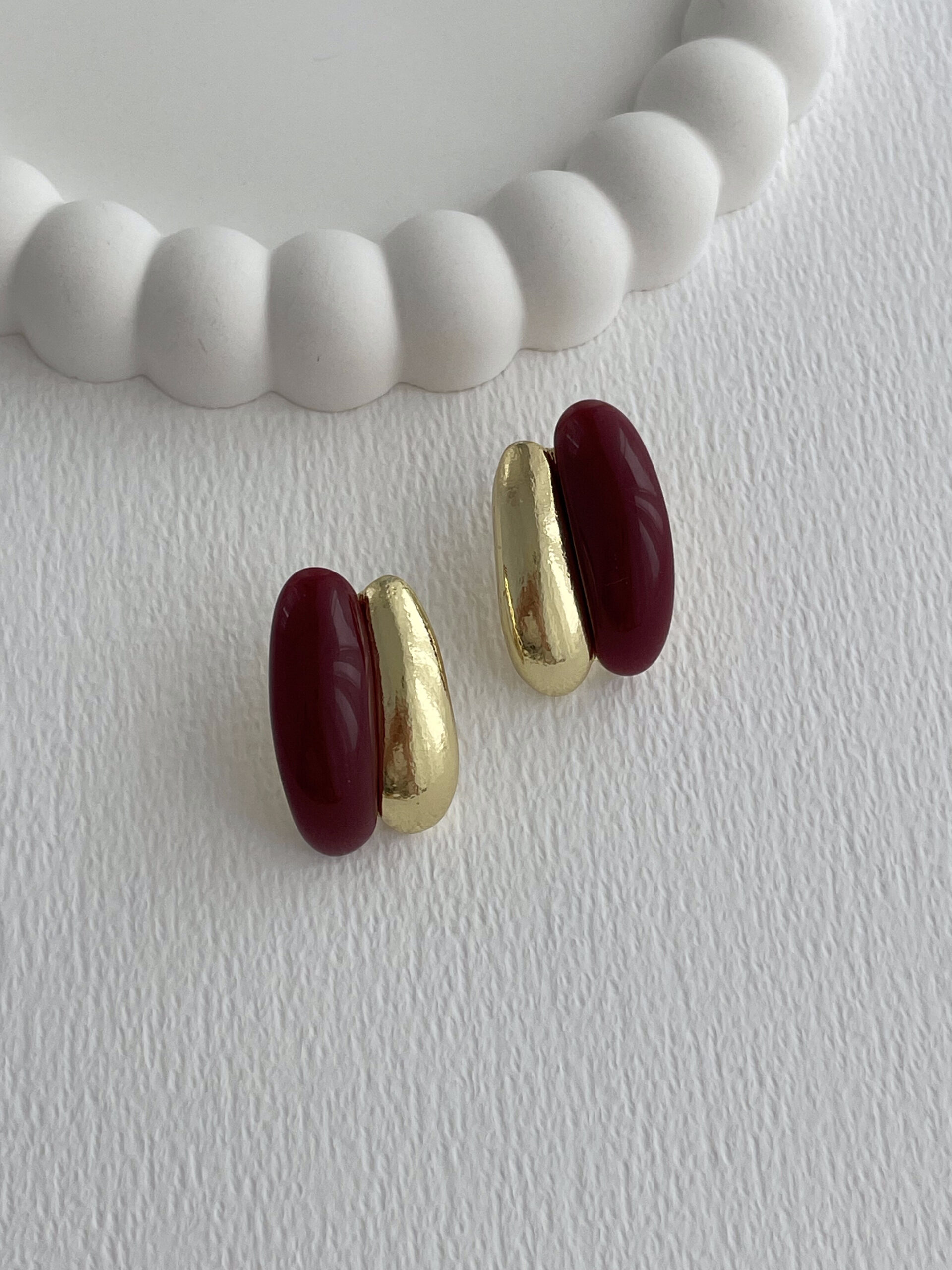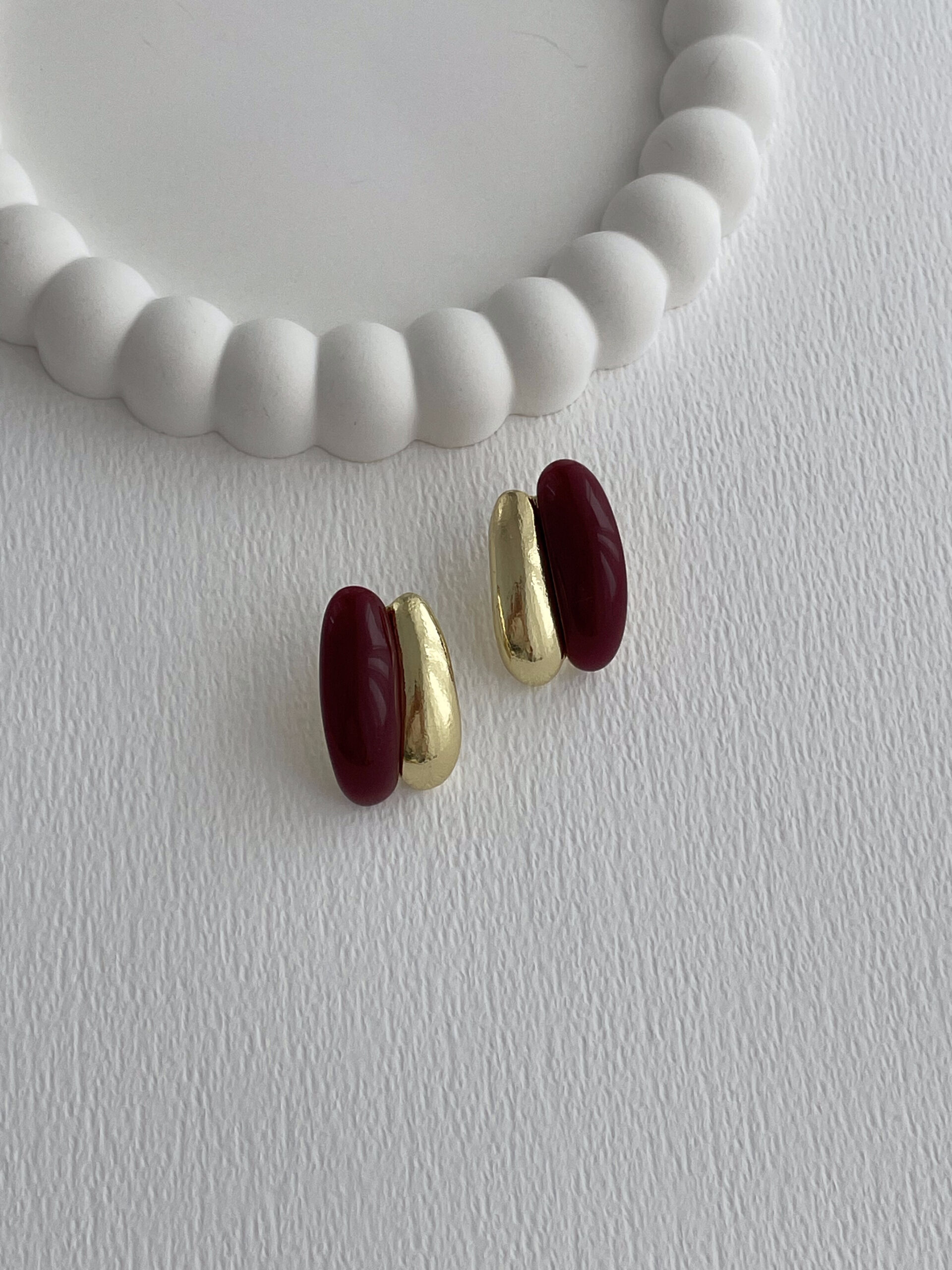 Özel Seri Bordo Mineli İkili Damla Tasarım Gold Küpe