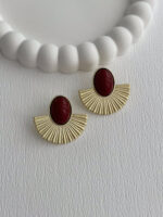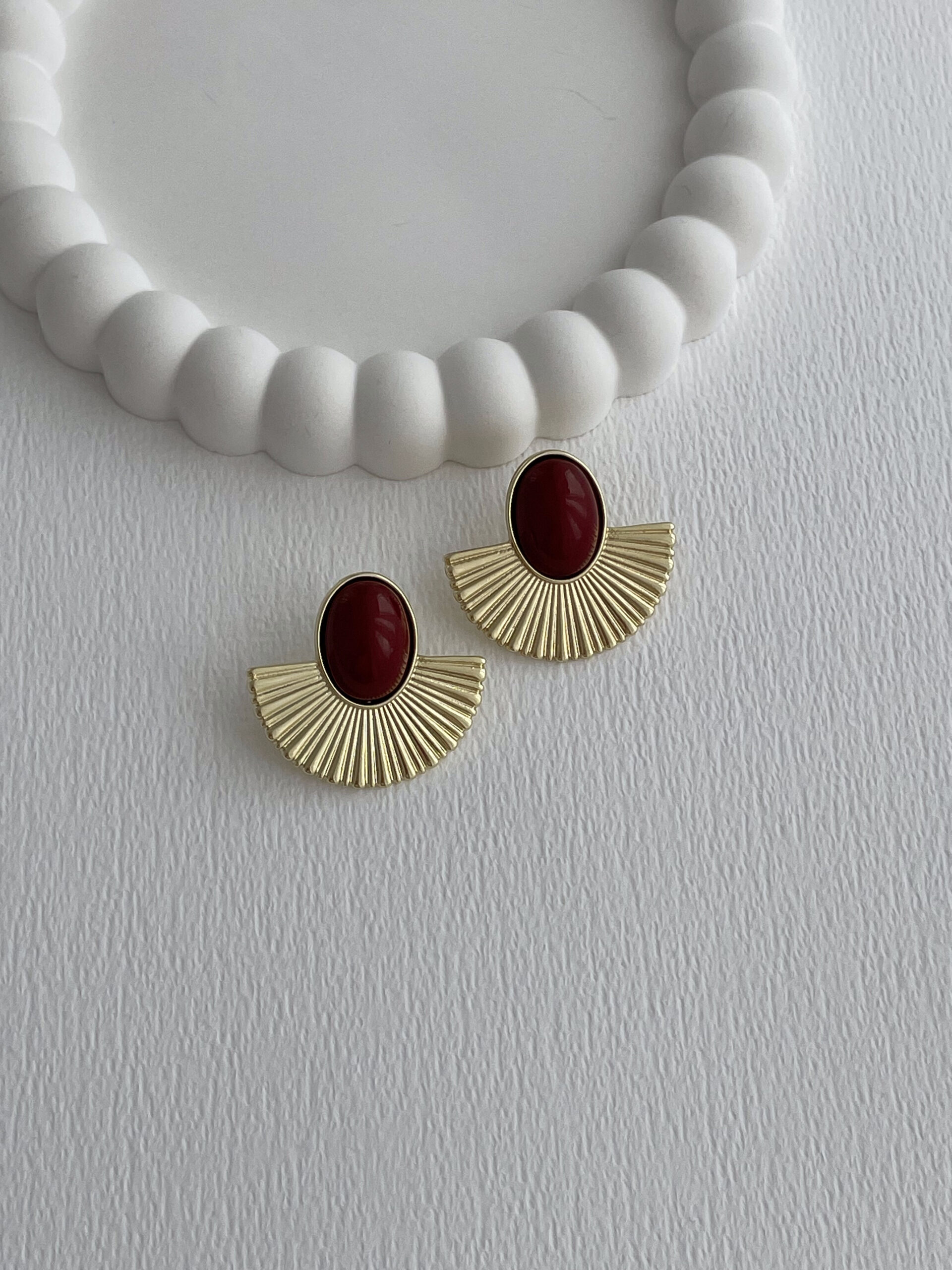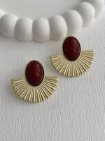 Özel Seri Bordo Mineli Yelpaze Tasarım Gold Küpe