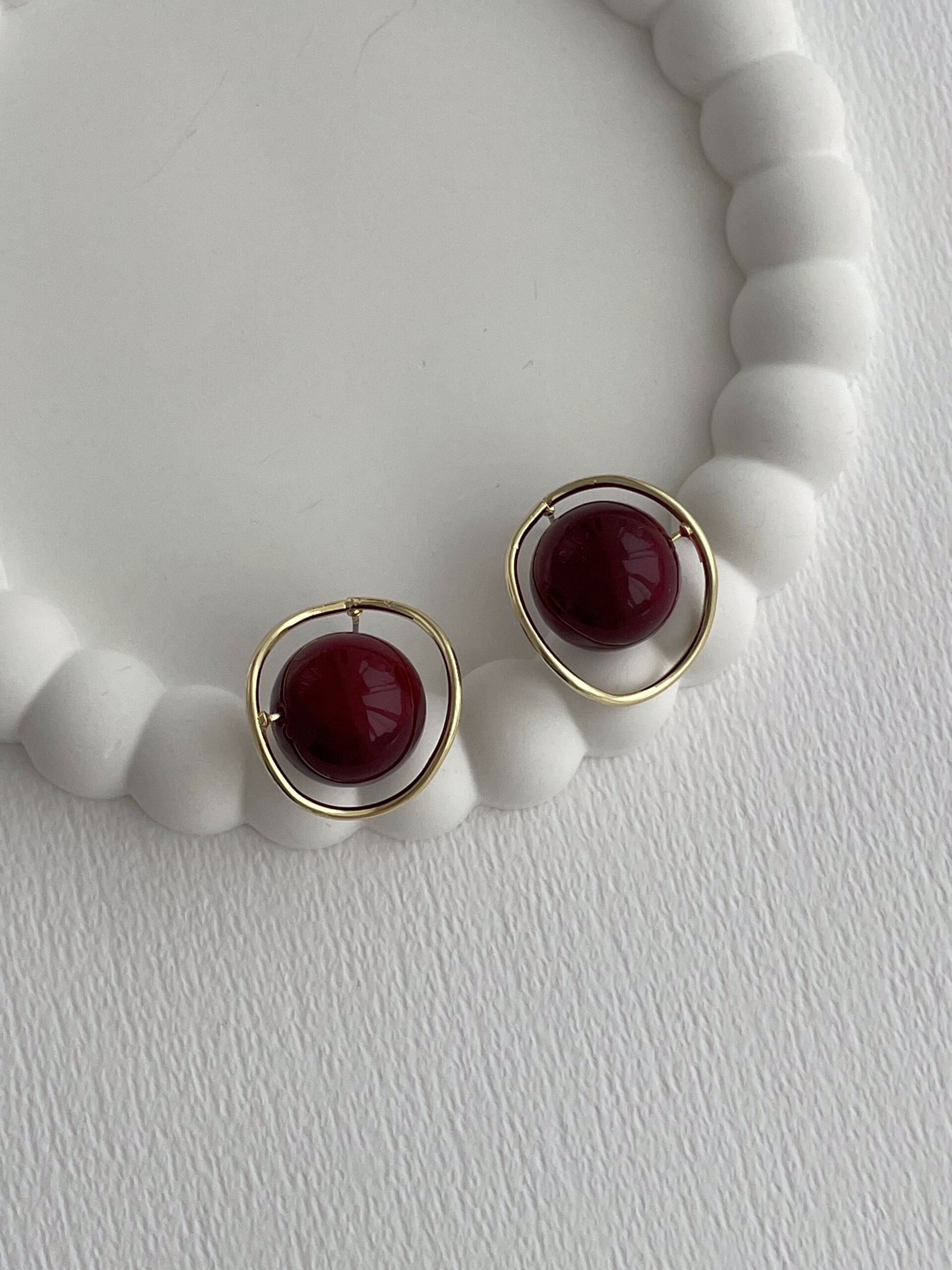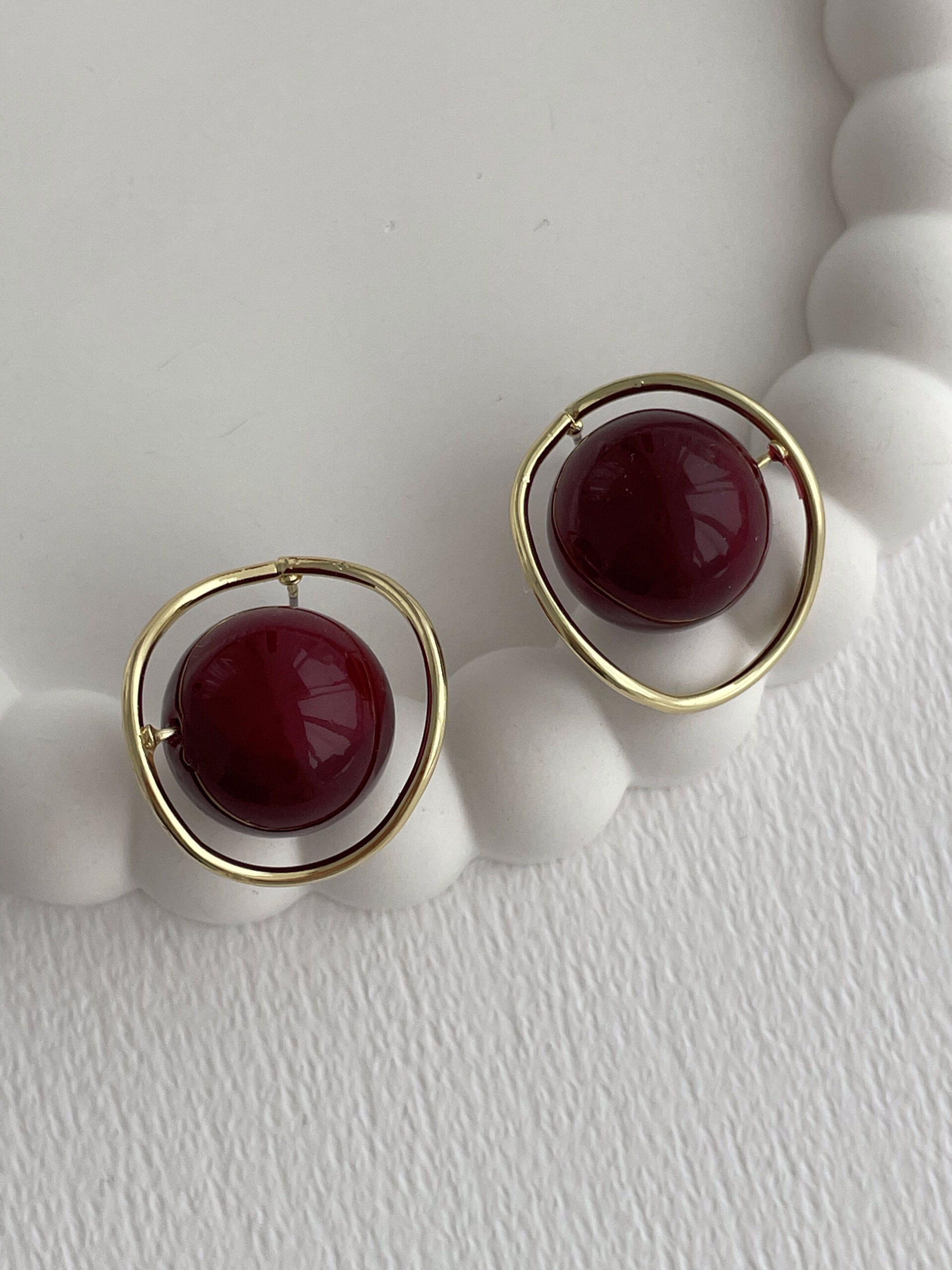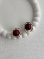Özel Seri Bordo Top Detay Gold Çerçeveli Küpe