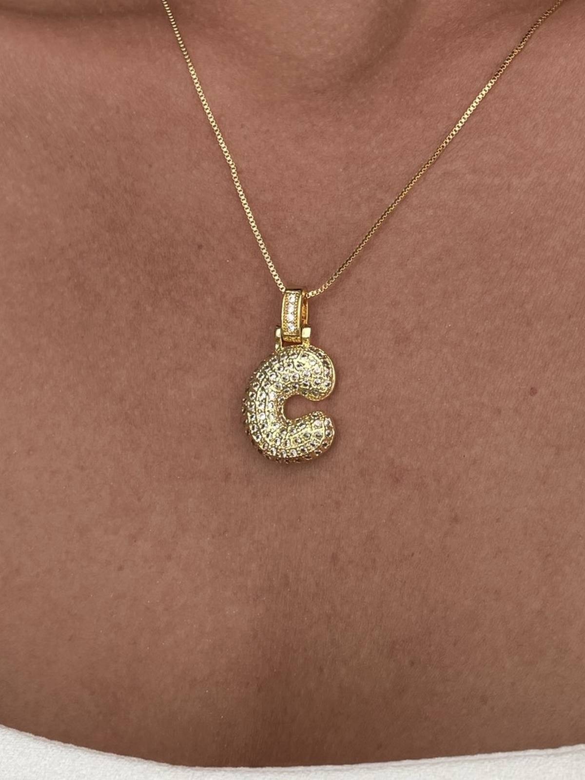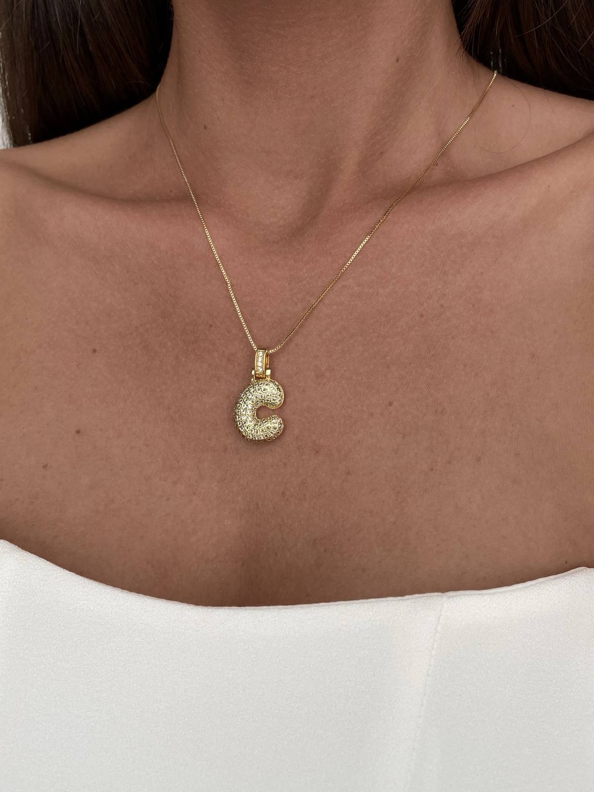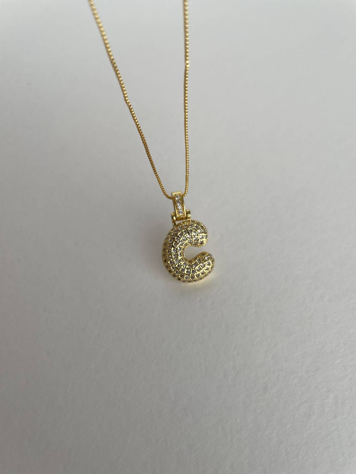 Özel Seri Bubble Zirkon Taşlı C Harfli Kolye