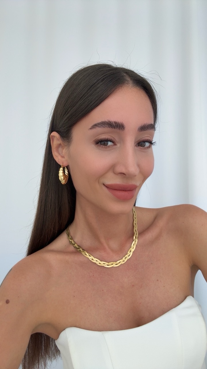 Özel Seri Burgu Oval Tasarım Gold Halka Küpe