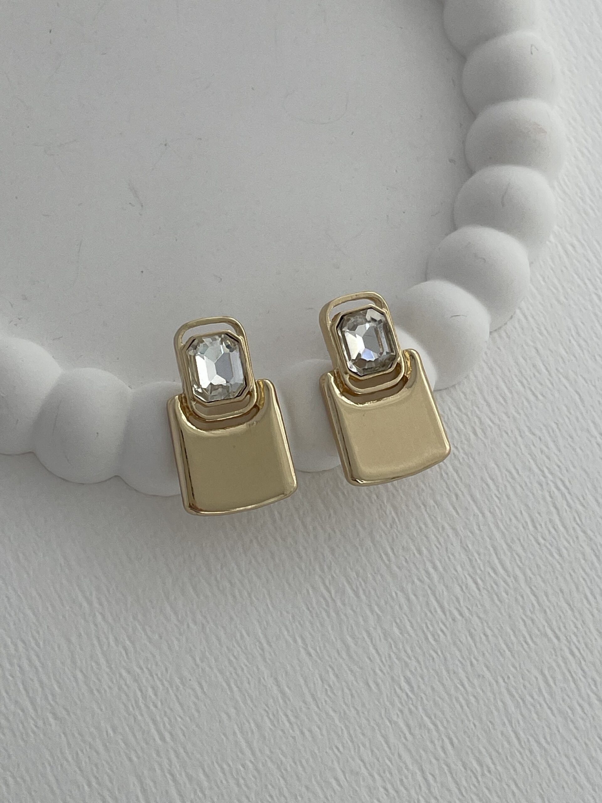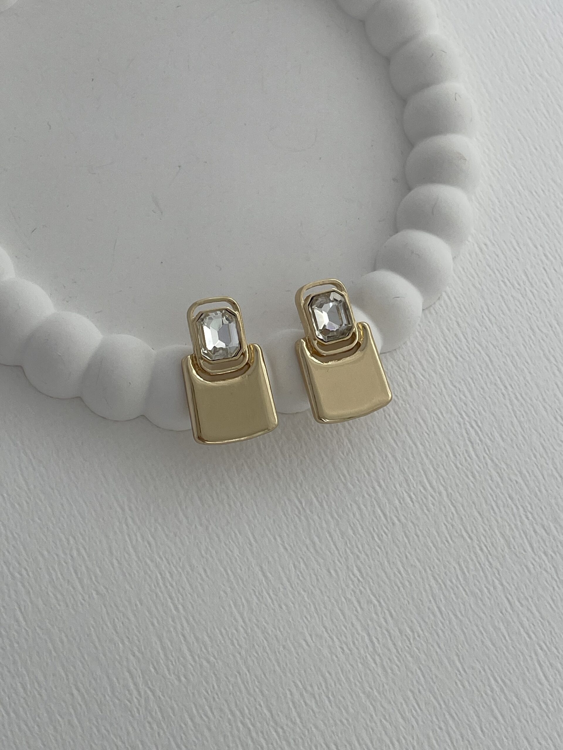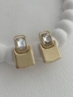 Özel Seri Büyük Baget Taşlı Gold Dikdörtgen Küpe