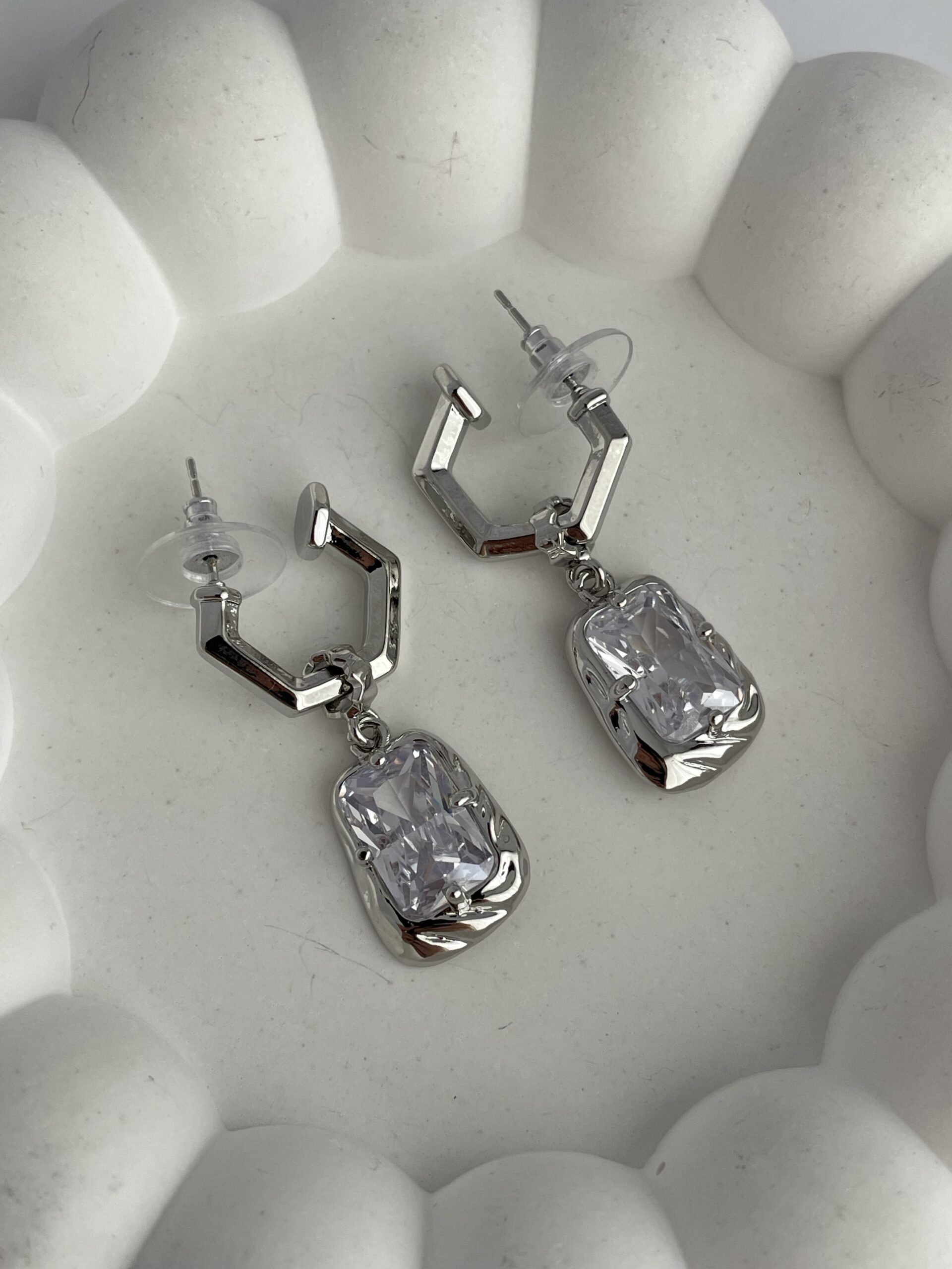 Özel Seri Büyük Baget Taşlı Gümüş Küpe