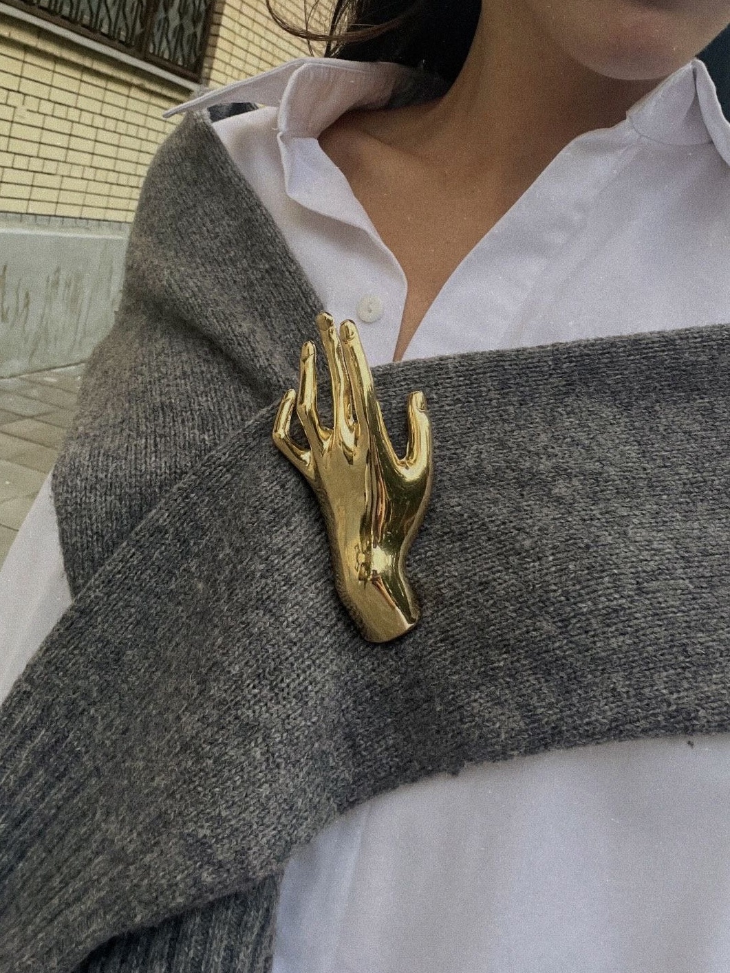 Özel Seri Büyük Boy El Tasarım Gold Broş