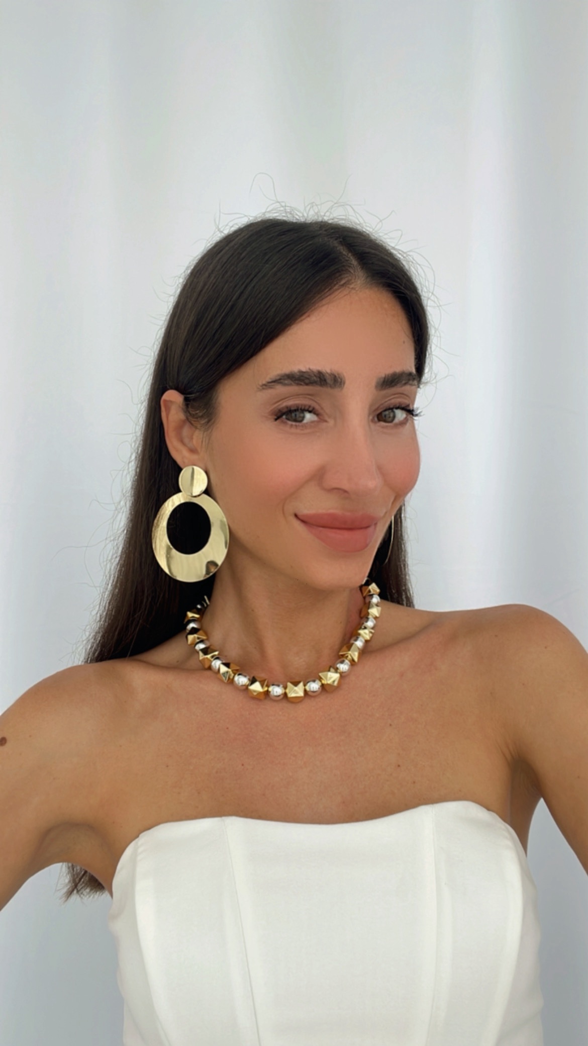 Özel Seri Büyük Boy Geometrik Desen Gold Küpe