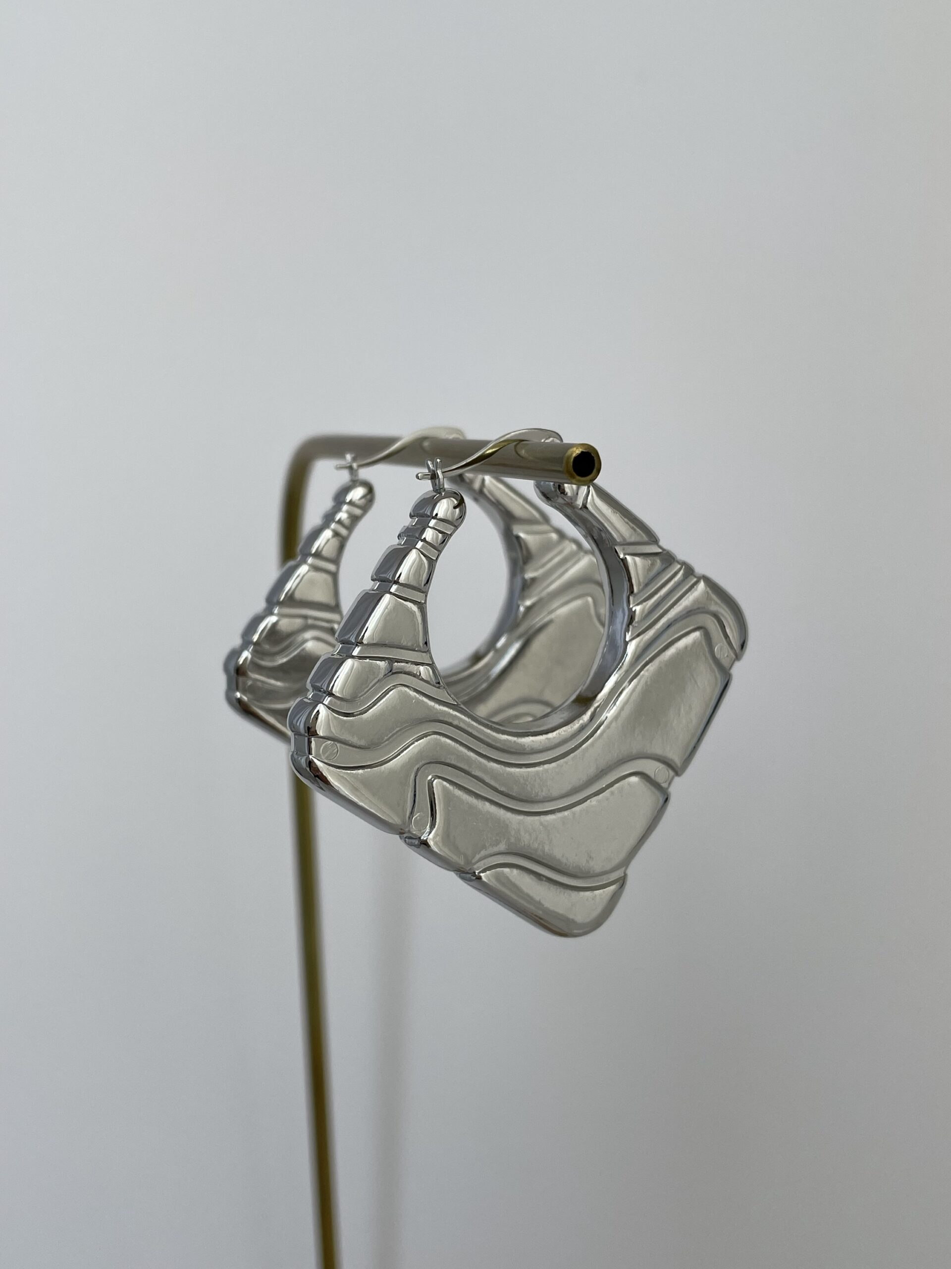 Özel Seri Büyük Boy Geometrik Desen Gümüş Küpe