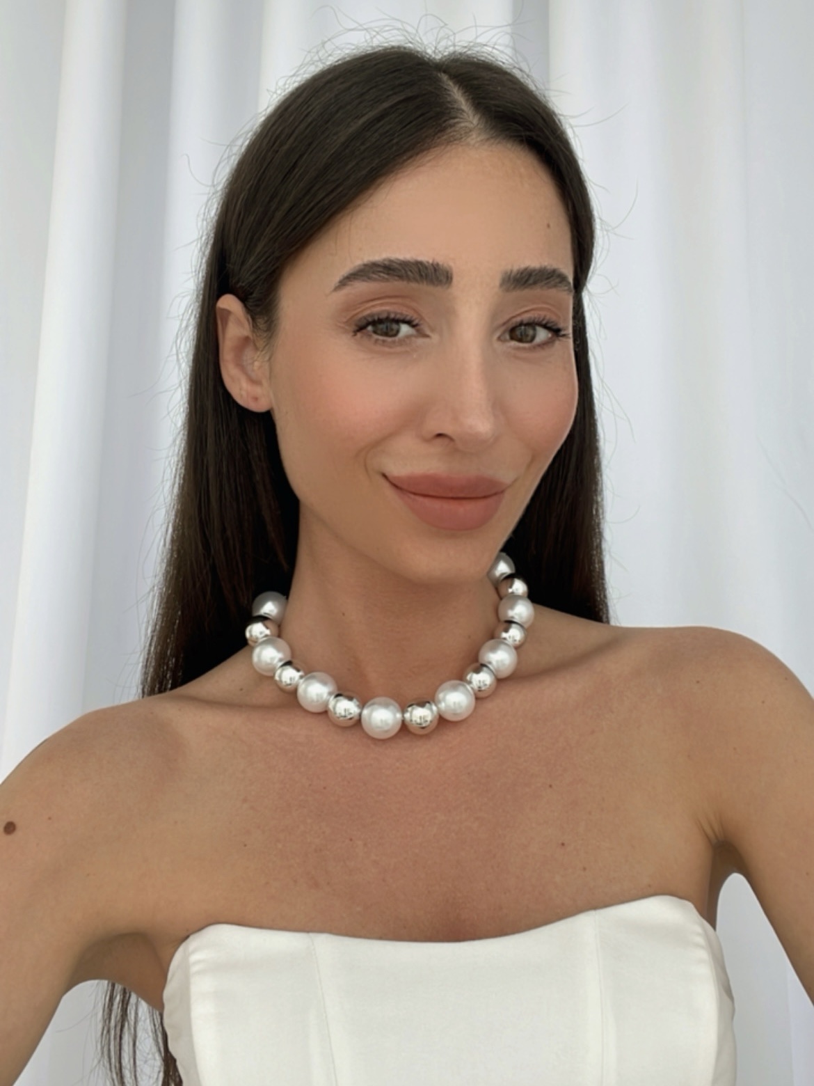 Özel Seri Büyük Boy İncili Gümüş Top Kolye